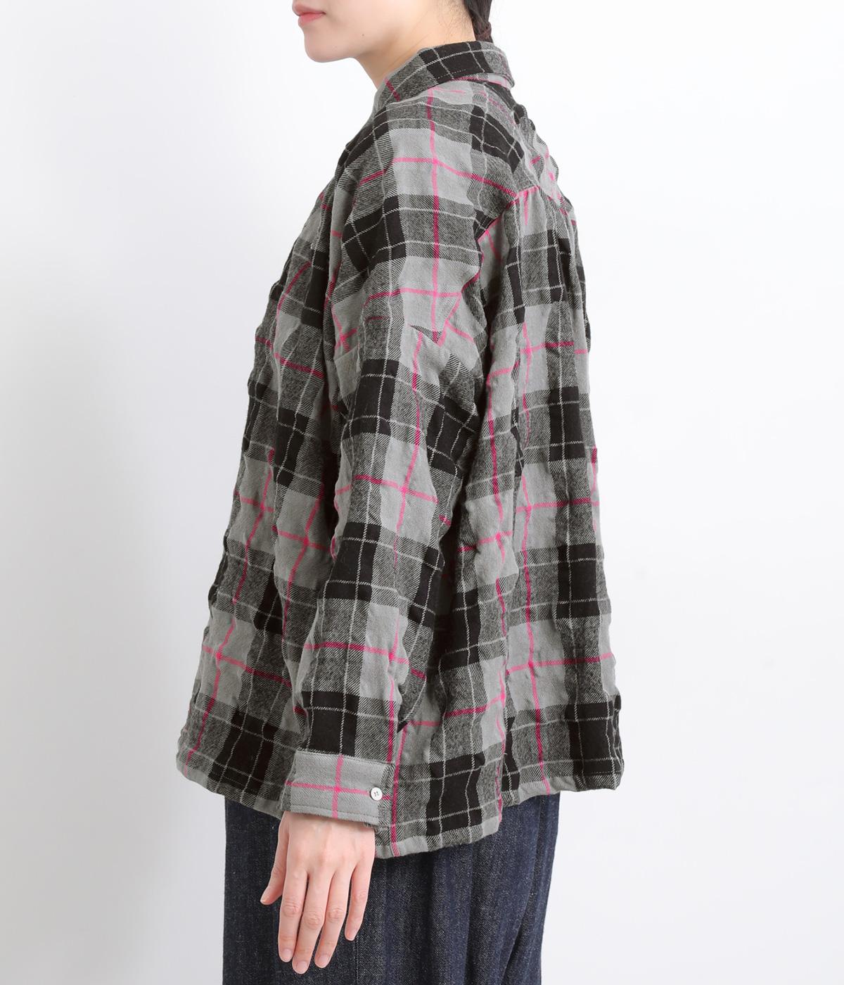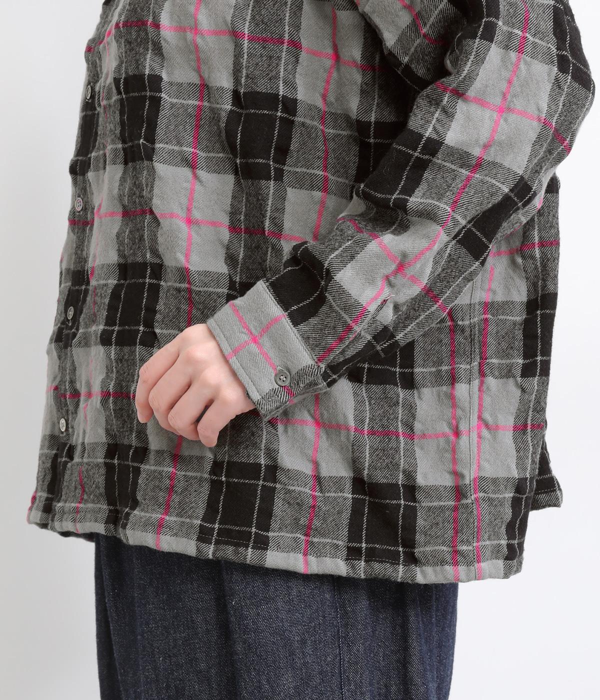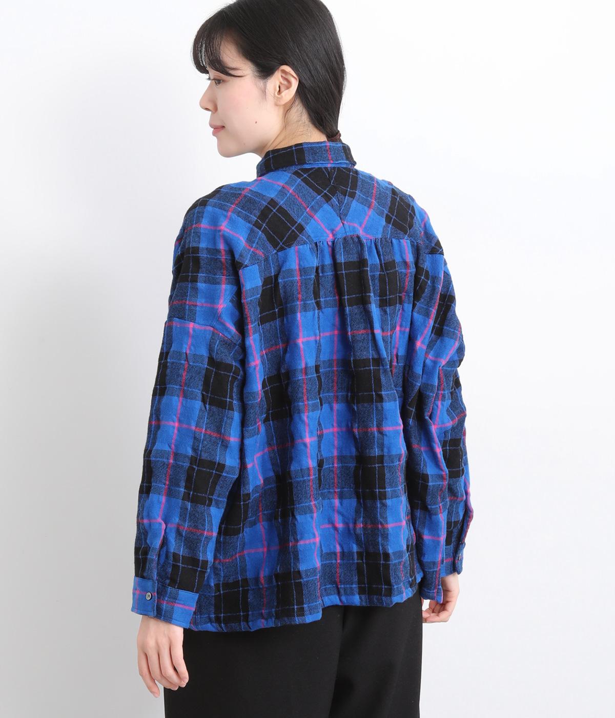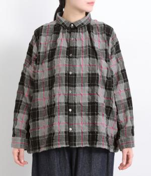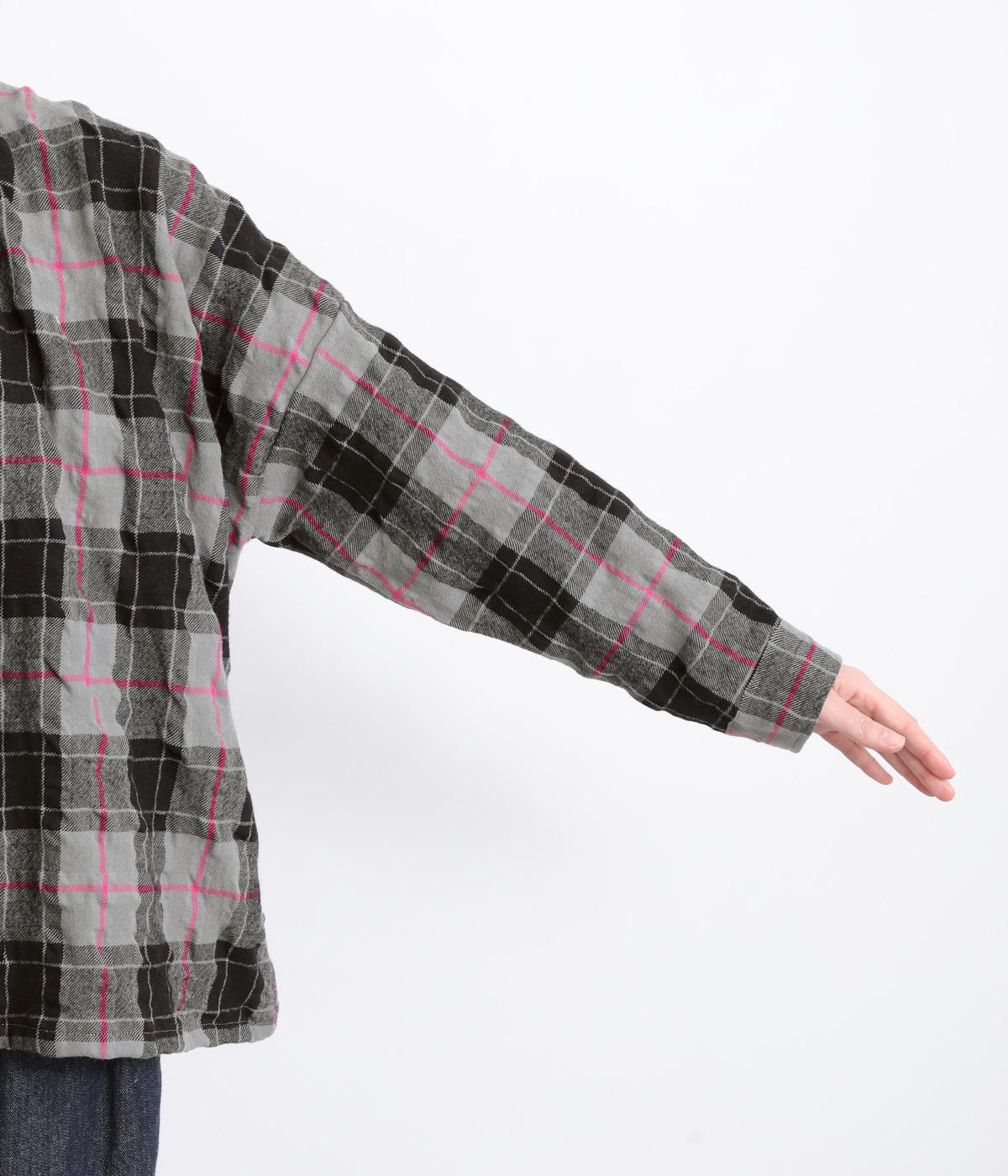 シンプルながら存在感のあるシャツ。落ち着いたチェック柄に自然な風合いが相まって大人カジュアルな雰囲気に仕上がりました。ゆったりしたリラックスシルエットに小さめの襟でバランスよく、さまざまなボトムスと好相性です。
