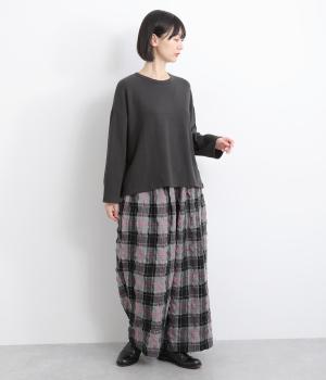 やわらかく伸縮性に優れた生地で仕立てました。とろみがありやさしく肌になじみます。味わいのあるナチュラルな表情が魅力の素材感です。