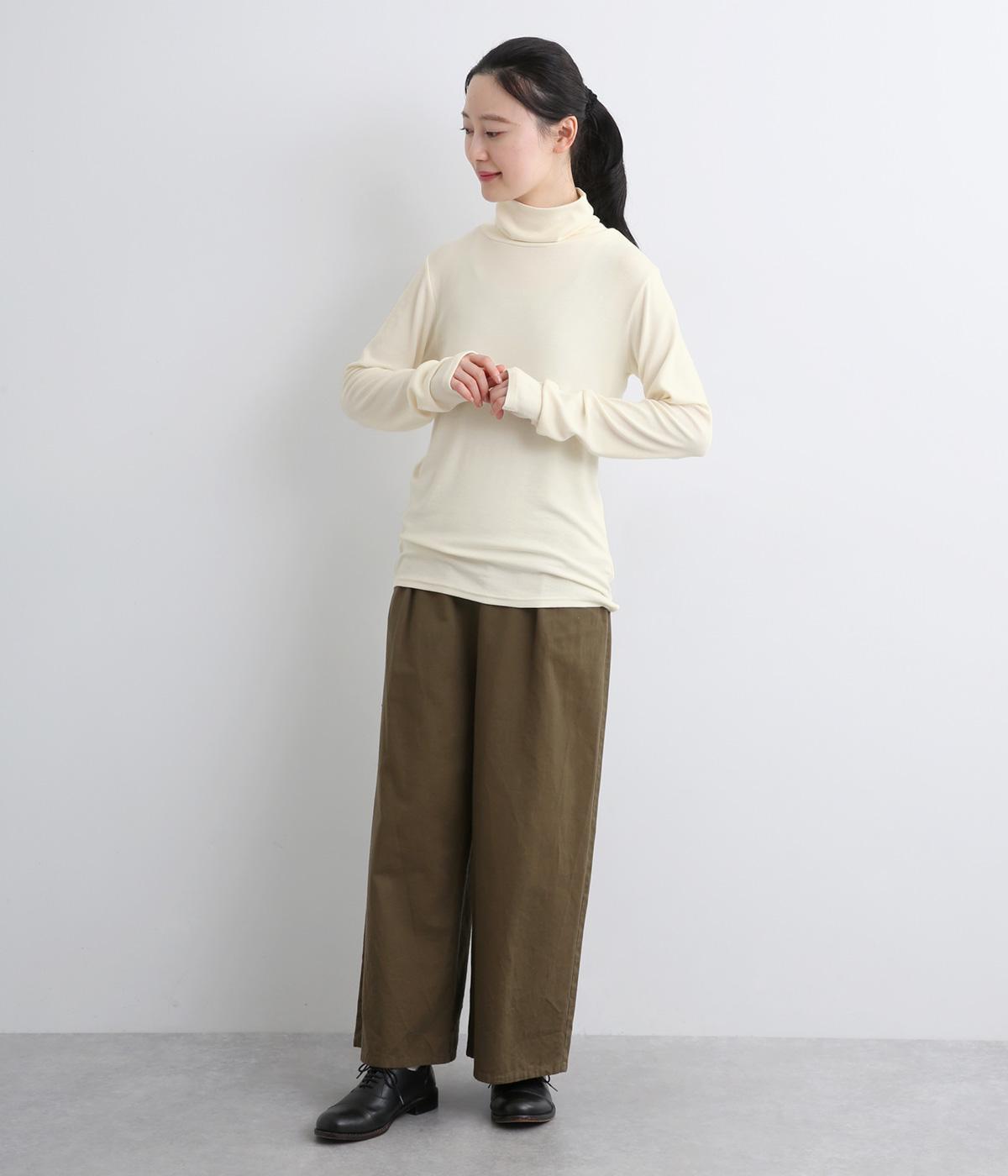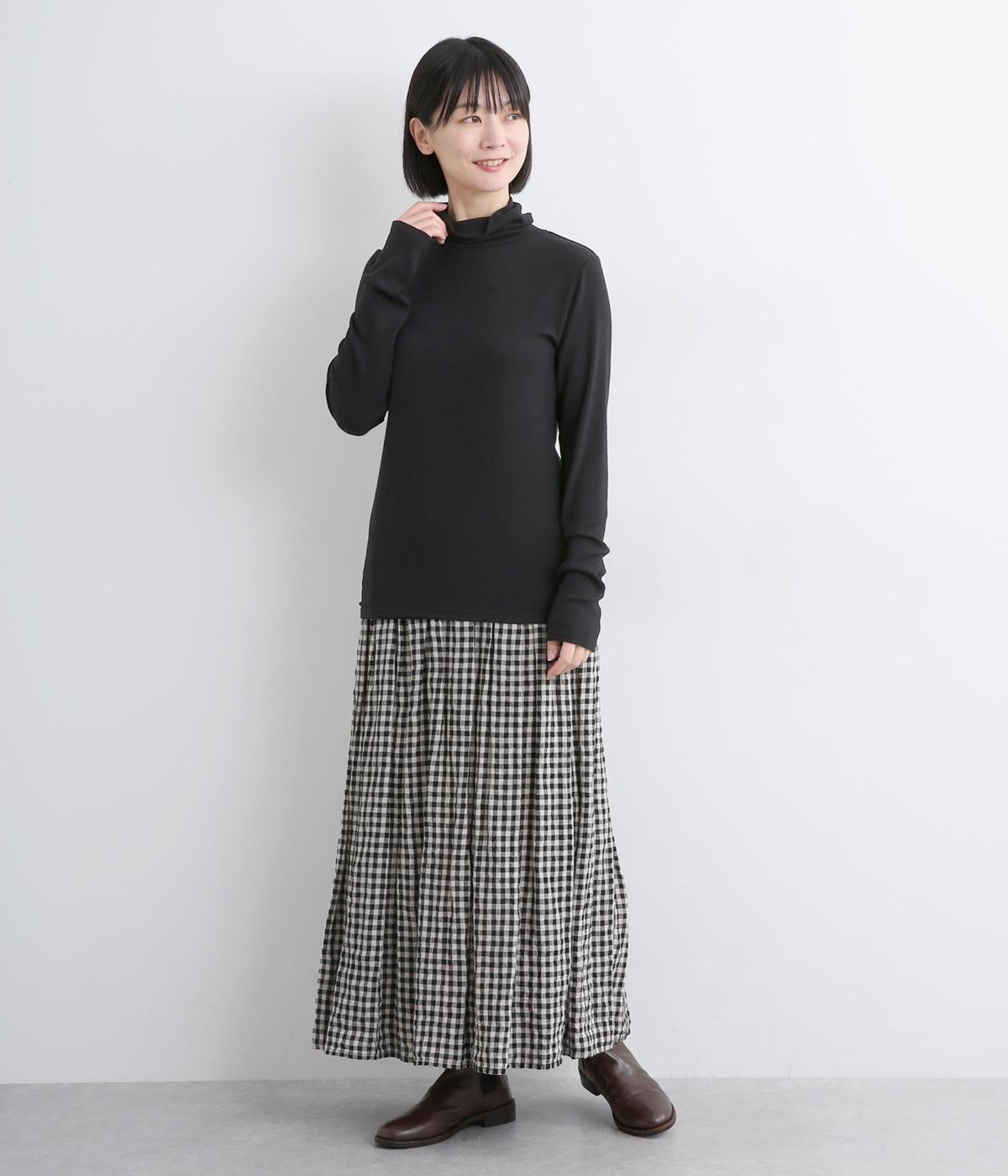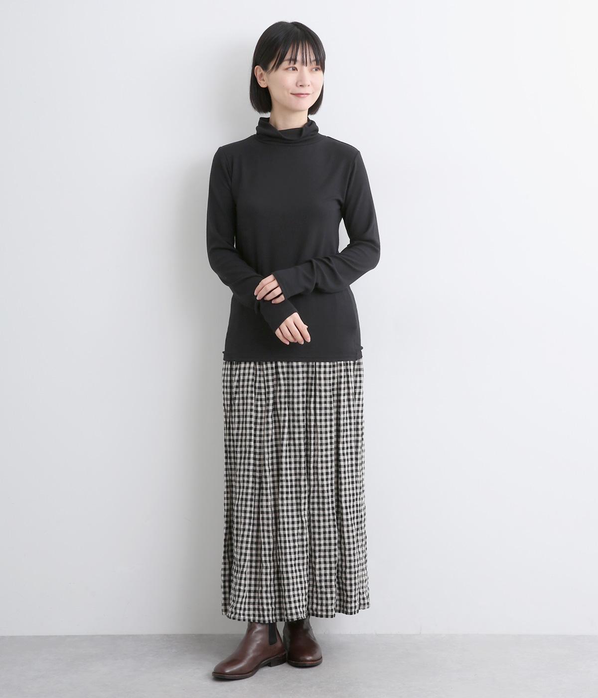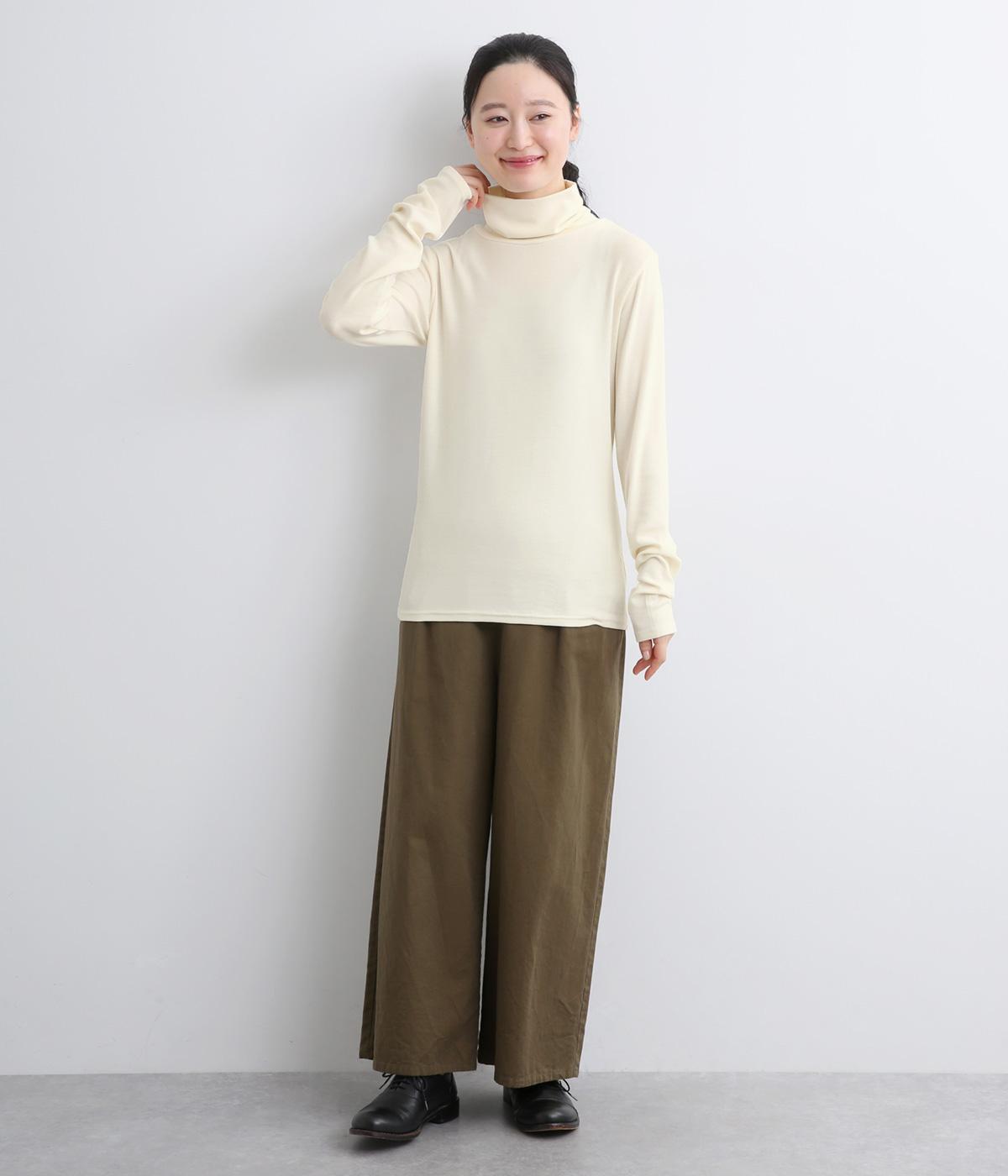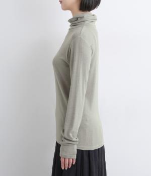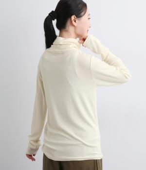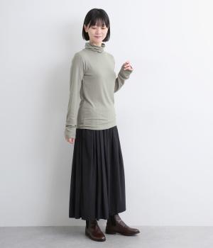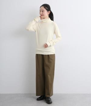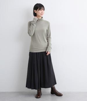 とろみのあるビスコースウールを使用しました。保温性がありながらも、軽やかで肌なじみのいい着心地が魅力です。伸縮性があり体にほどよくフィットします。