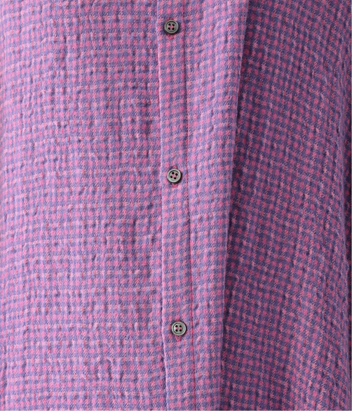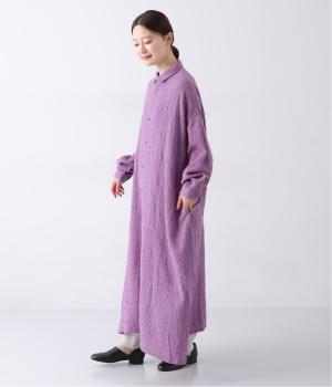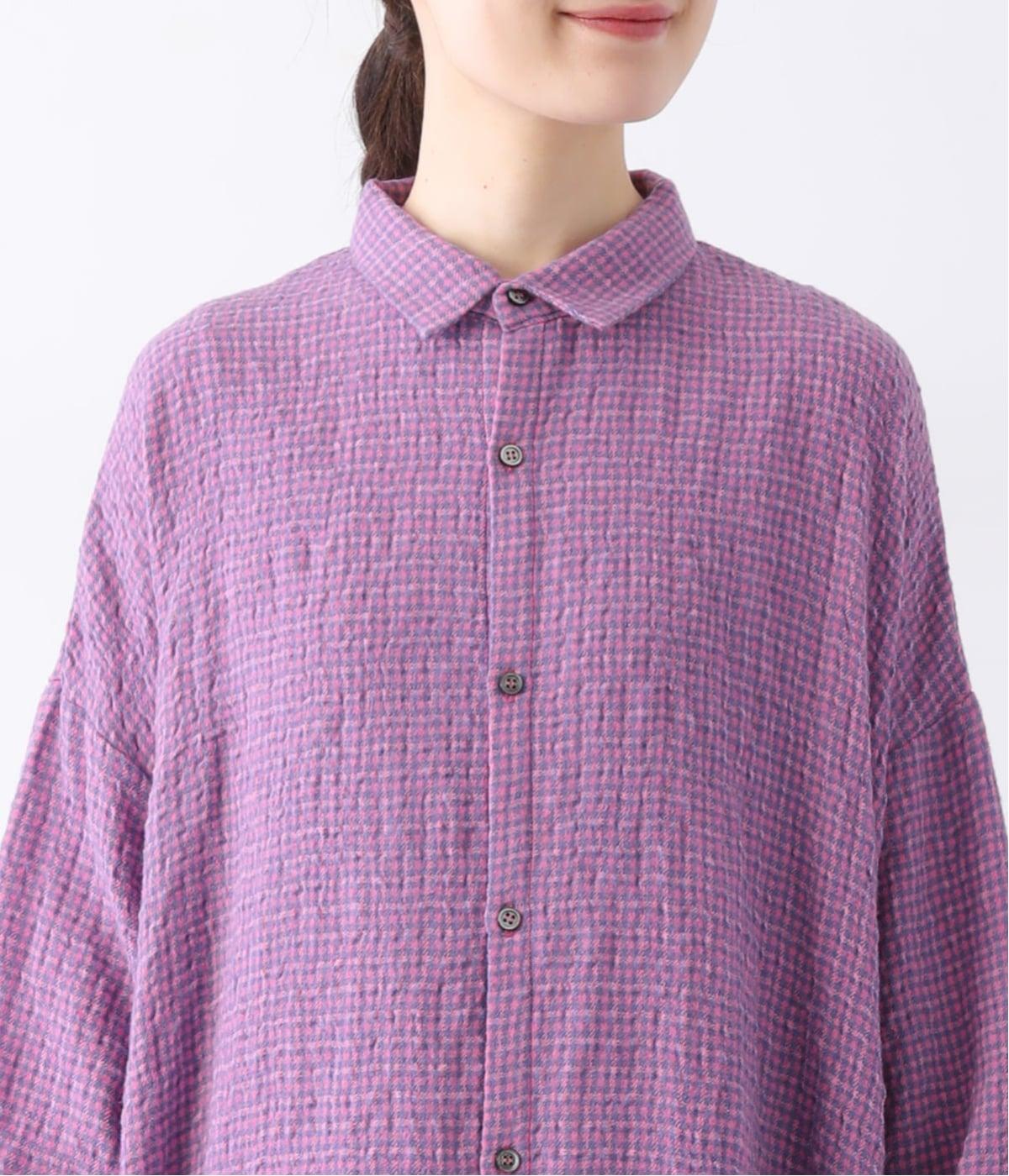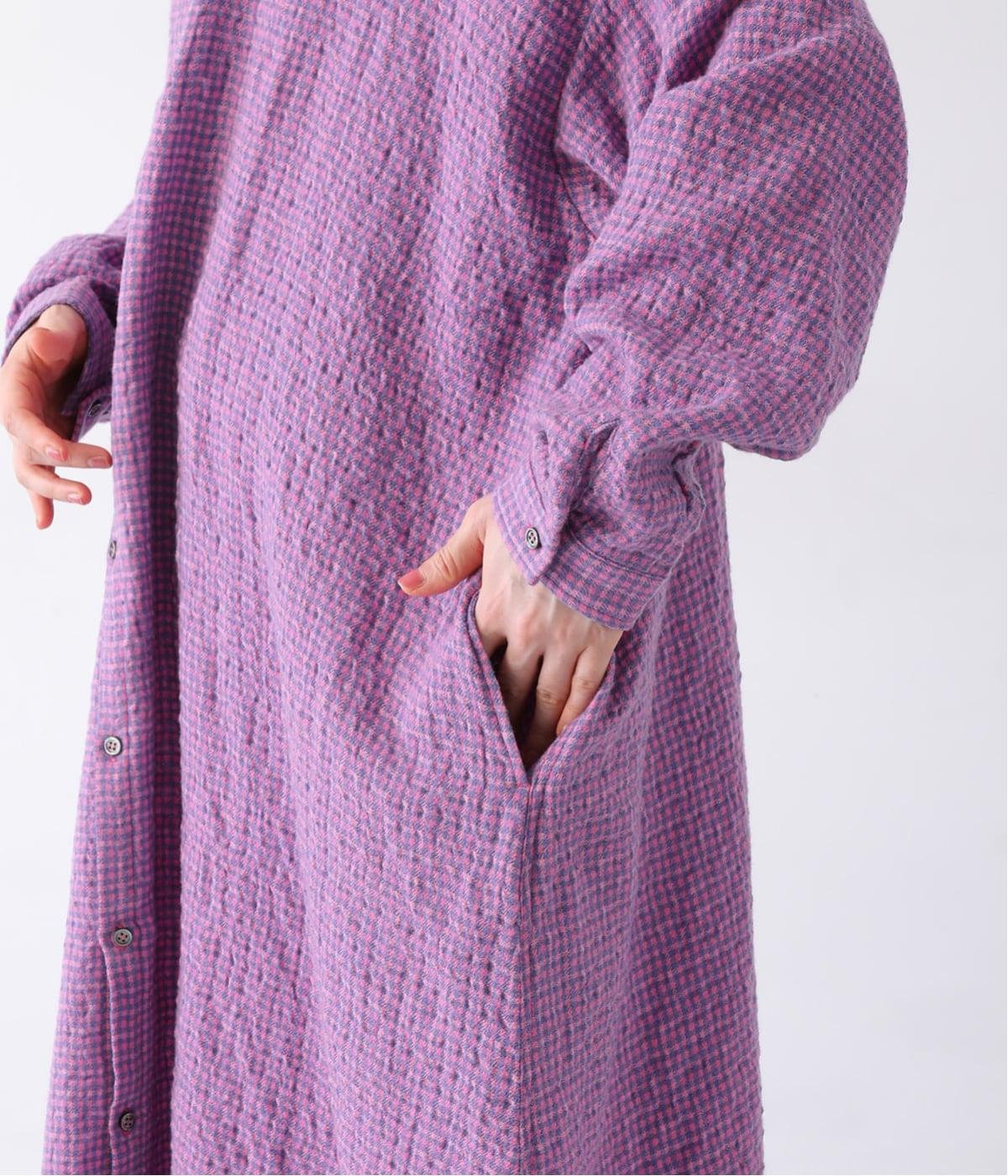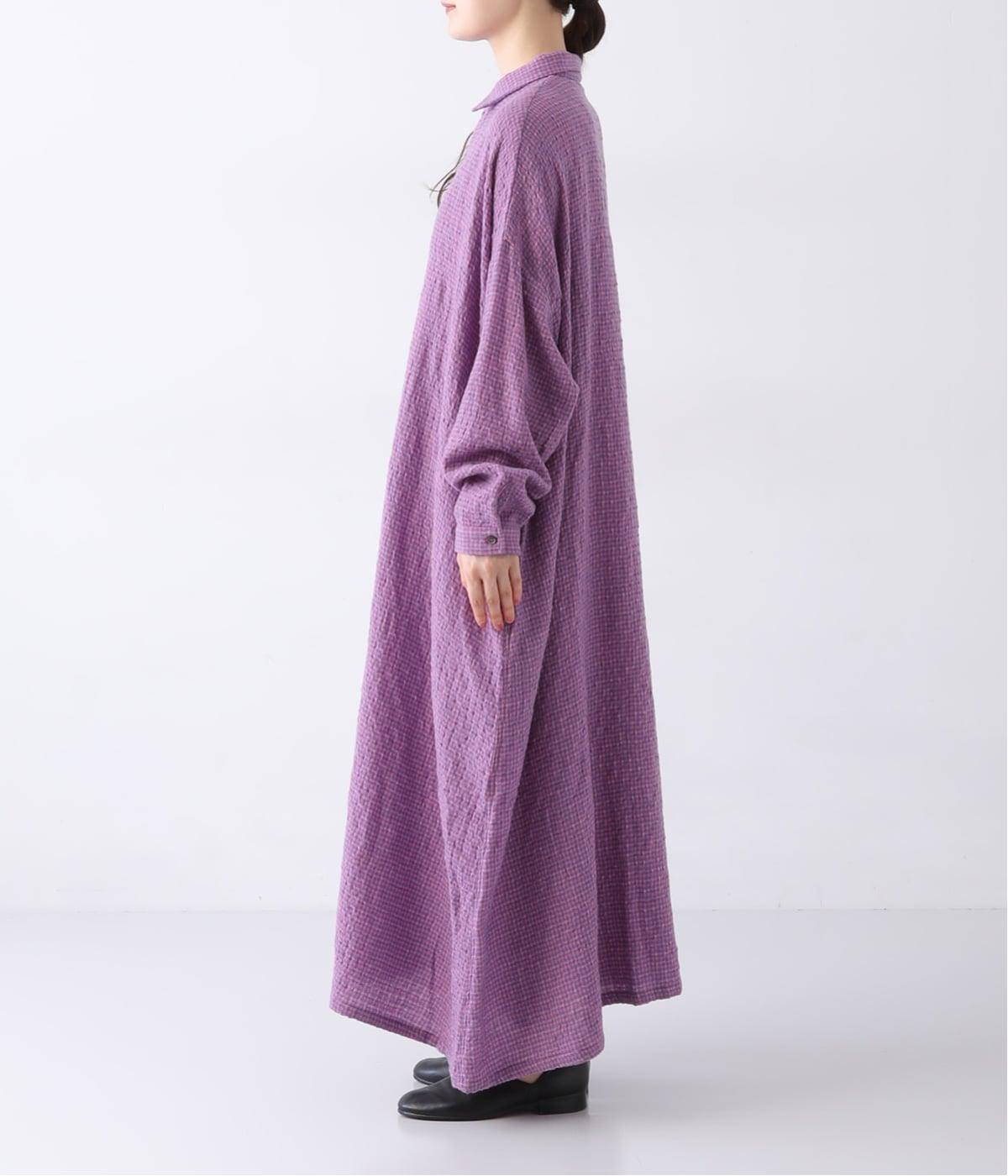 体が泳ぐゆったりとしたサイズ感に仕上げたシャツワンピース。細かなチェック柄と独特な生地の表情が、コーディネートに奥行きを与えてくれます。一枚着はもちろん、パンツとのレイヤードスタイルもおすすめです。