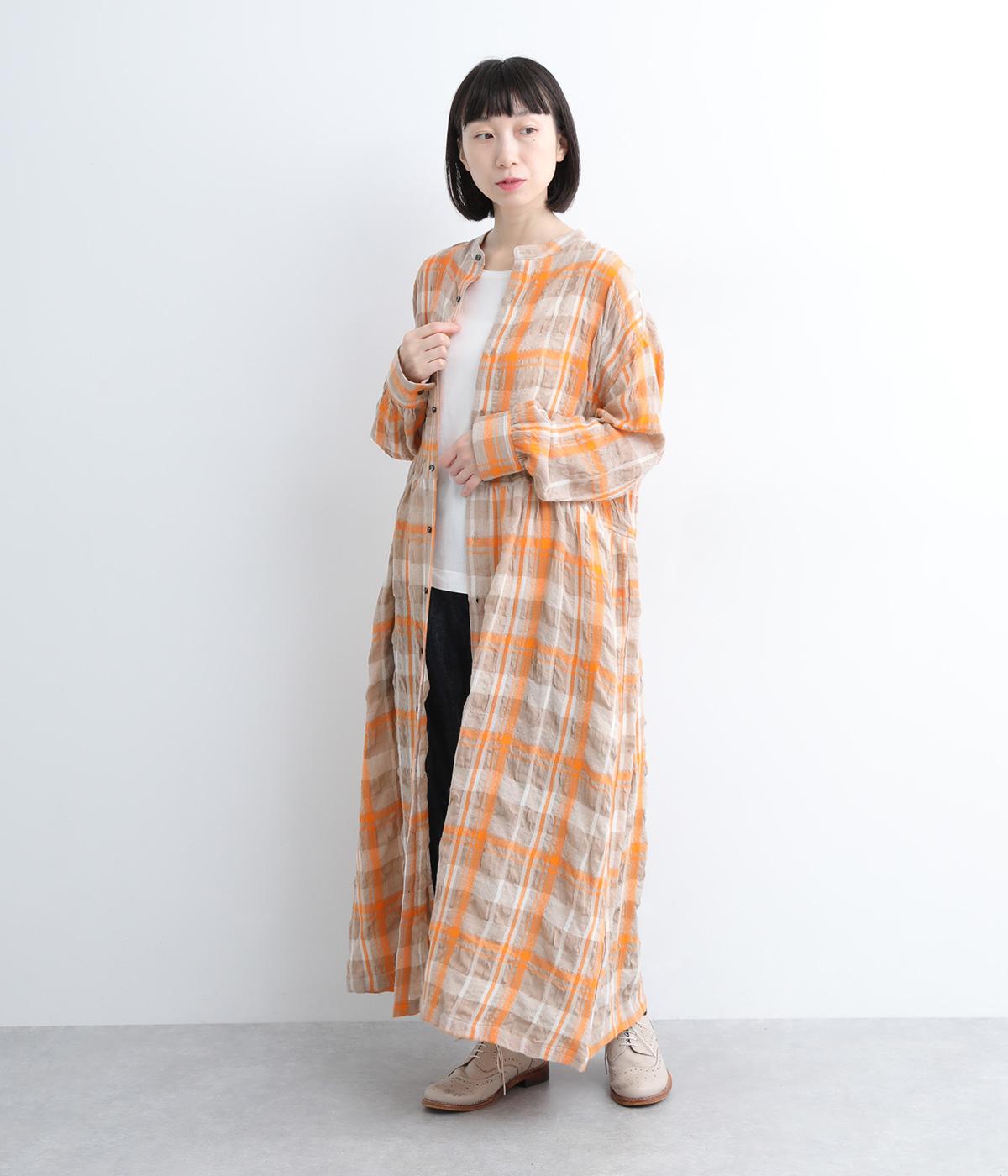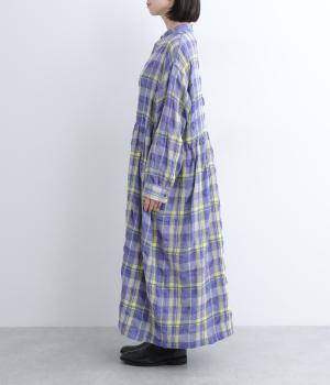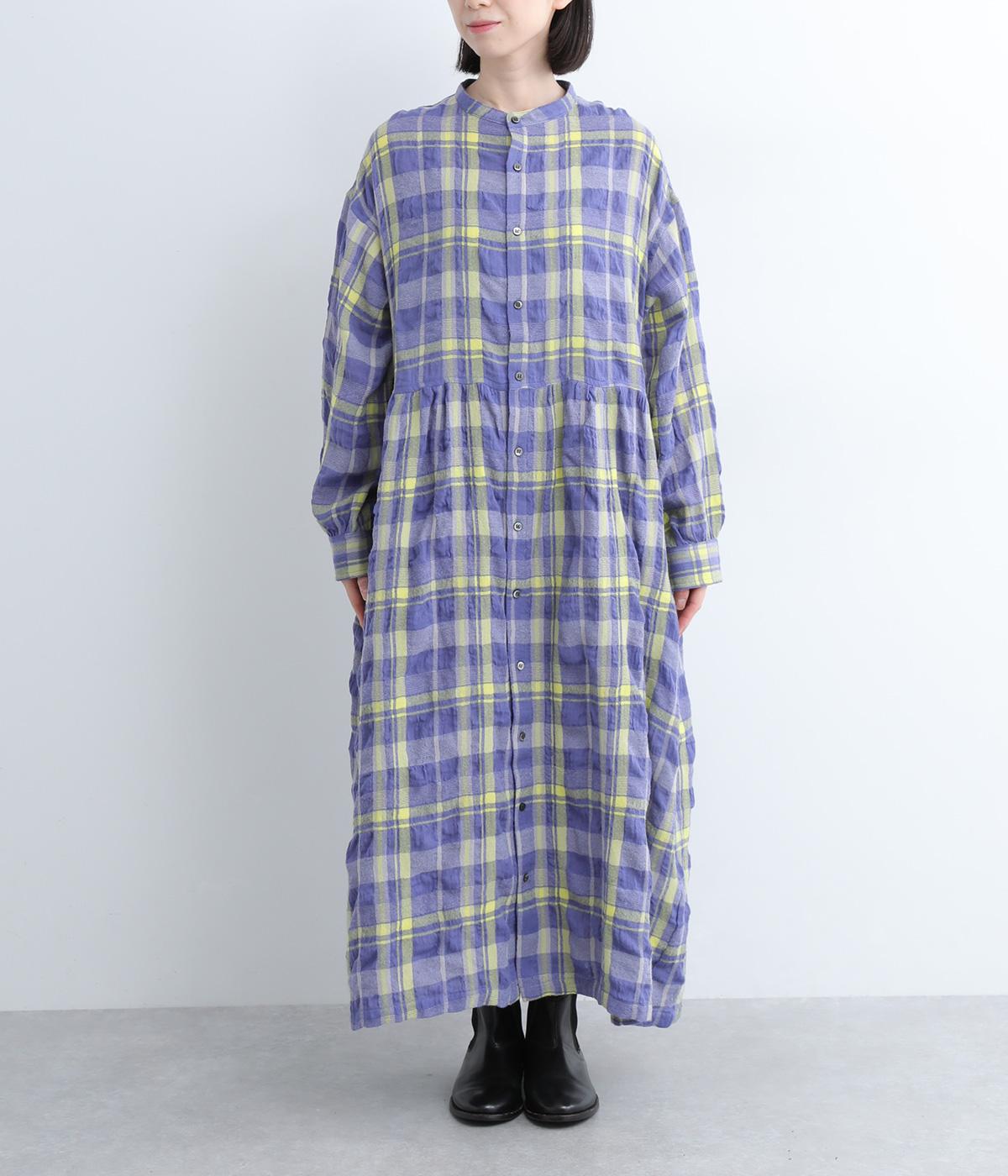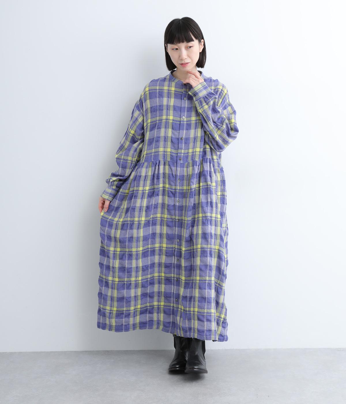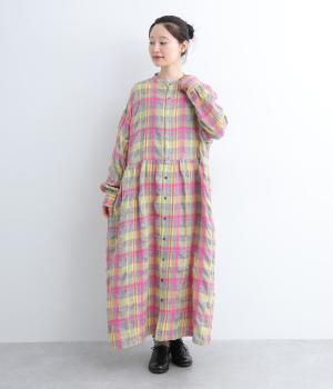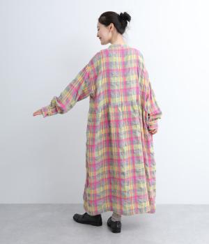 やさしい印象の生地感にぴったりな、ゆとりのあるリラックス仕様なワンピース。チェック柄を活かした大判なつくりで、シンプルな一枚着でも存在感を発揮。ボタンをあけてガウンのように羽織れば、ラフスタイルも一気に華やかに魅せてくれます。