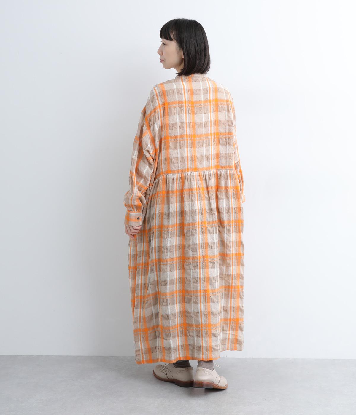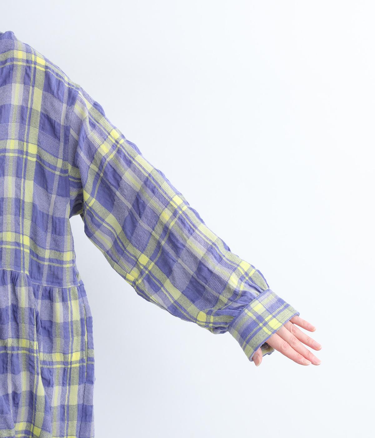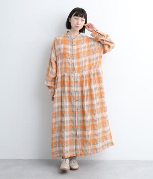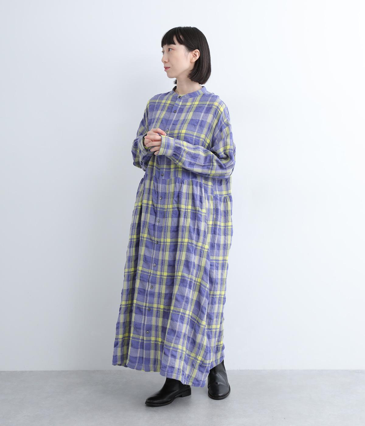 やさしい印象の生地感にぴったりな、ゆとりのあるリラックス仕様なワンピース。チェック柄を活かした大判なつくりで、シンプルな一枚着でも存在感を発揮。ボタンをあけてガウンのように羽織れば、ラフスタイルも一気に華やかに魅せてくれます。
