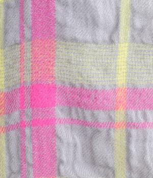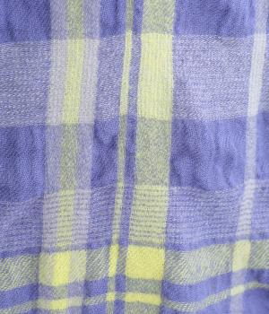 コットンの軽やかさとウールのあたたかみを併せ持った混紡素材を使用。ほんのり凹凸のある表面感が特徴で、ブライトカラーを取り入れたチェック柄が着こなしを彩ってくれます。