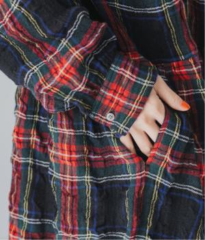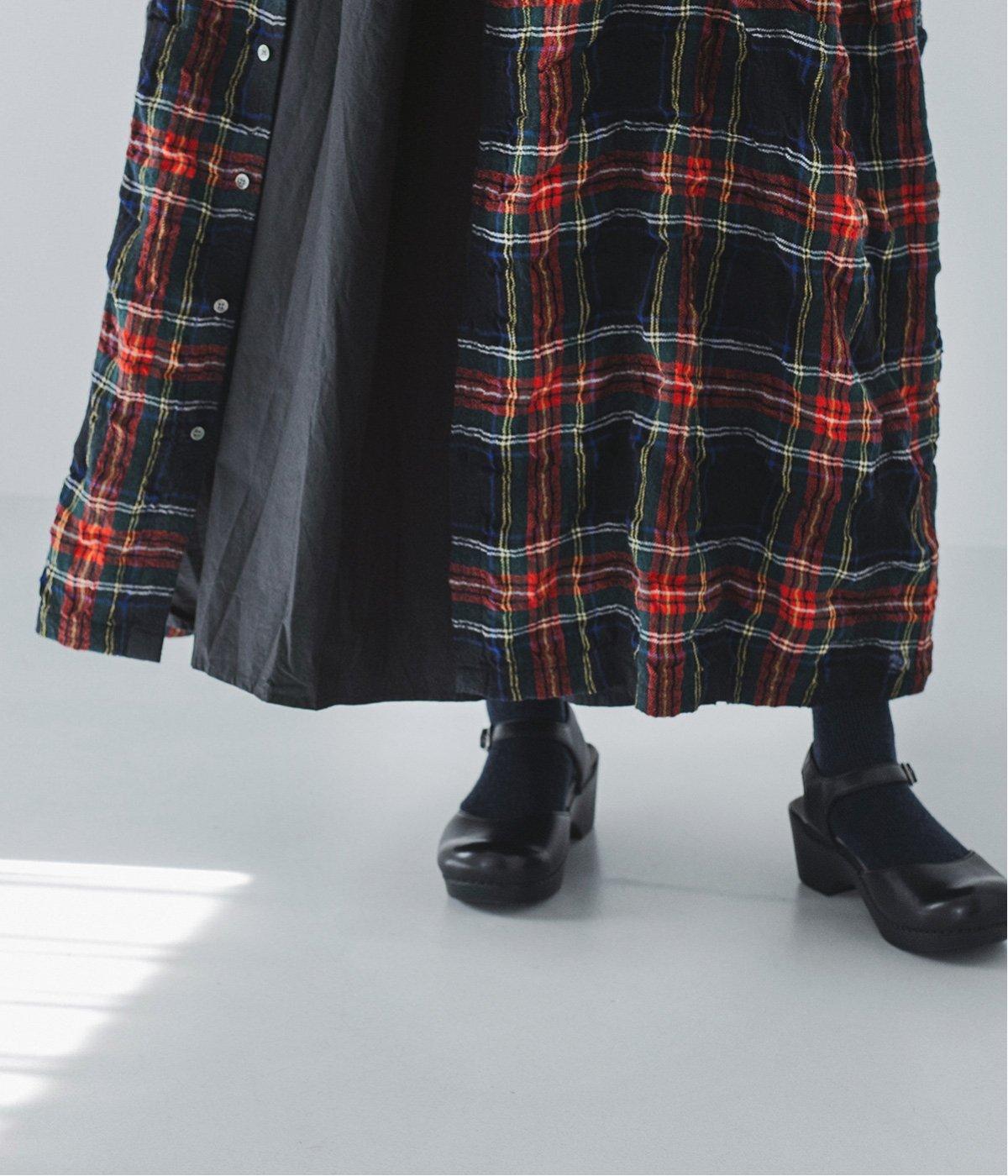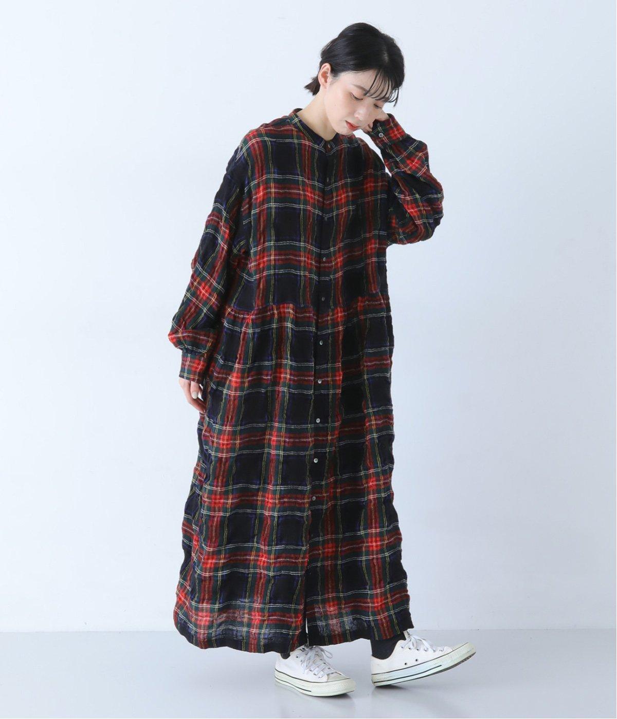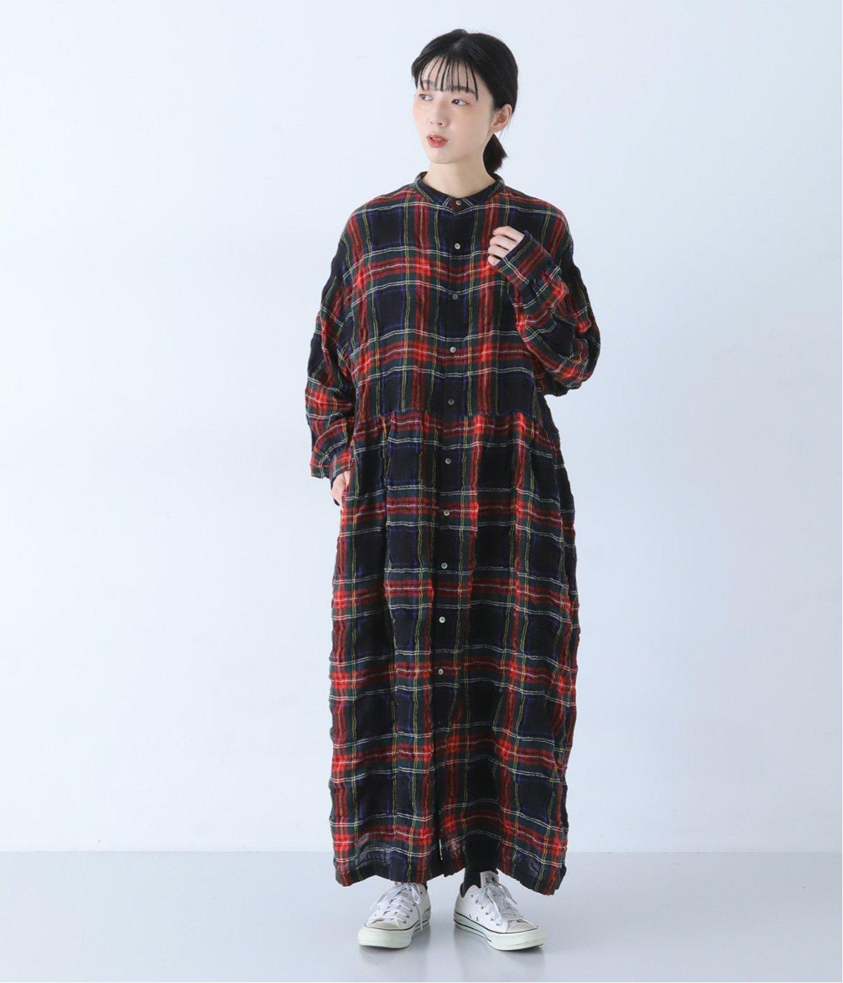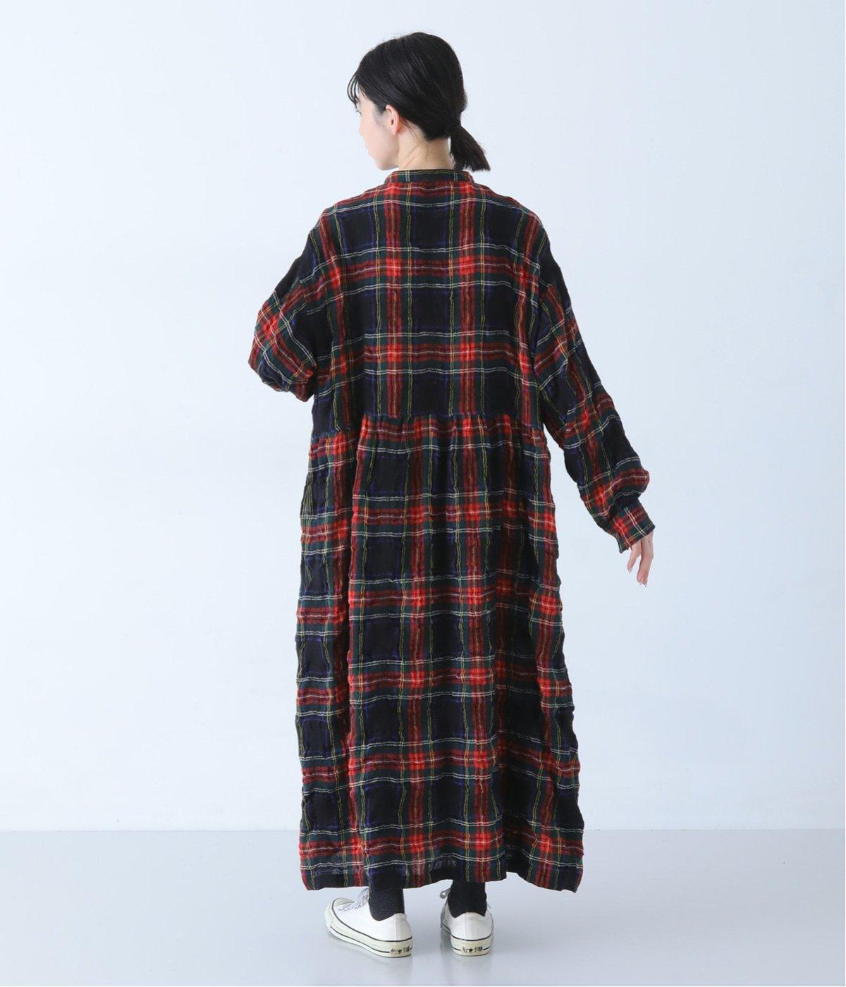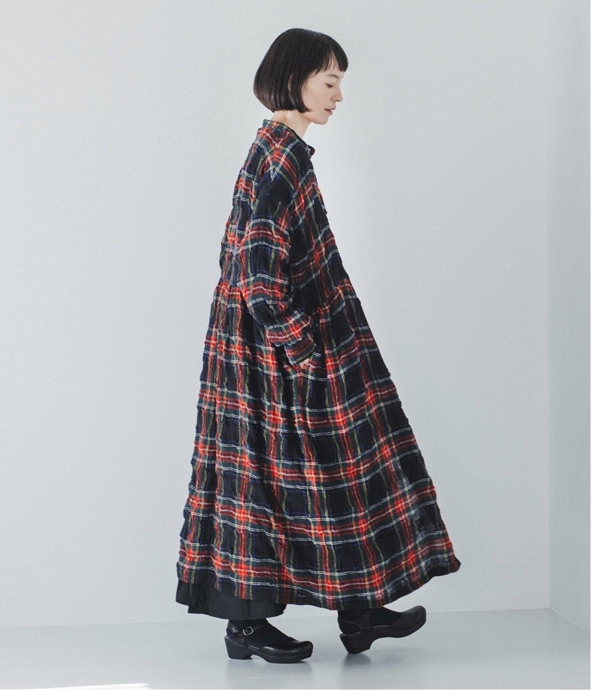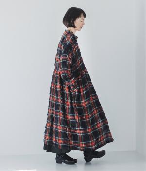 長く着るほどに、クシュッとしたシワ感や風合いが体のラインに馴染みます。タータンチェック柄のワンピースはトレンドに左右されず、長く愛用していただけるところも魅力です。
