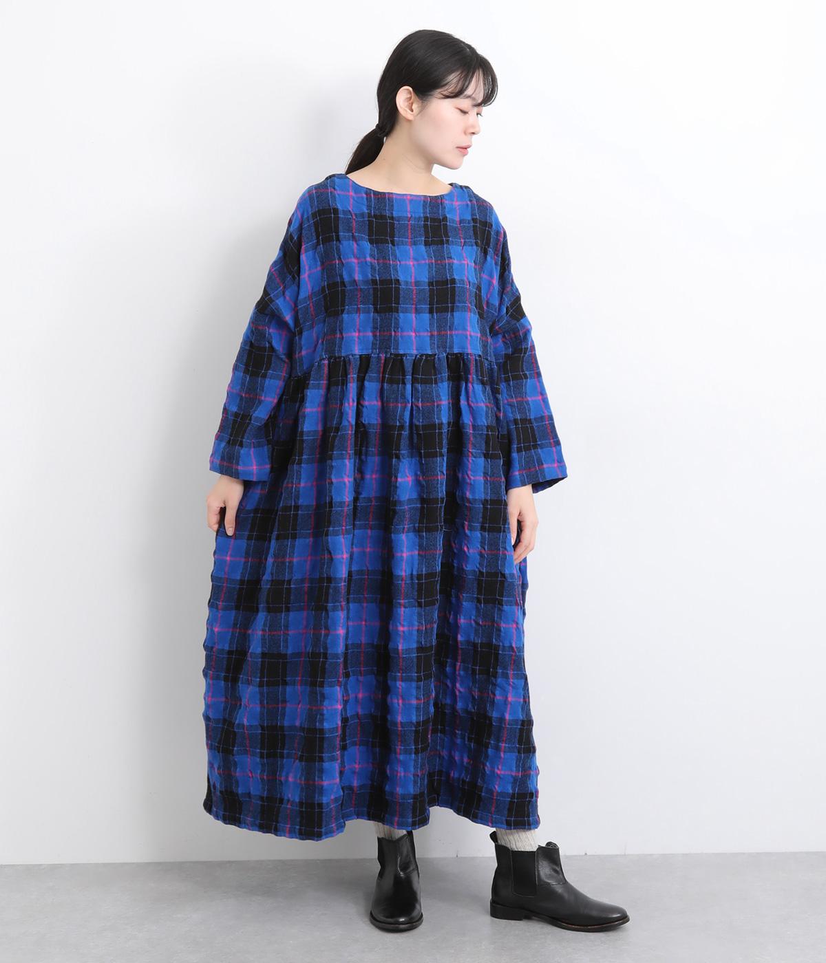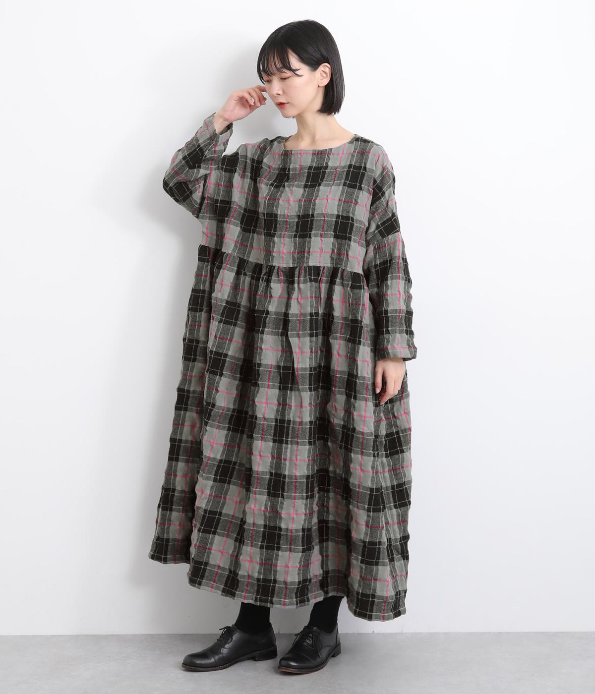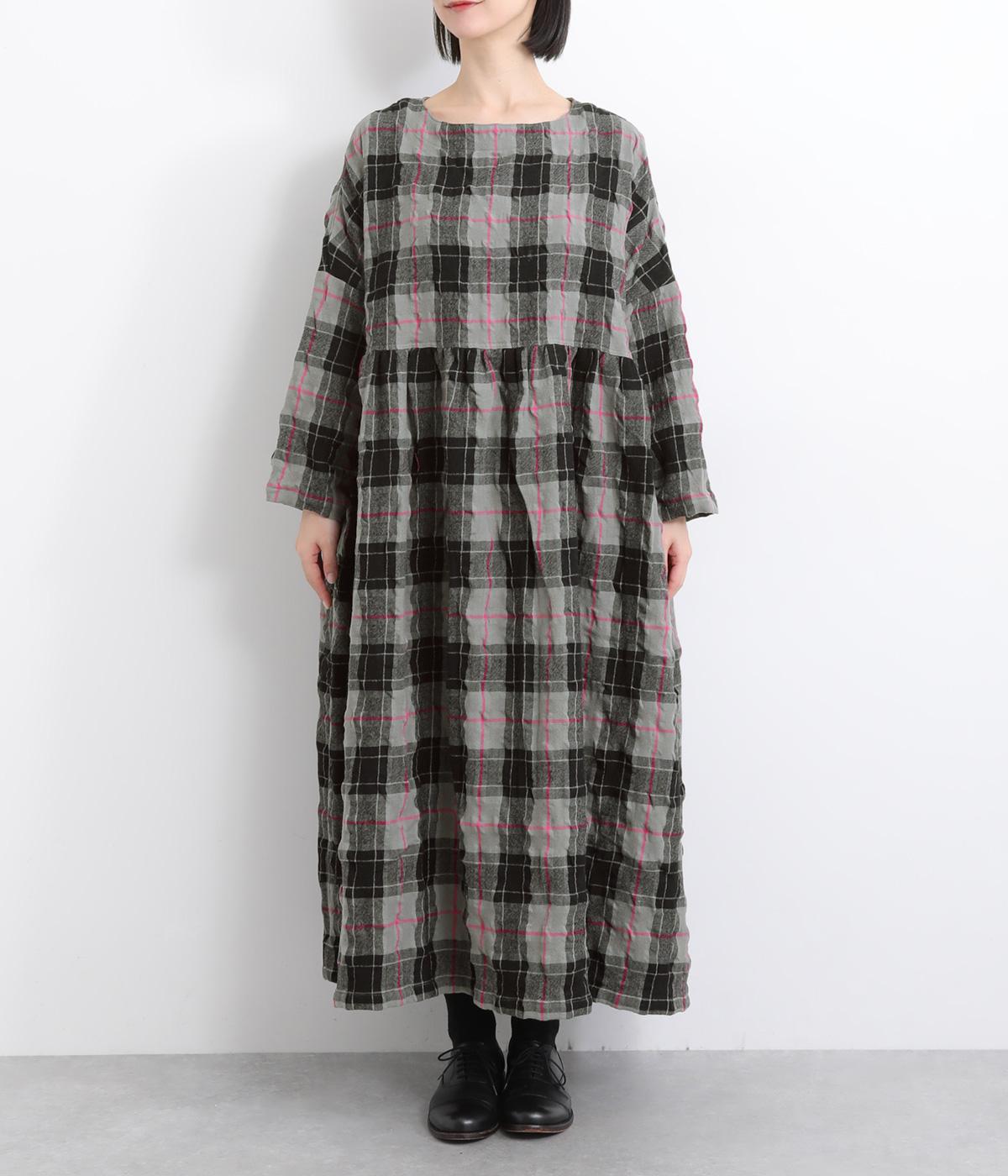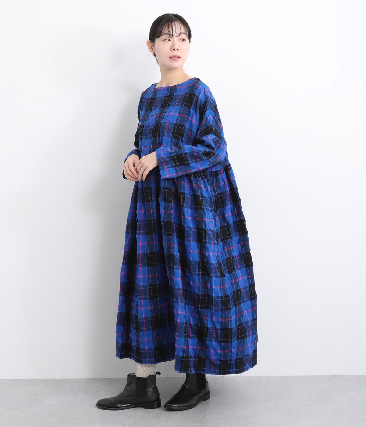 たっぷりと贅沢に生地を使用した存在感のあるドレスです。ウエスト高めで切り替えてギャザーをほどこし、ふんわりと空気を含んだようなシルエットを描きます。首元はクルーネックですっきりさせました。