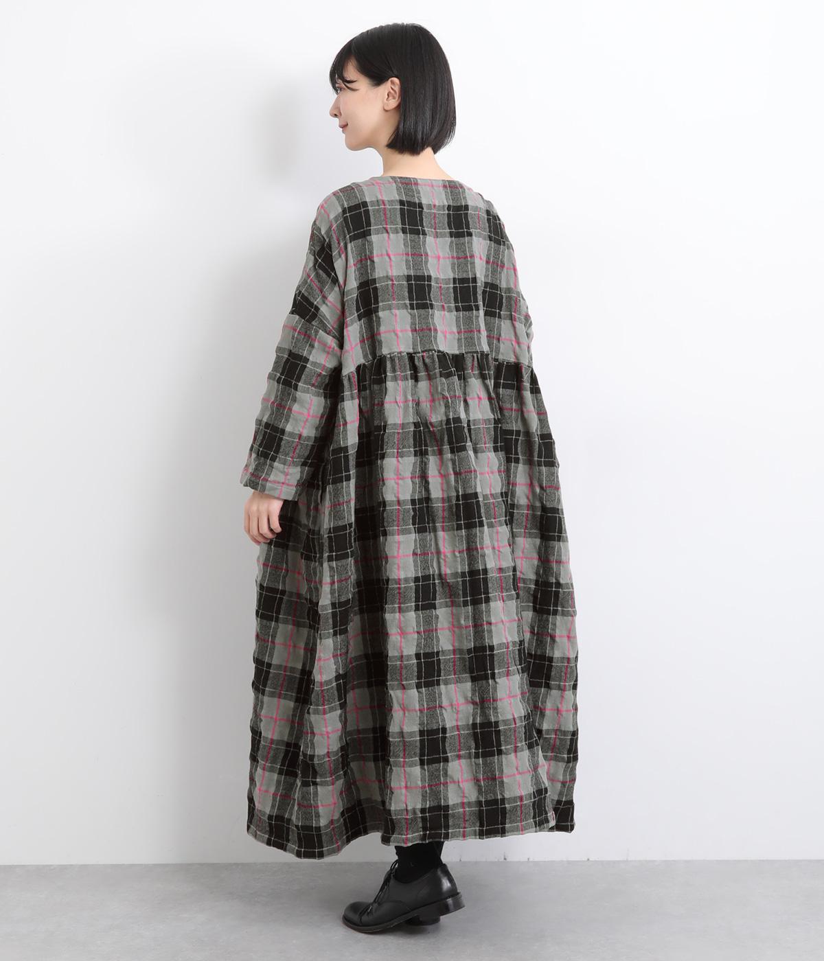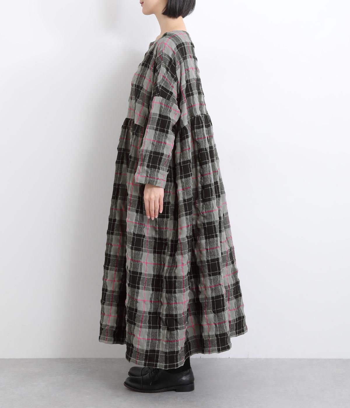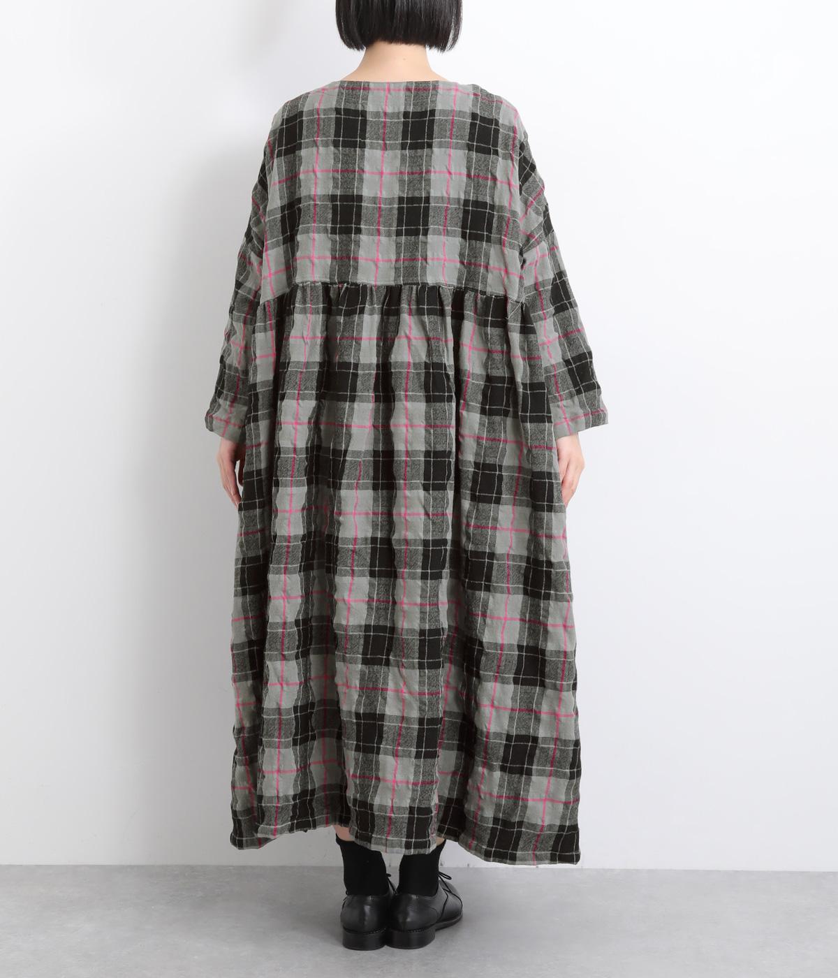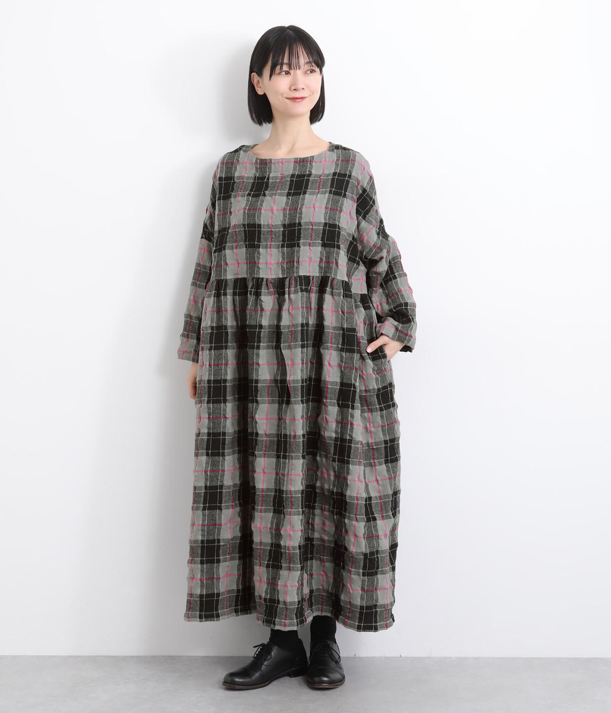 たっぷりと贅沢に生地を使用した存在感のあるドレスです。ウエスト高めで切り替えてギャザーをほどこし、ふんわりと空気を含んだようなシルエットを描きます。首元はクルーネックですっきりさせました。