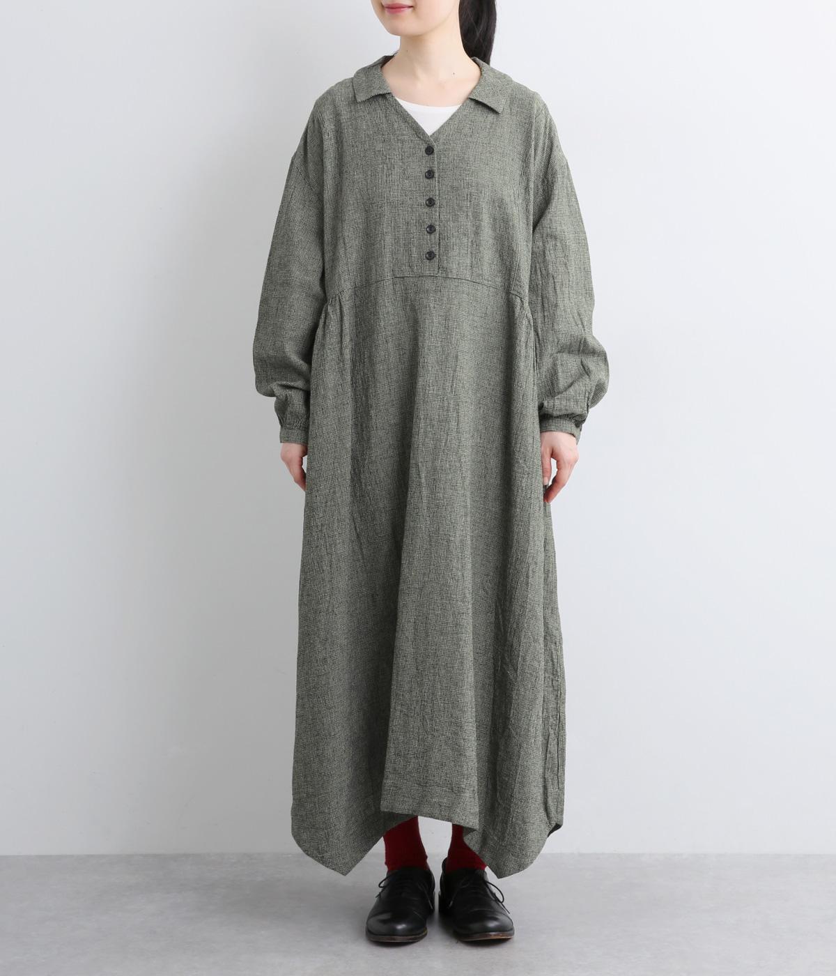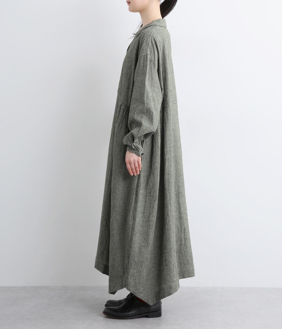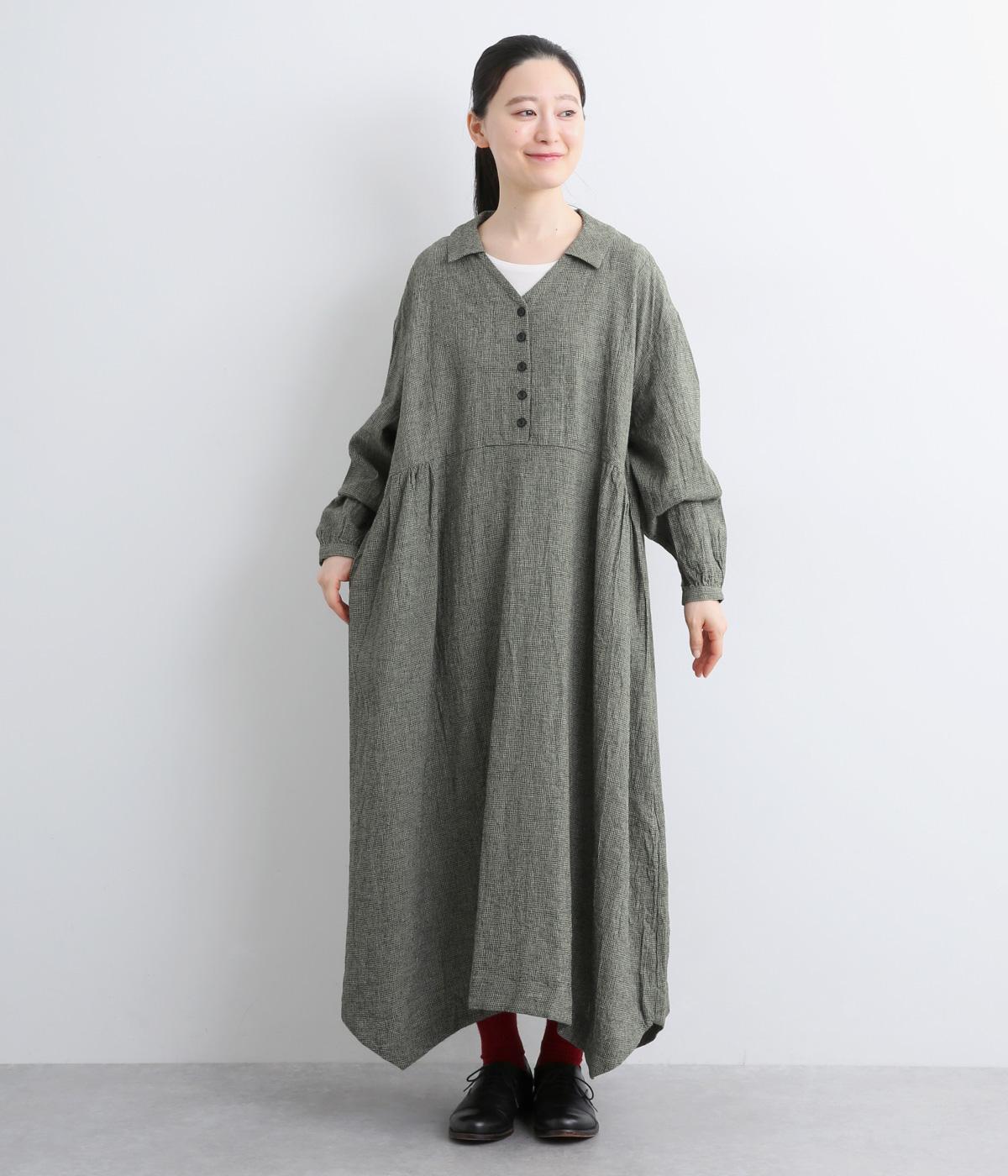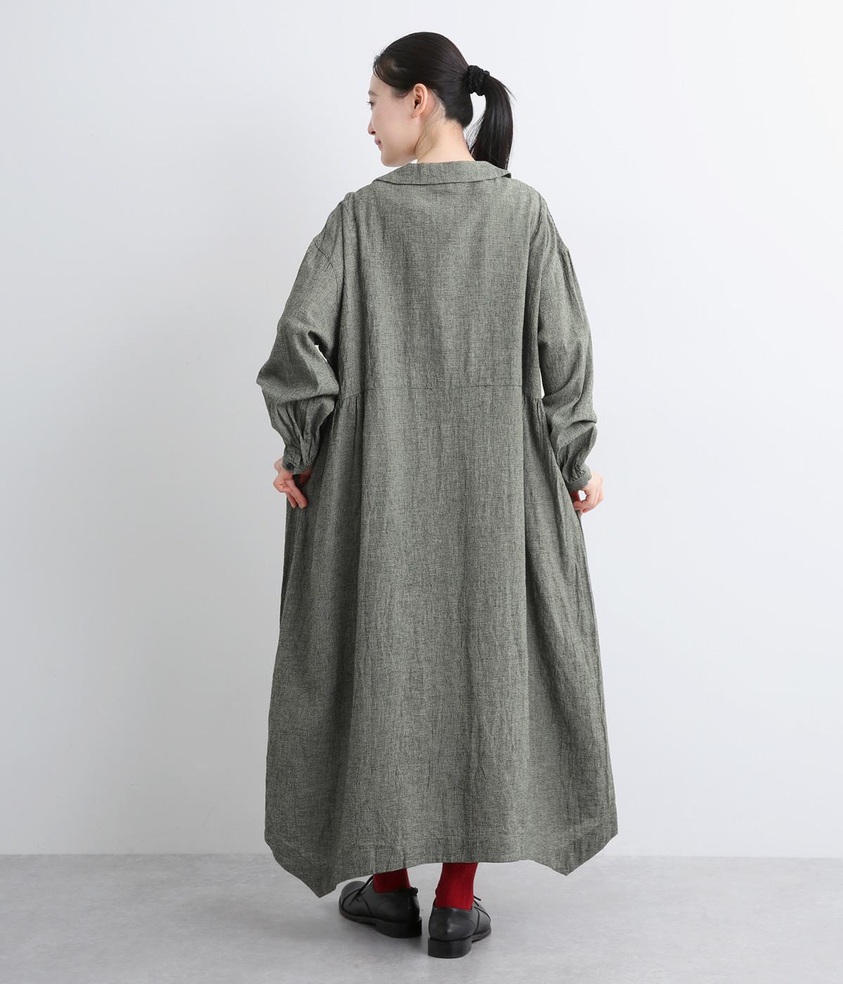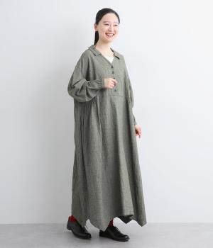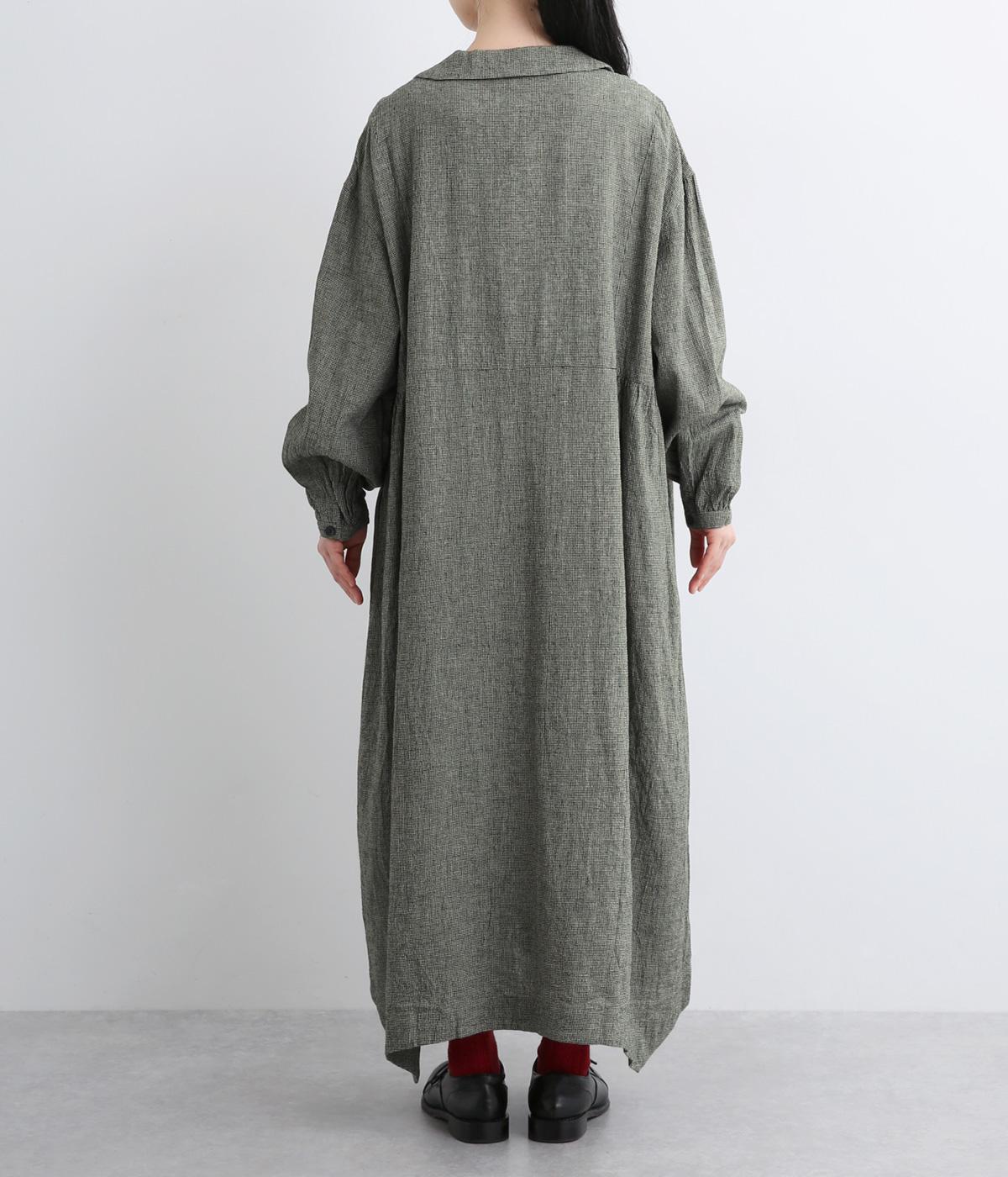 裾のラインが印象的なドレス。贅沢にたっぷりと使用した生地がふんわりと女性らしいシルエットをつくり、動きに合わせて揺れるラインを描きます。首元はすっきりさせてバランスよく。一枚でサマ見えするアイテムです。