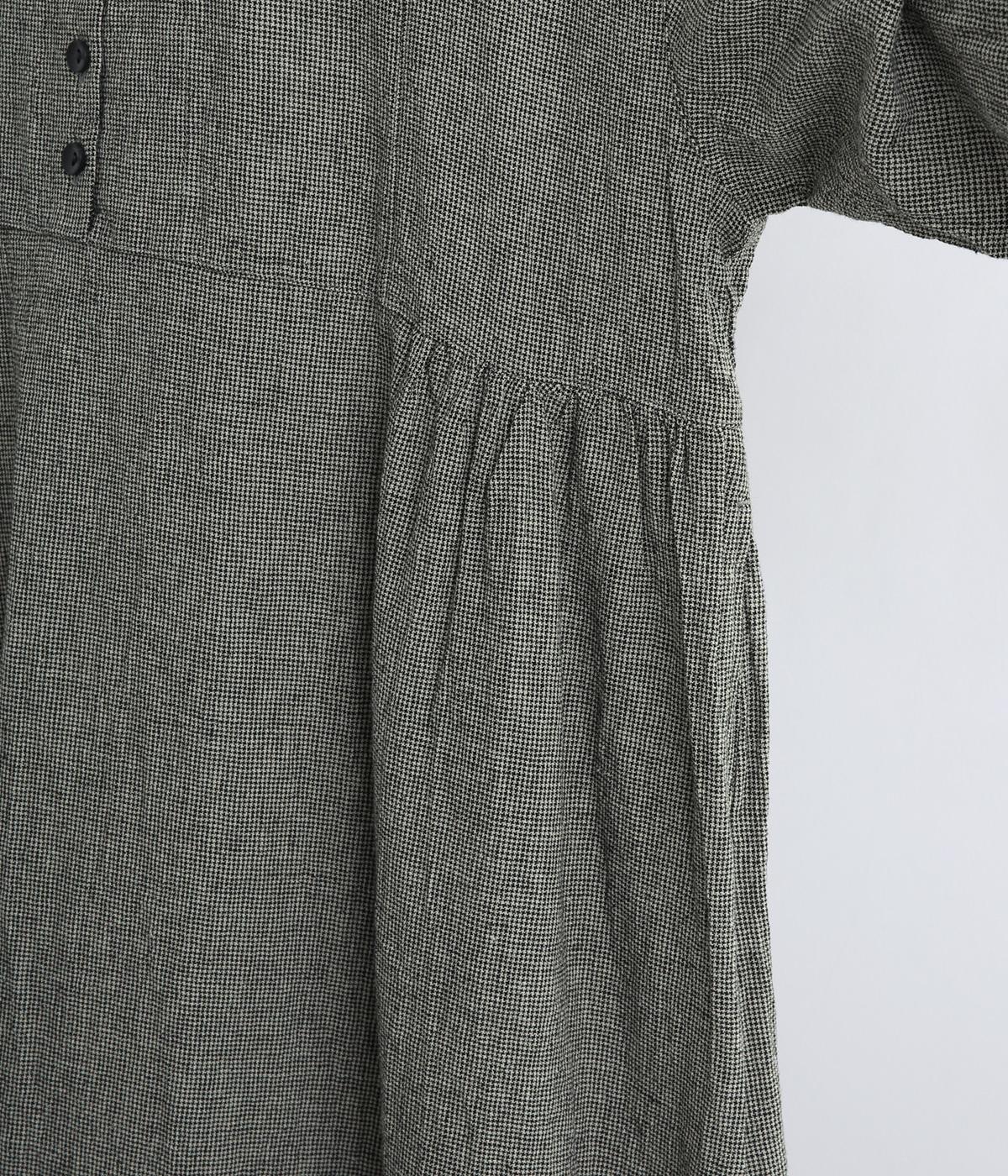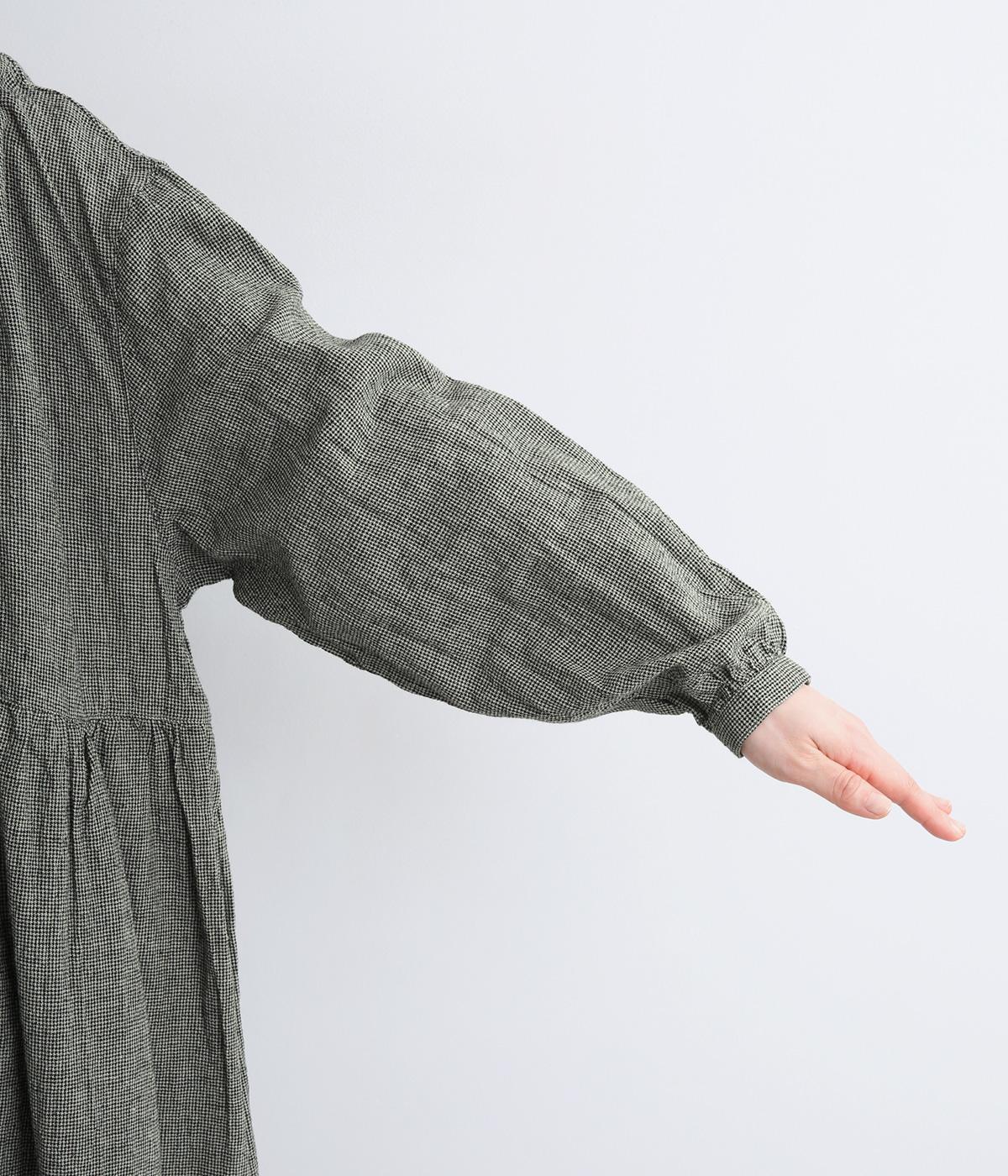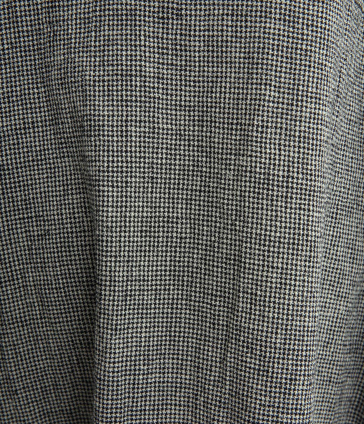 シボ感のあるナチュラルな雰囲気の素材感。さらりとドライな手ざわりとほどよいハリが特徴です。千鳥格子の柄がクラシカルで落ち着いた印象の生地です。