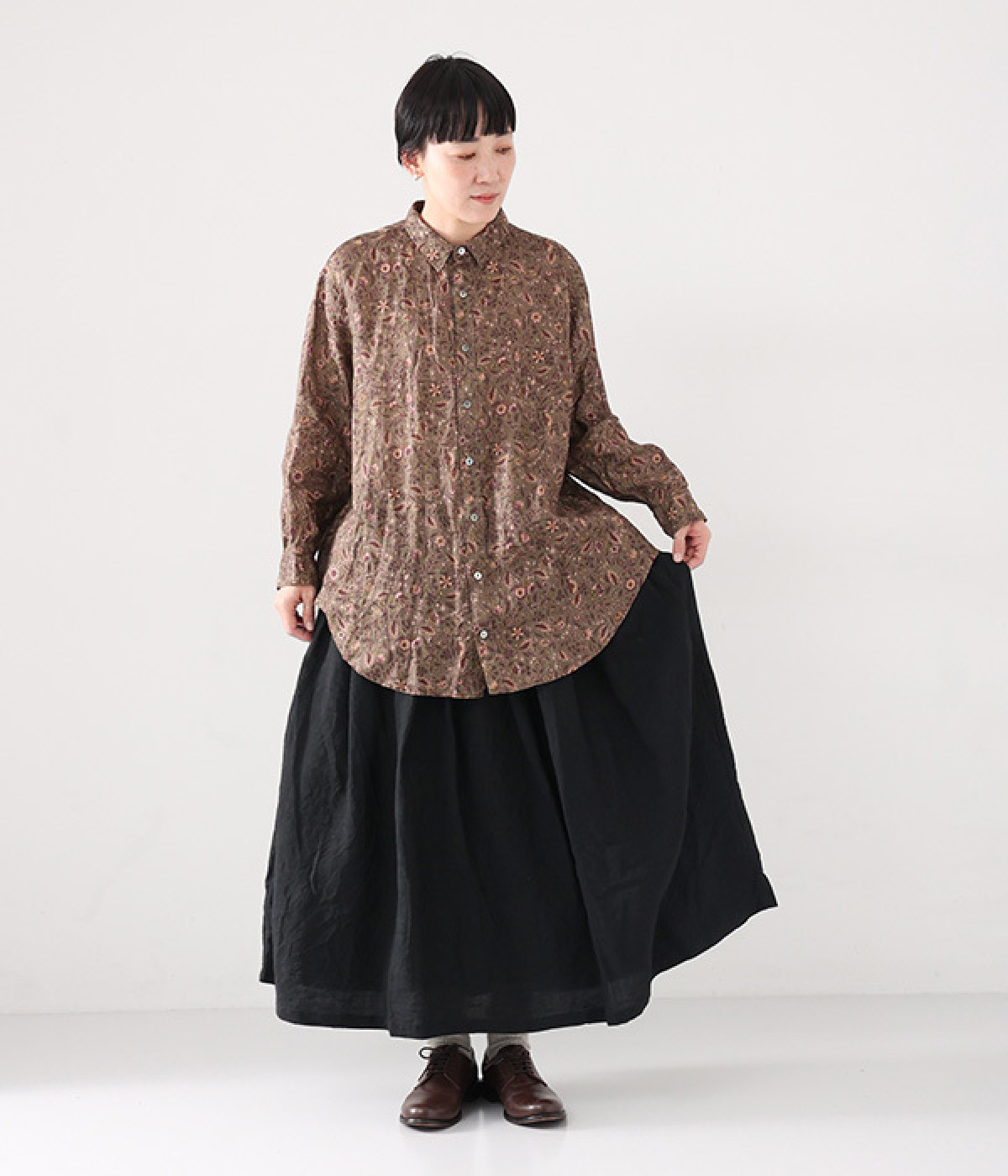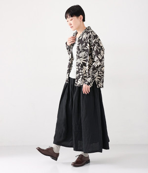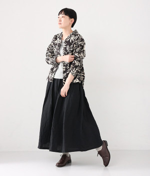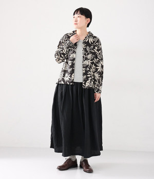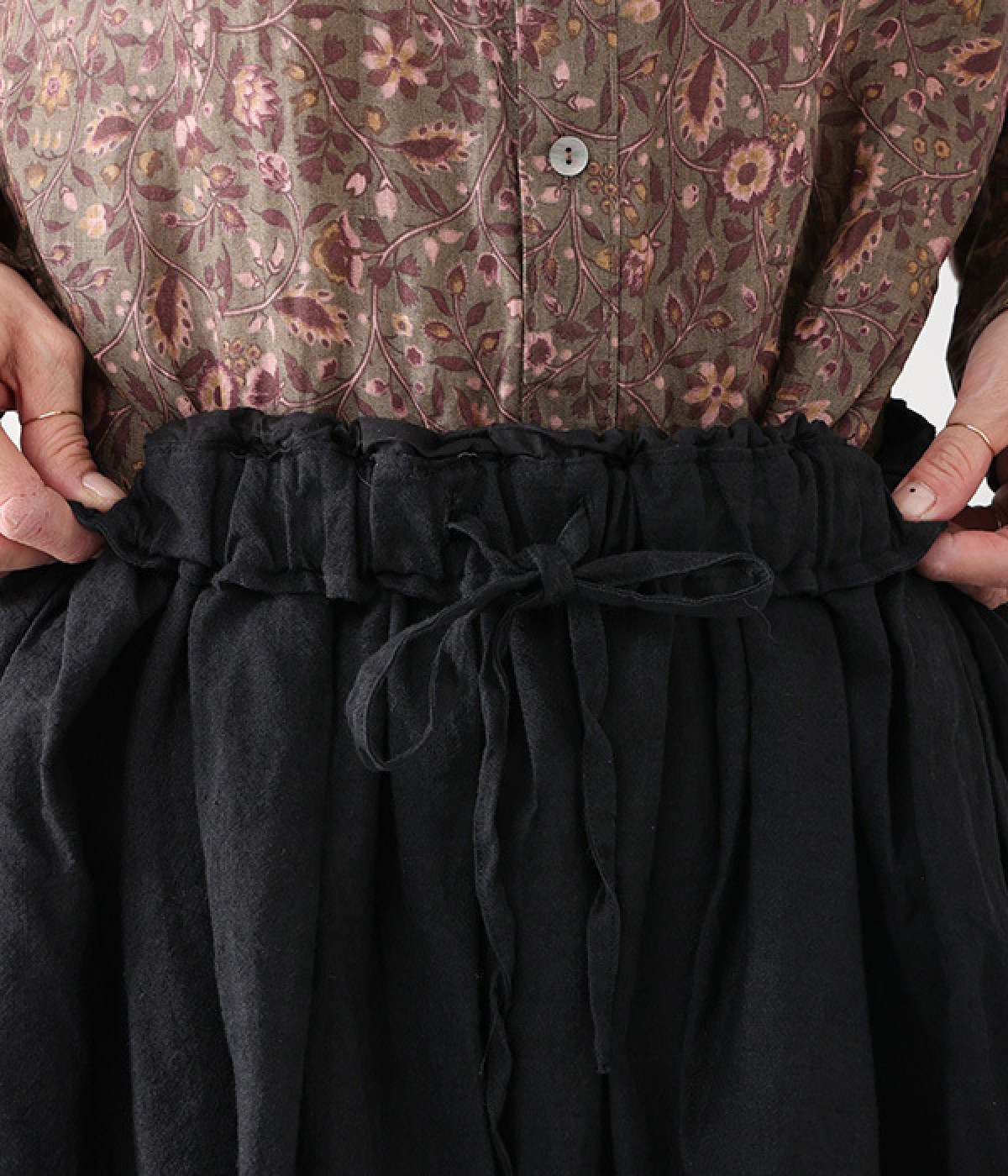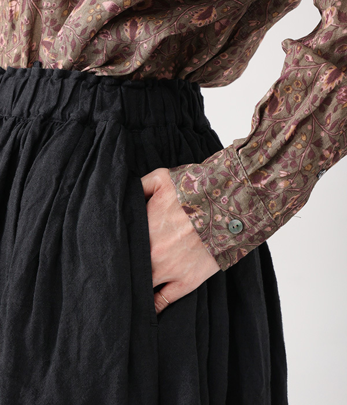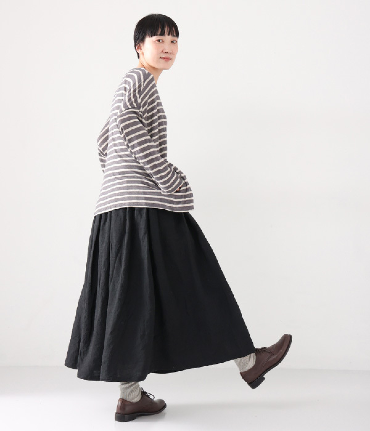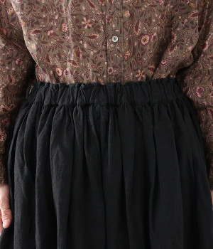 天然素材ならではのざっくりとナチュラルな手ざわりを堪能できるリネンスカート。強めのハリ&シャリをもっているため、ふんわりとしたシルエットがキープされます。腰まわりにはギャザーゴム&タックを入れているので、トップスインでコンパクトに着こなして引き立てるのも◎。透けや肌あたりにも気を配り、薄手のコットン裏地をセットしています。