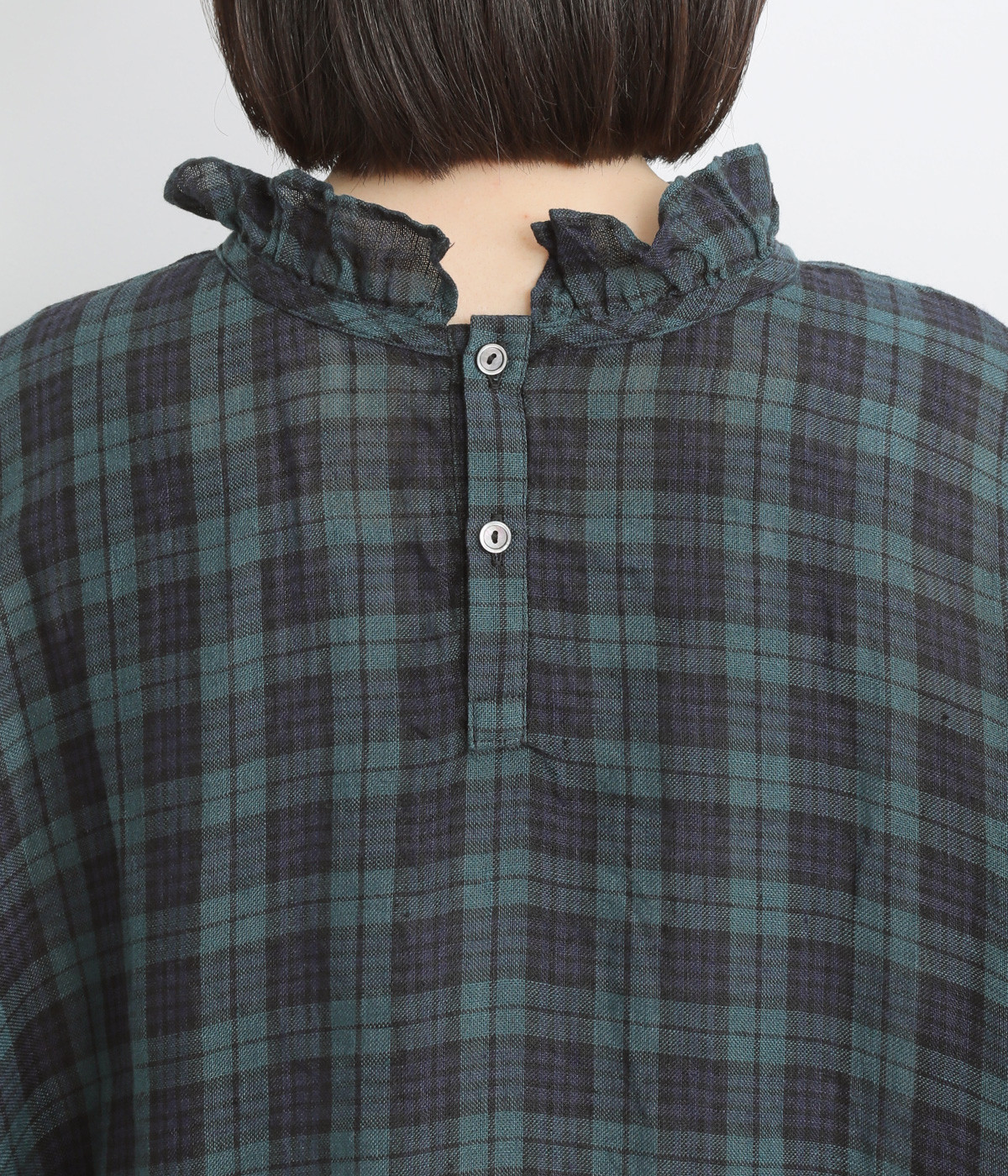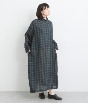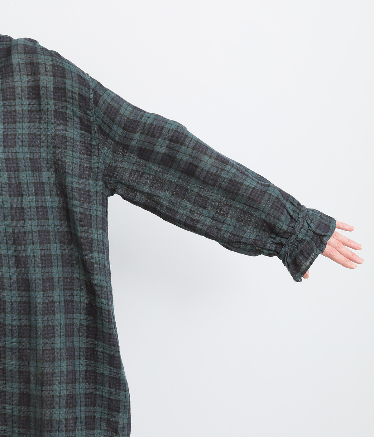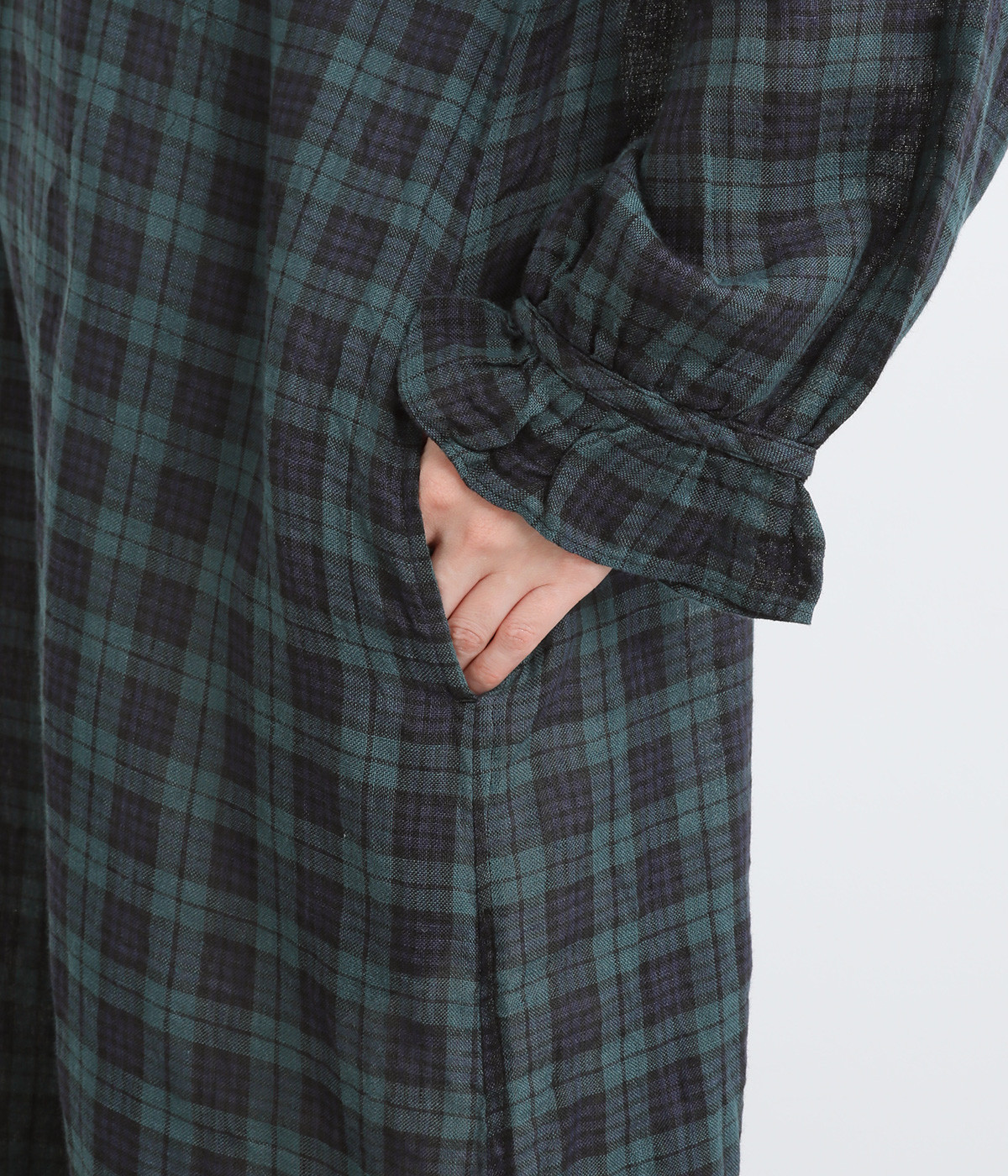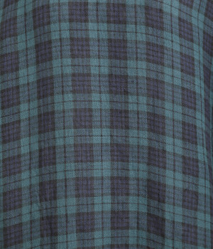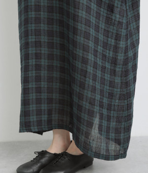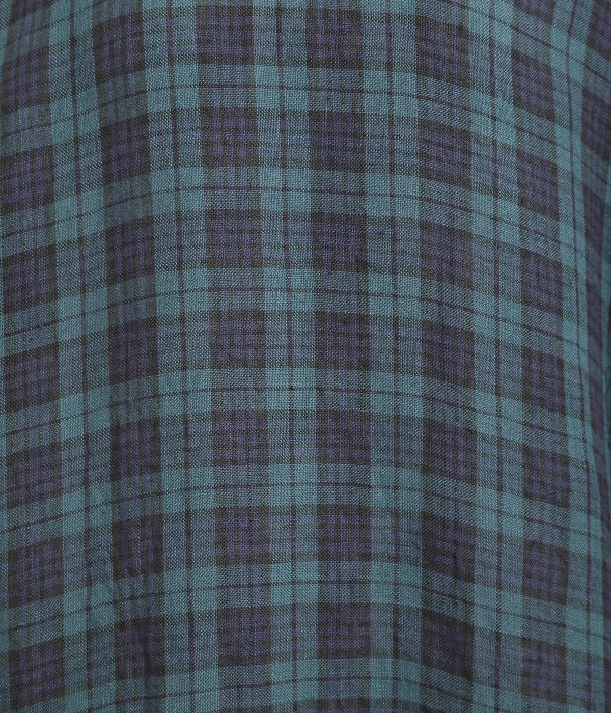 やわらかくも張りやコシ感のあるリネン素材を用いています。薄手で通気性も良く、ロングシーズン快適に着まわせる生地感です。ブラックウォッチのチェック柄が雰囲気のいい仕上がり。