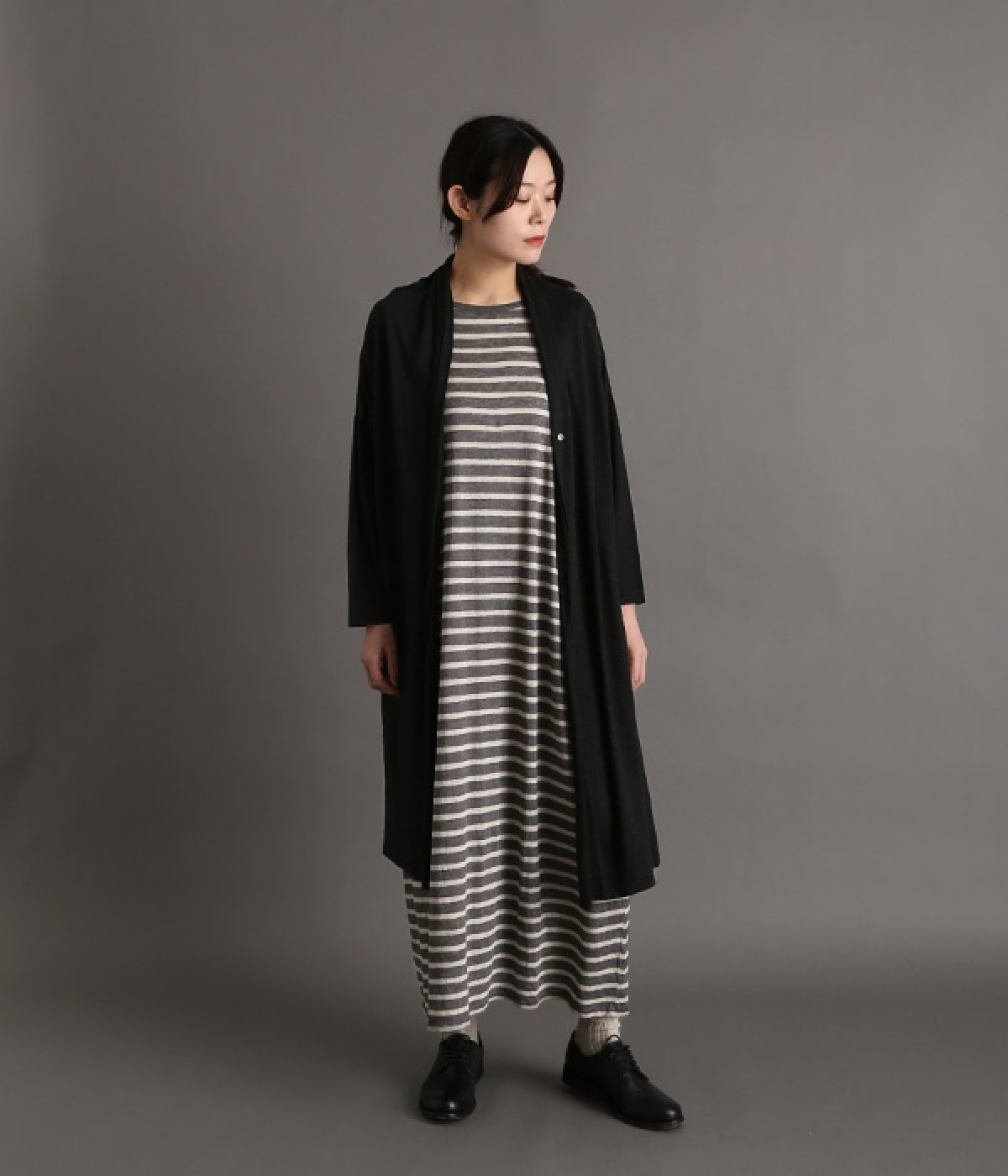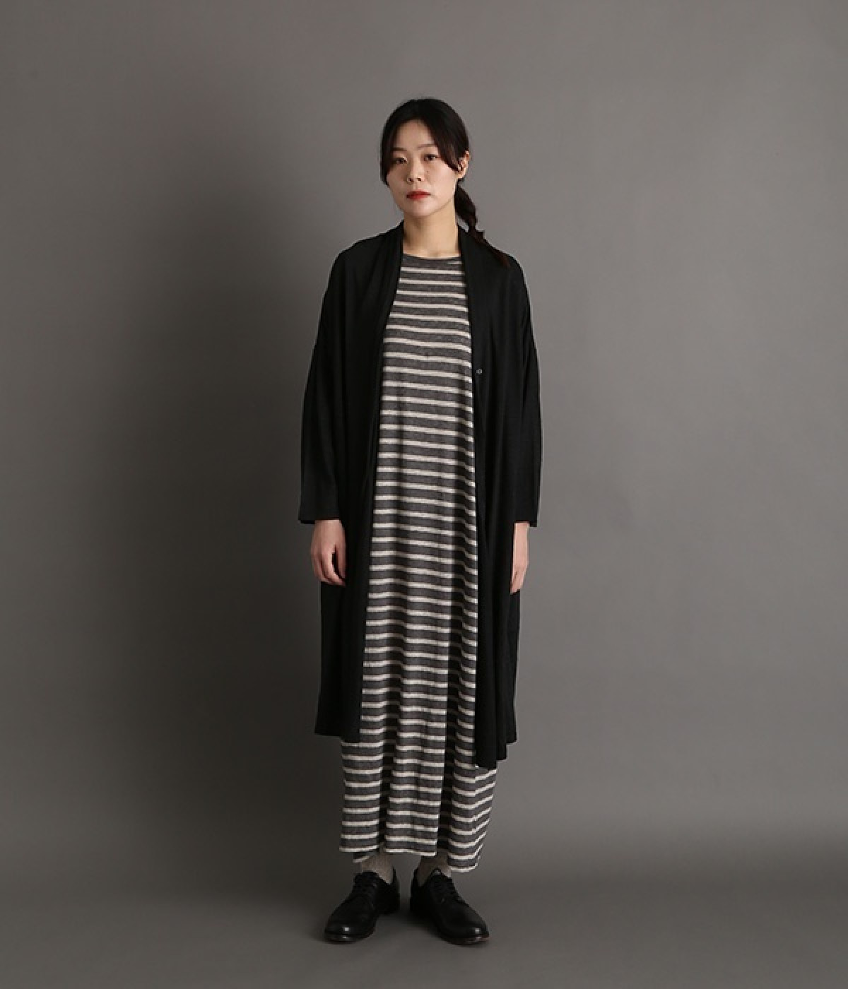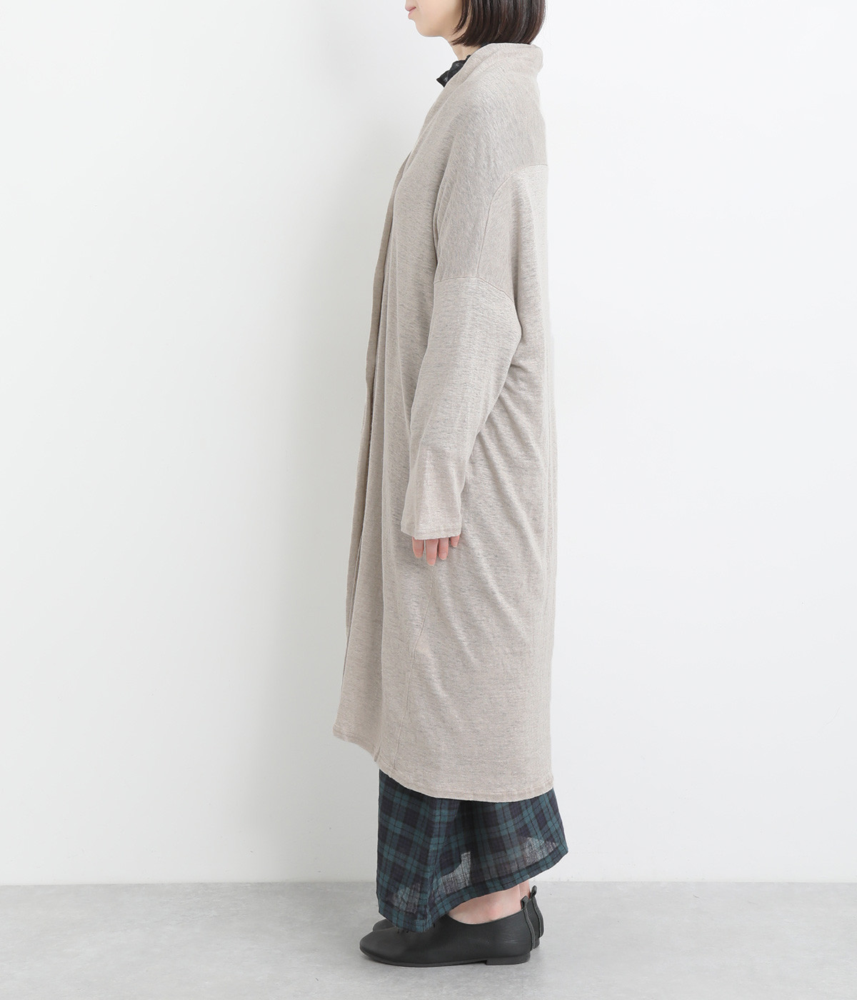 適度なハリのある軽やかなリネン素材で仕立てたロングカーディガンです。着用のたびに風合いを増し、経年変化も楽しめるやさしい肌ざわりが特徴。重ね着しやすいワイドな身幅と、ロング丈のバランスの良さがポイントです。さっと羽織れる気軽さに加え、落ち感が出るシルエットはシンプルなコーディネートに合わせるだけで、女性らしい雰囲気を作ります。