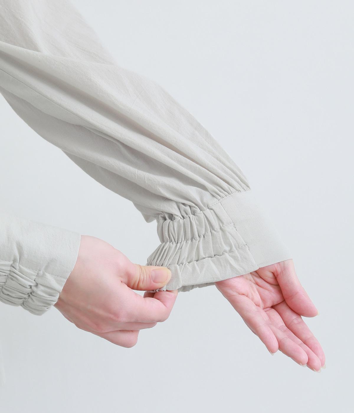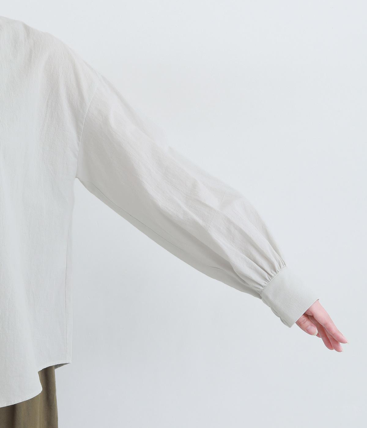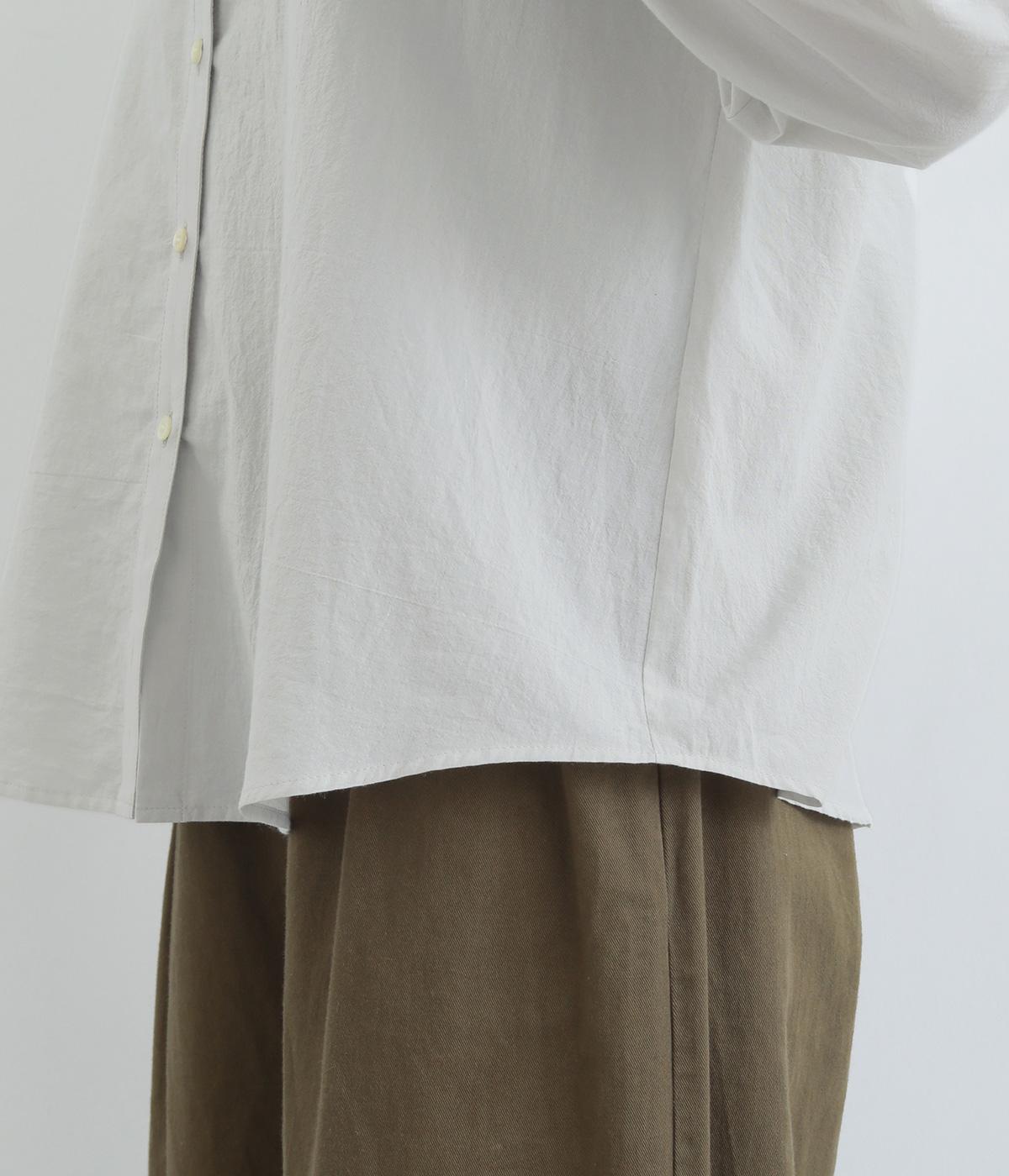少ロットの手作業染色により染められたナチュラルな風合いが特徴のコットンローン生地を使用しています。軽くて柔らかく、着心地よい素材感です。