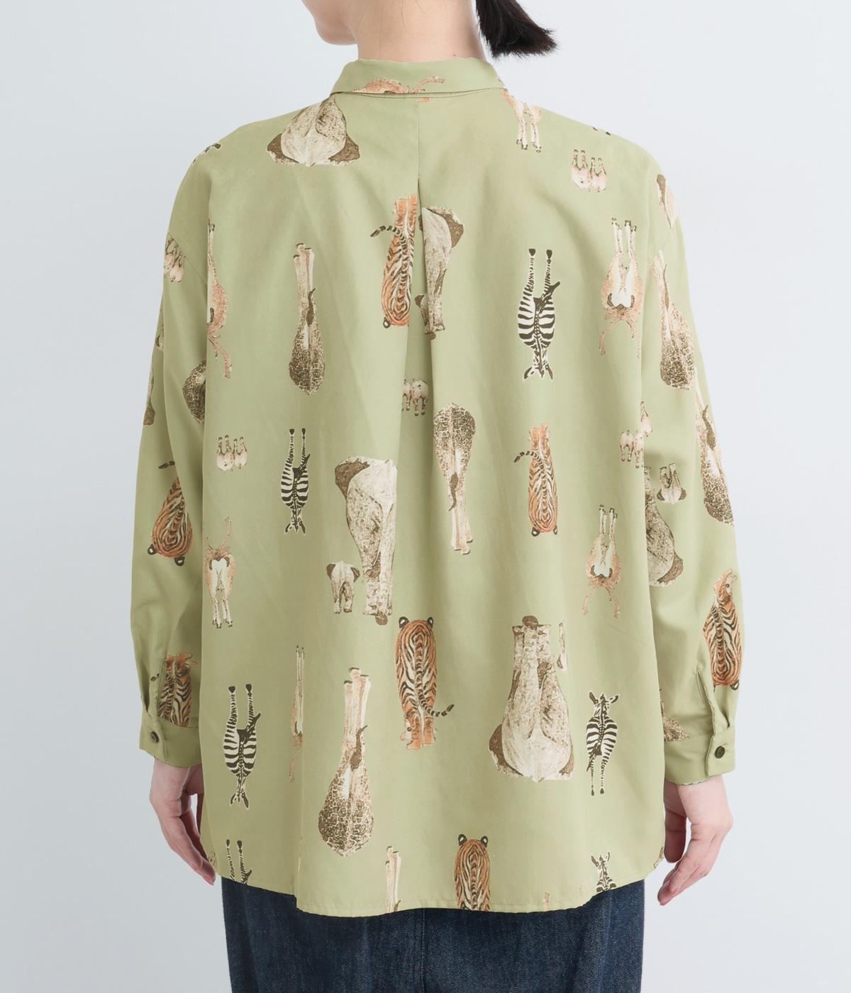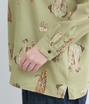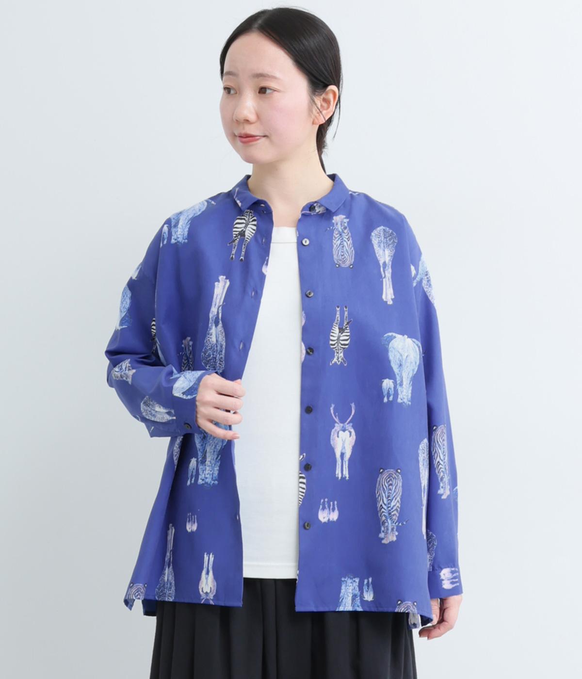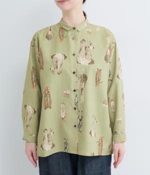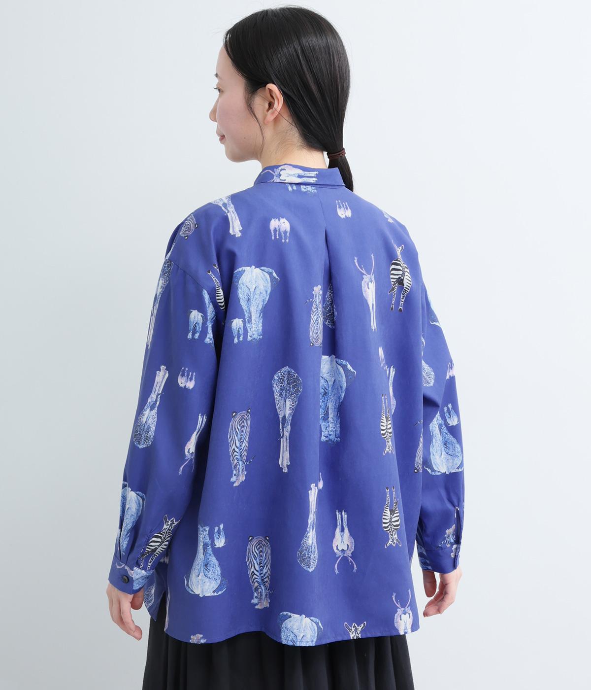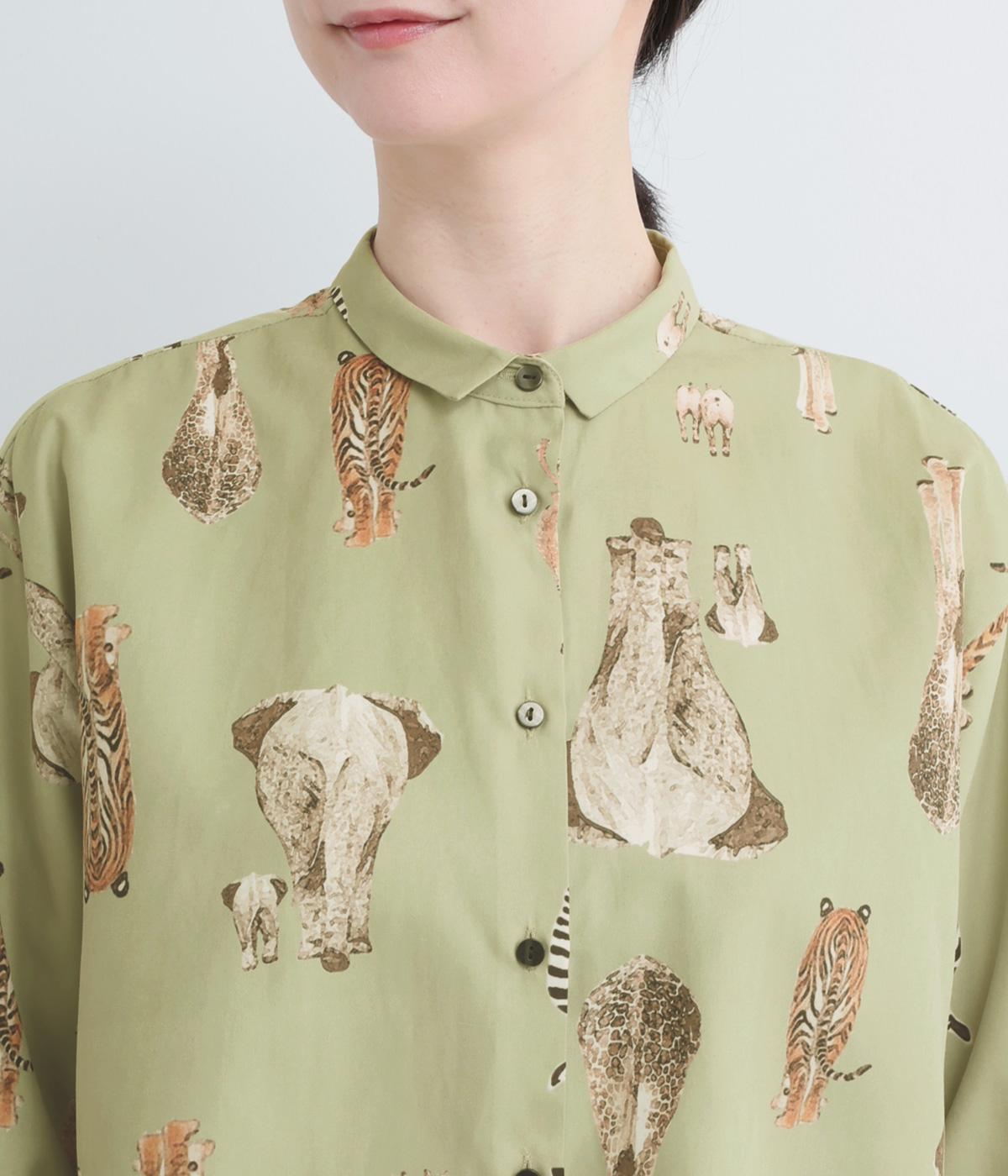 さまざまな動物のおしりを並べた愛らしい総柄プリントシャツ。ややゆったりとしたオーバーサイズがメンズライクな印象で、肩の落ち感や後ろタックのふわりとしたシルエットが上品に。すっきりした小さめの襟や袖口カフスも◎。