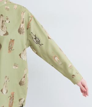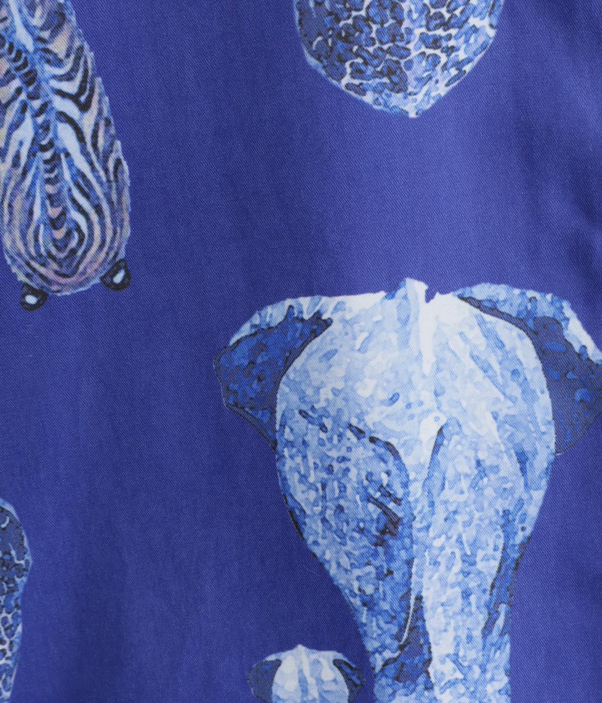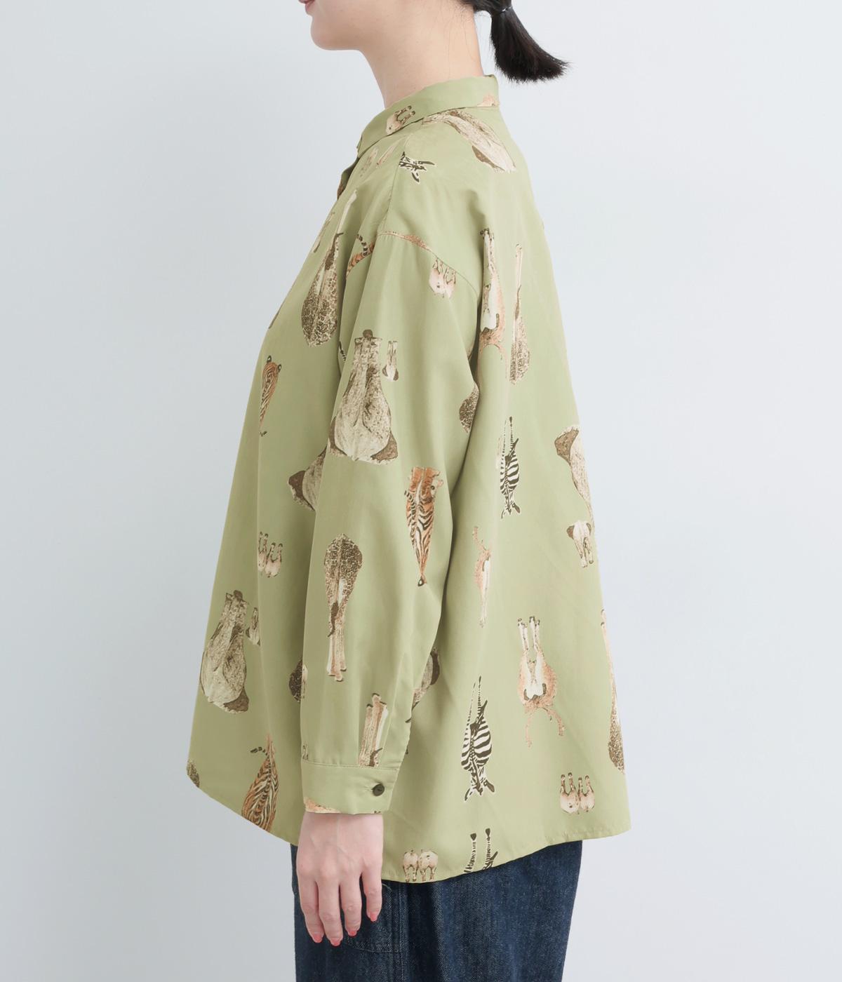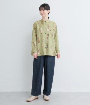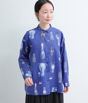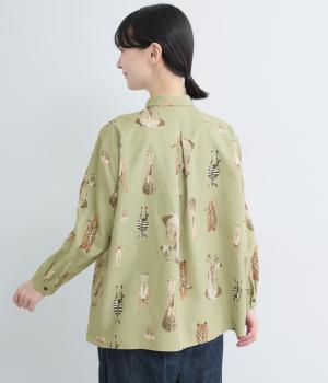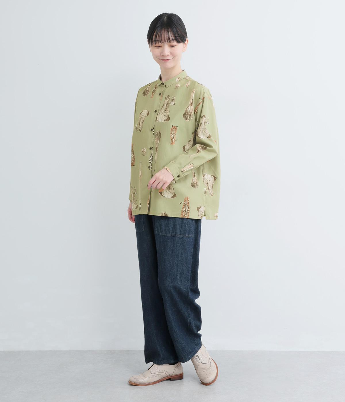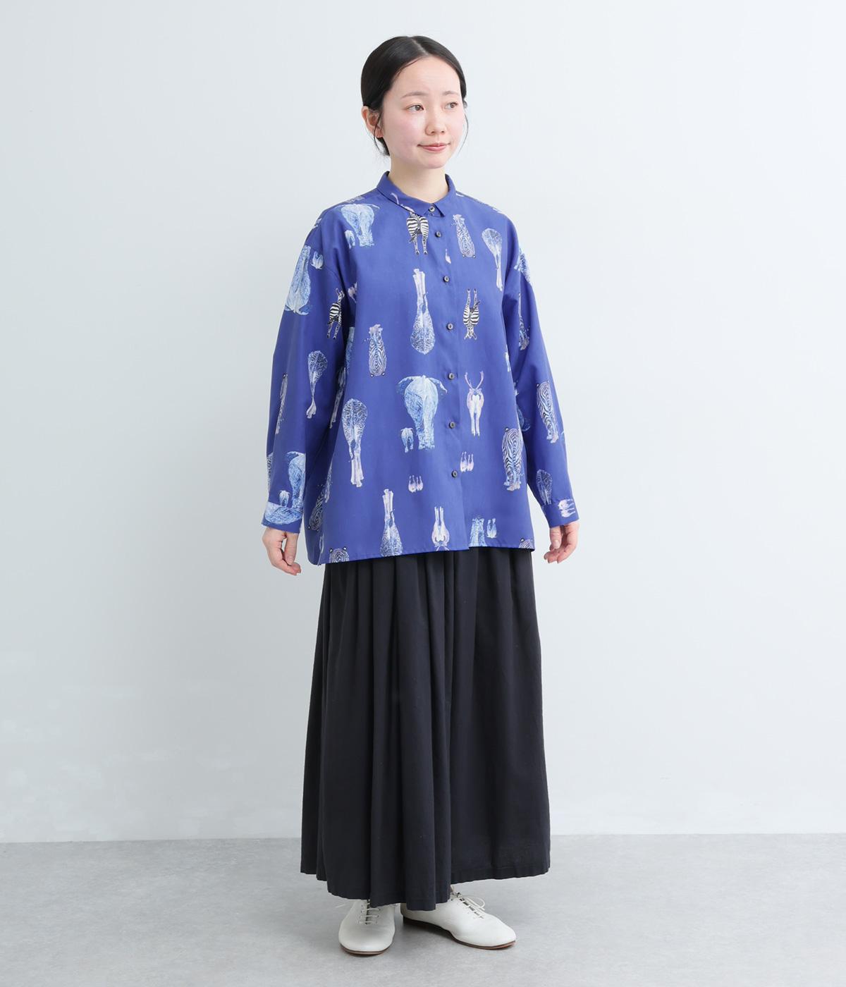 さまざまな動物のおしりを並べた愛らしい総柄プリントシャツ。ややゆったりとしたオーバーサイズがメンズライクな印象で、肩の落ち感や後ろタックのふわりとしたシルエットが上品に。すっきりした小さめの襟や袖口カフスも◎。