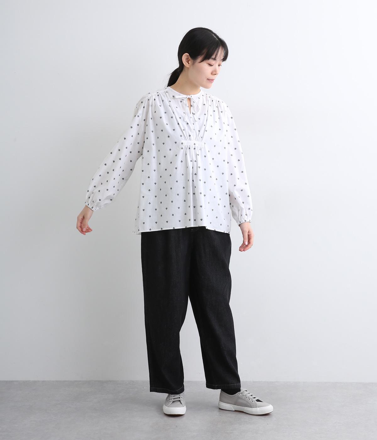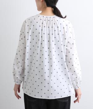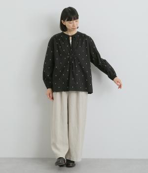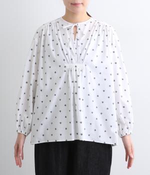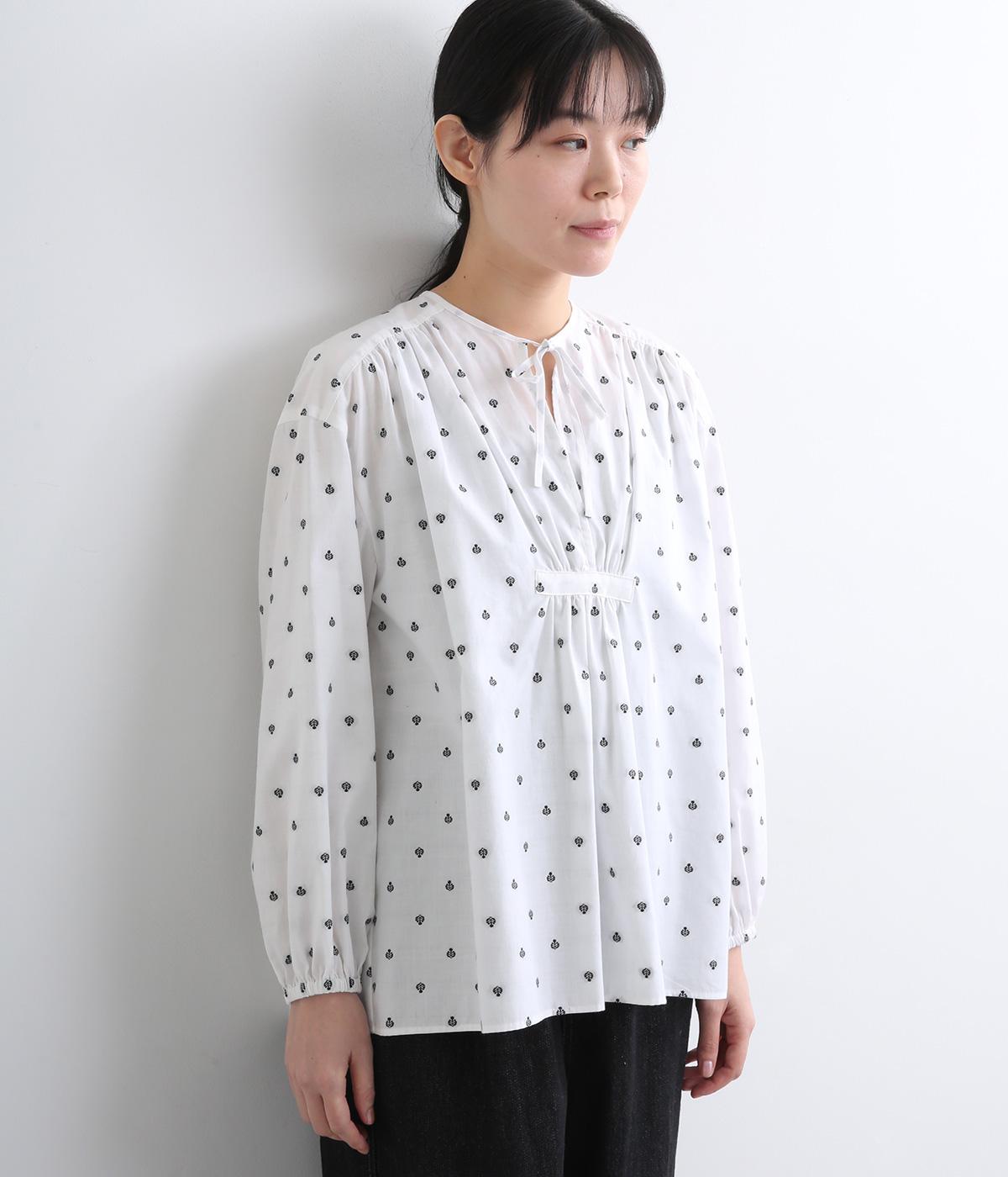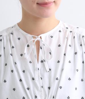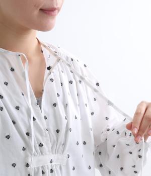 さらっとした清涼感あるコットン地に、カットジャカードで柄を施しました。エスニックなニュアンスをデイリーに取り入れられるよう、色みはシンプルに仕上げています。
