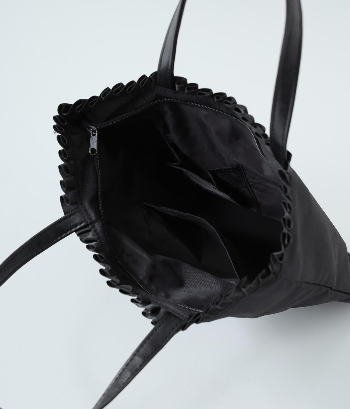 高密度に織りあげられた、丈夫で型崩れしにくいグログラン生地を採用。トートバッグは表面に光沢のあるさらりとしたポリエステル生地を使用しています。