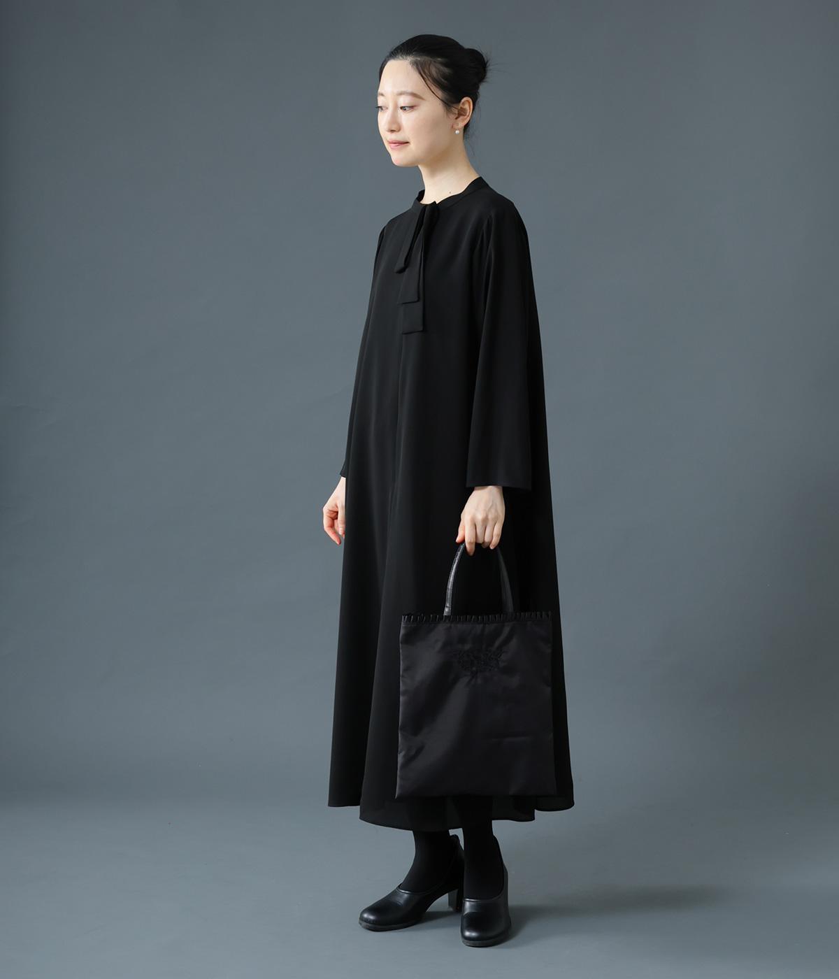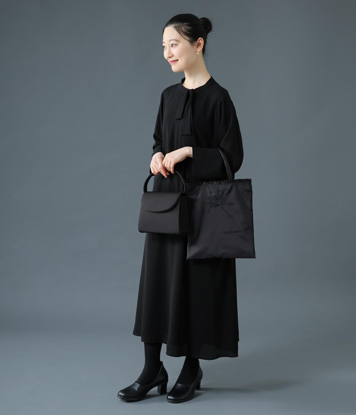 グログラン生地を使用した上品でシンプルなスクエアバッグと、荷物が多いときにサブバッグとして持つのに便利なトートバッグのセットです。トートバッグは控えめのフリルや刺しゅうを愛らしいアクセントにしました。
