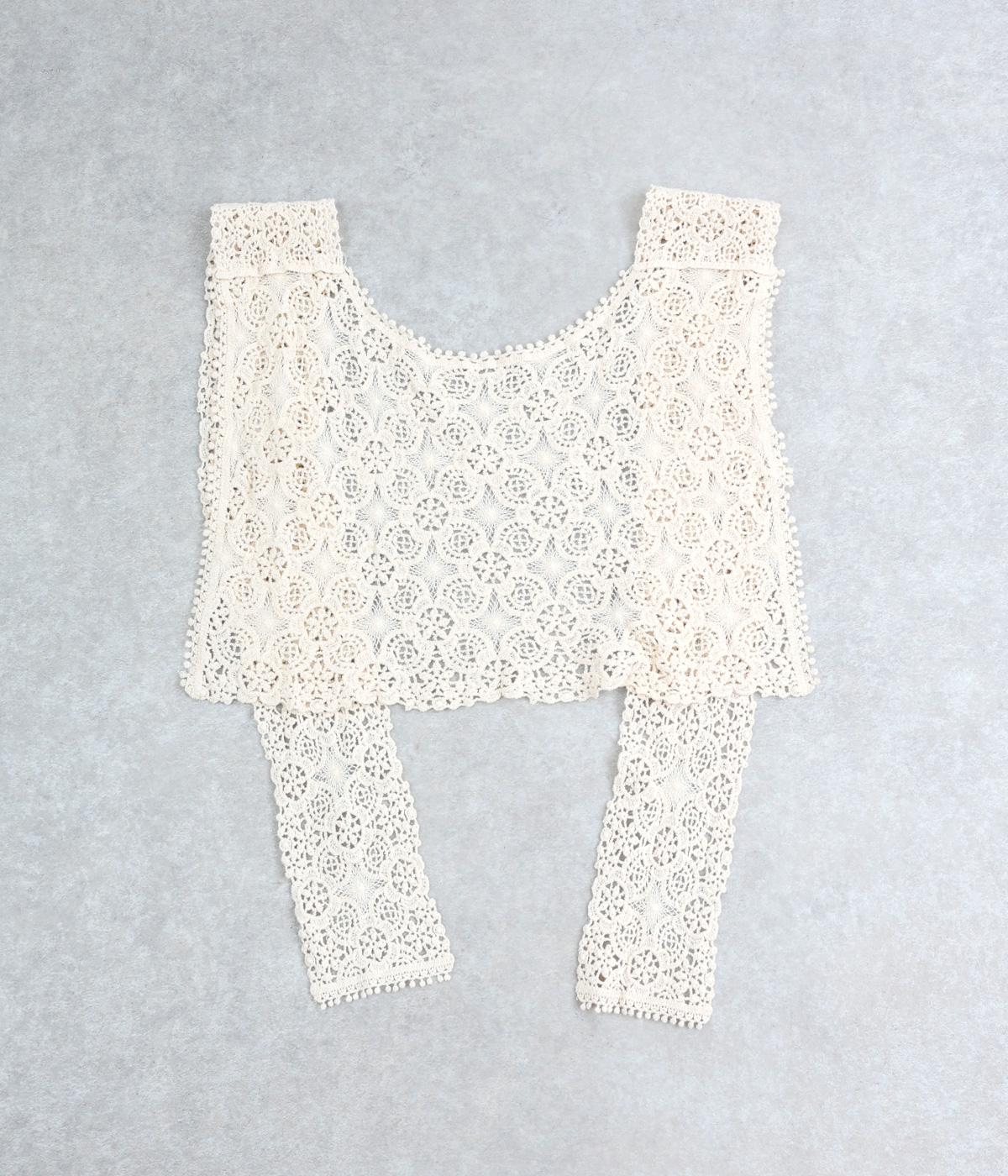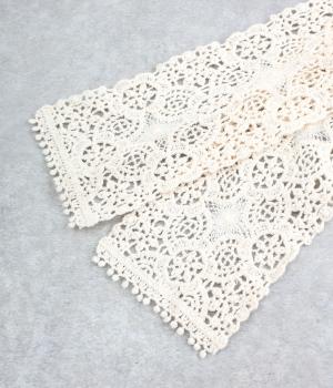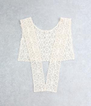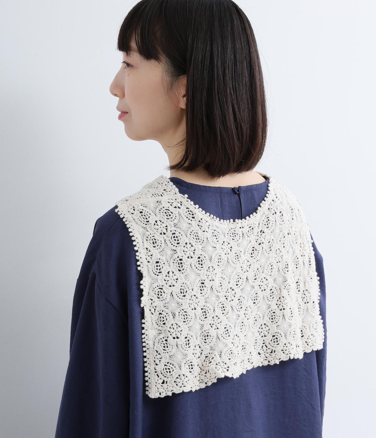 肩にかけるだけでセーラーカラーのようなワンポイントになるレースつけ襟。前部分はそのまま垂らしても軽く結んでも◎。大人の可愛らしさをトッピングしてくれるアイテムで、ナチュラル素材が甘さを中和させてちょうどいいバランスに。