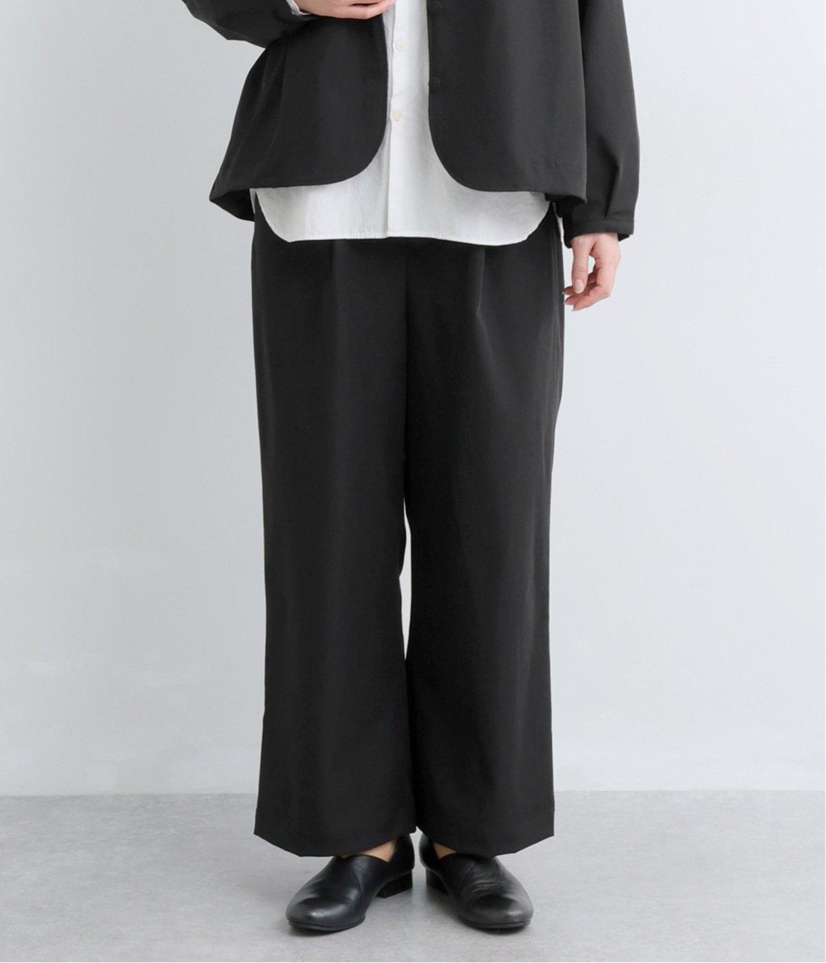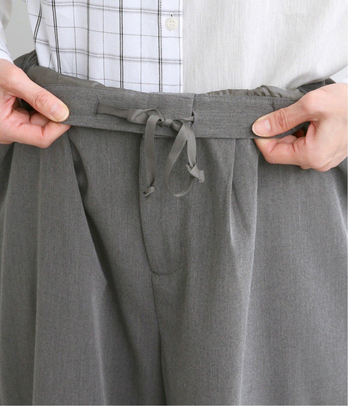 体のラインを拾いにくくすっきりと仕立てたストレートラインがきちんと感を演出し、品のいい素材できれいめな装いにもはまります。タックインもきまるウエストはまわりは、後ろゴム&内紐ではき心地も◎。前ファスナーで脱ぎはきもイージー。