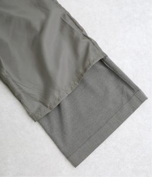 ポリエステルとレーヨンを混紡したTRツイル生地を使用。レーヨンによる光沢が上品な印象で、シワになりにくくほのかに伸縮性があり耐久性にも優れています。すべりのいい裏地つきです。