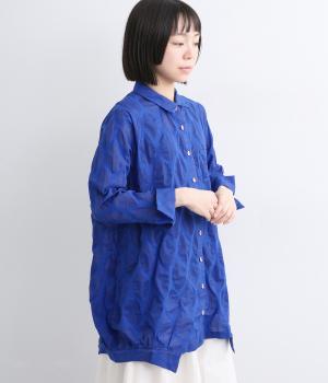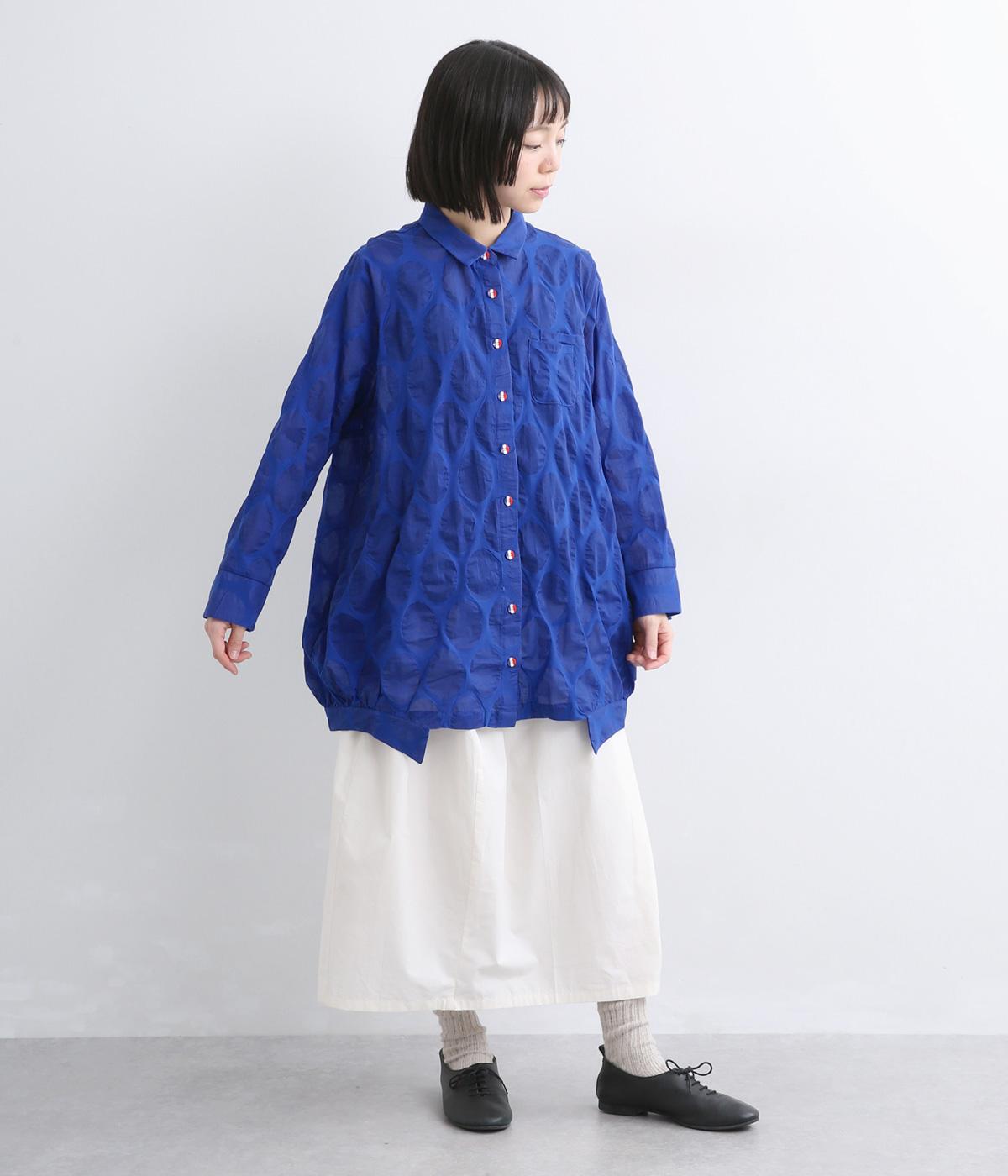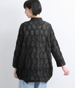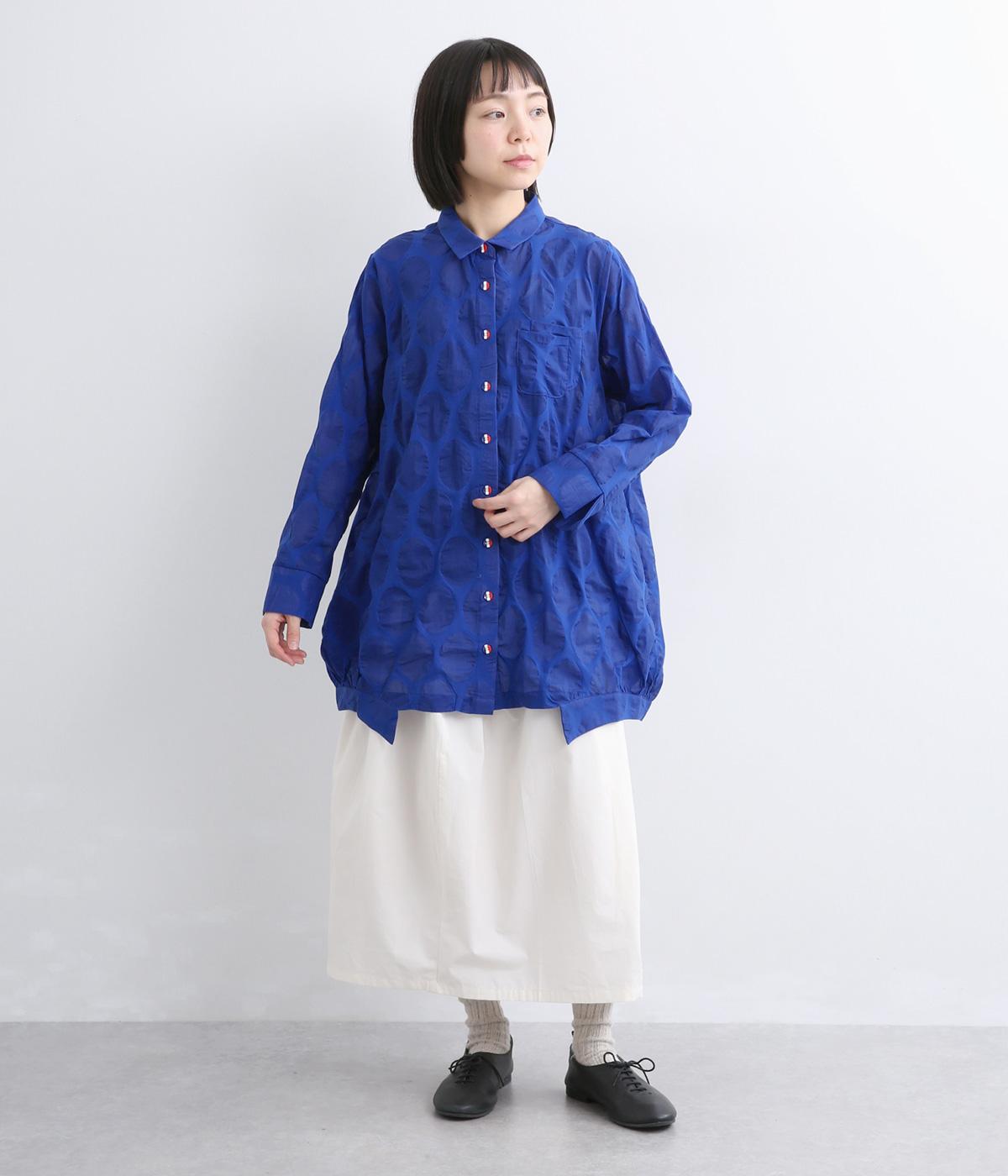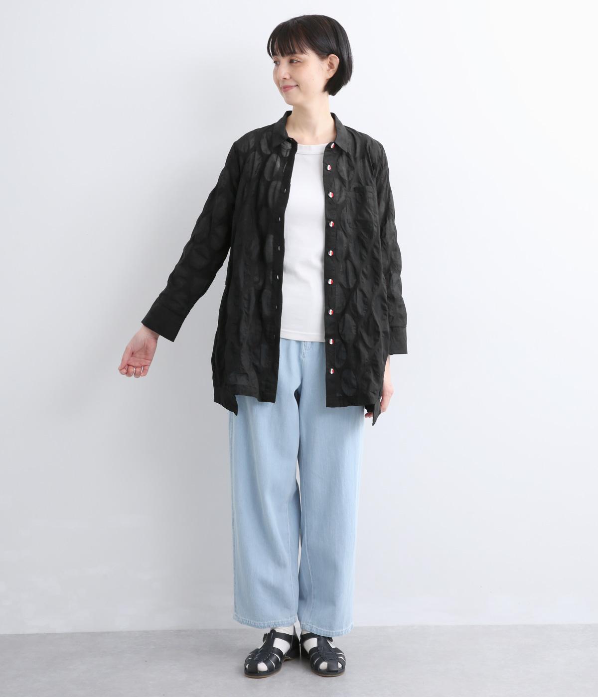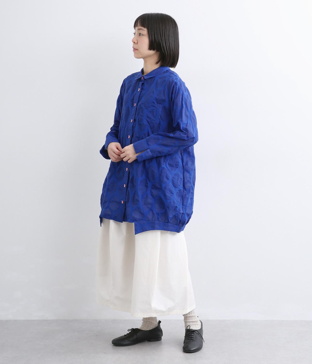 コットン生地に透け感のあるドットをあしらい、軽やかで清涼感のある風合いに仕上げています。肌ざわりがよく、快適に着られる素材感です。