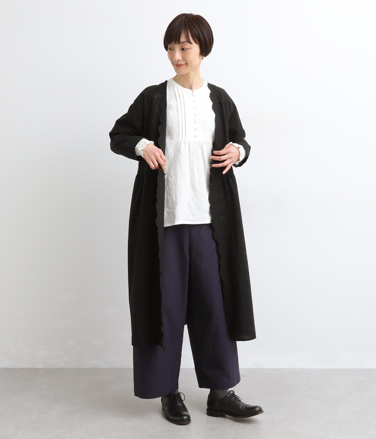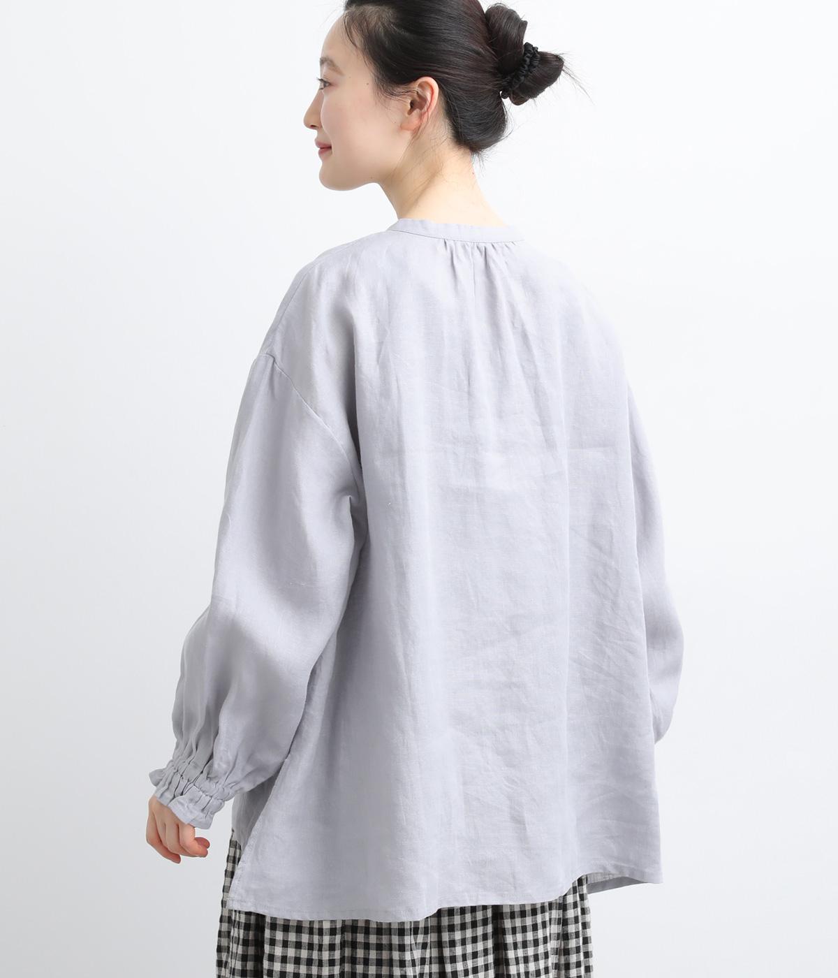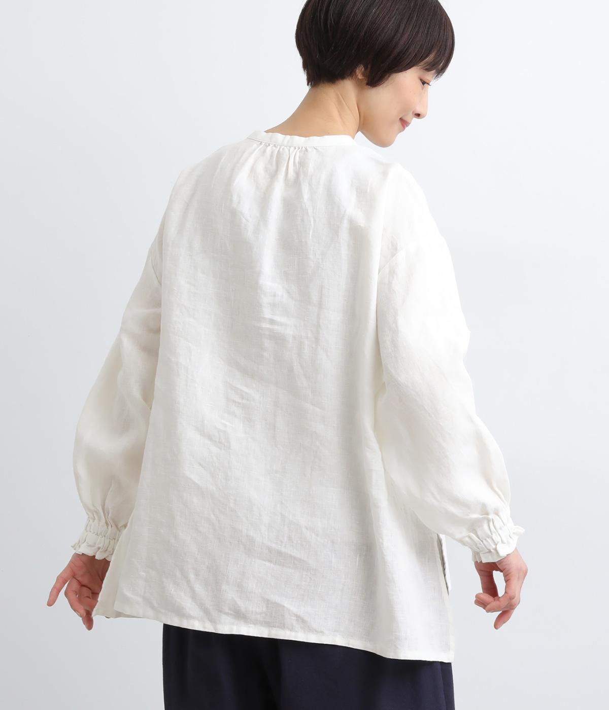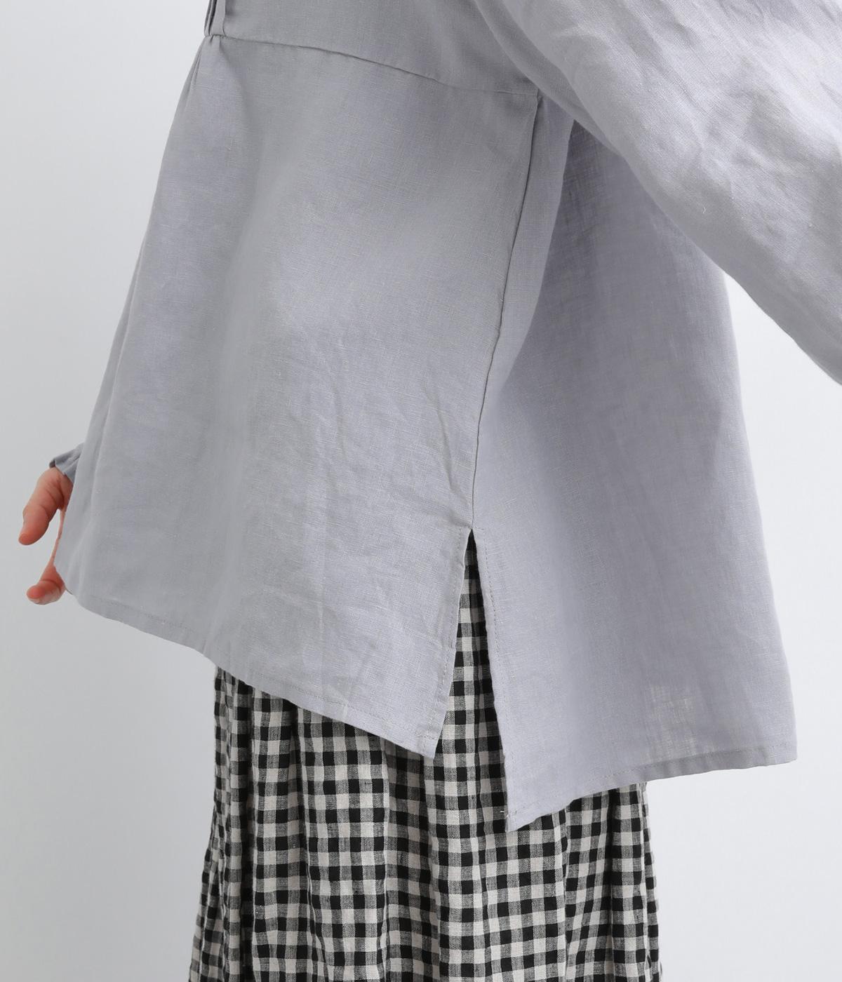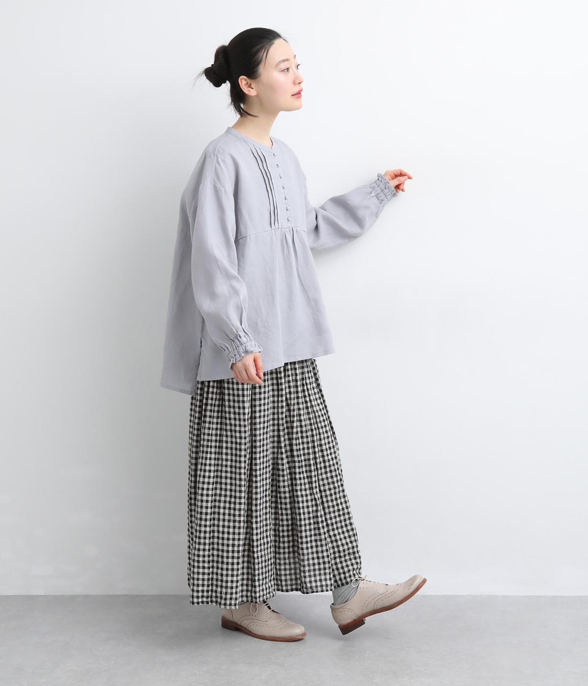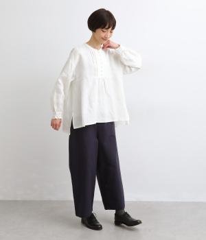 リネンらしいコシと落ち感があじわえる薄めの中厚手生地。通気性が良くほんのり透ける生地感で、見た目も着心地も軽やかです。