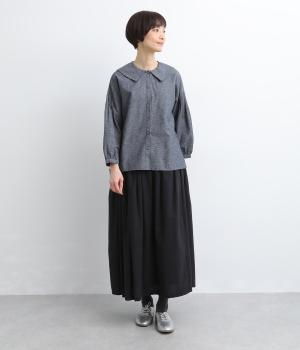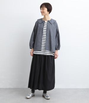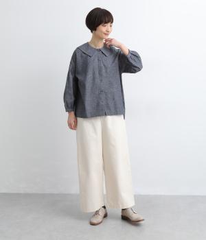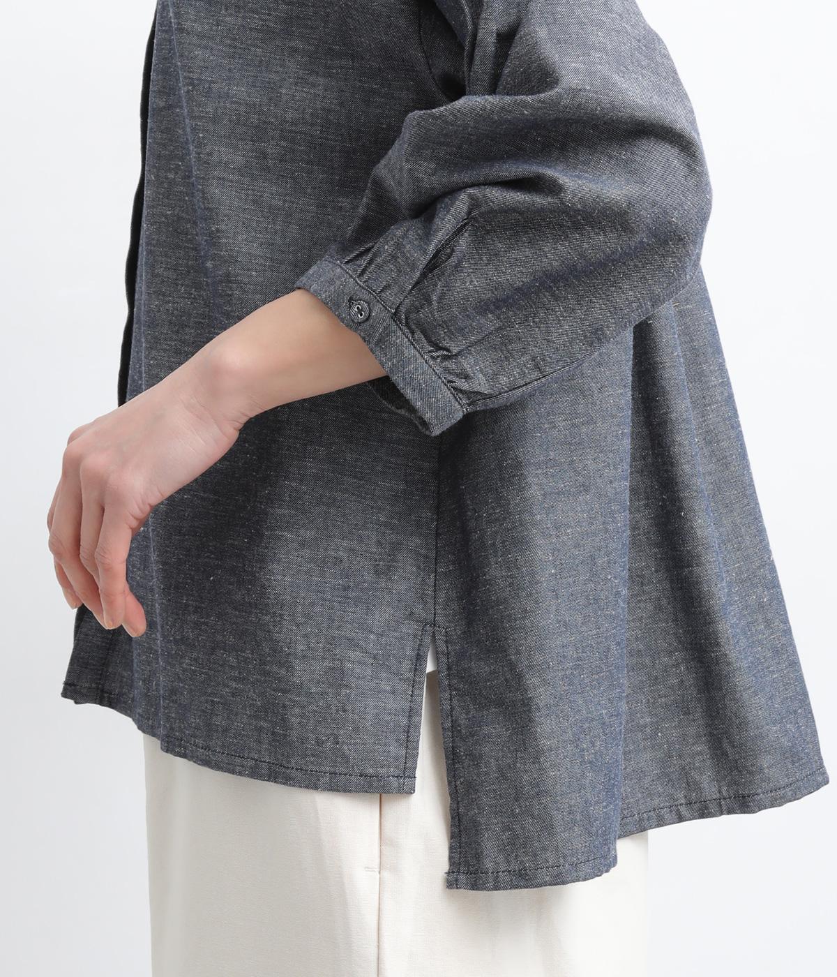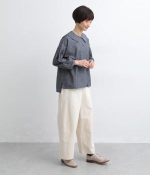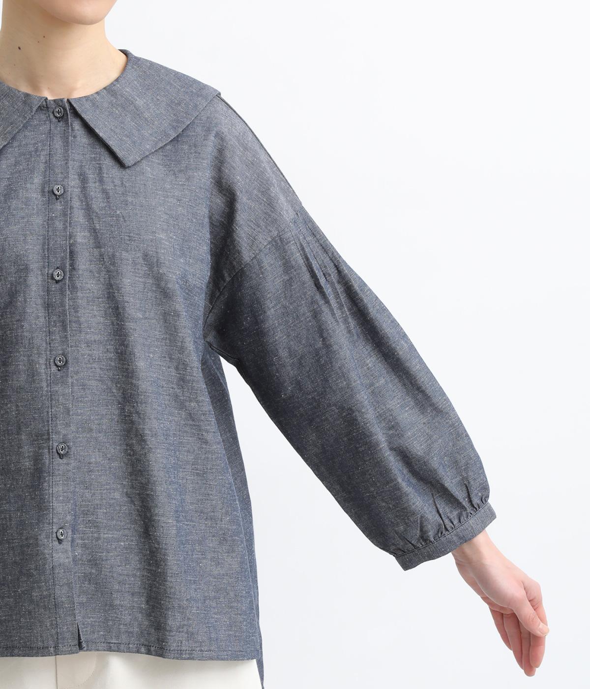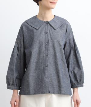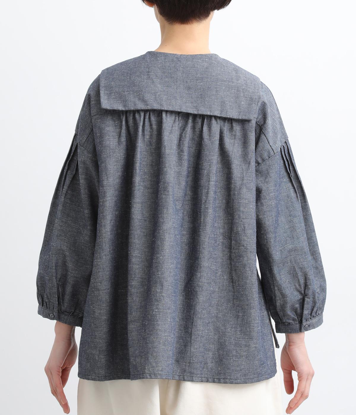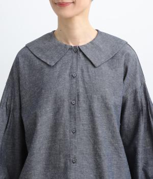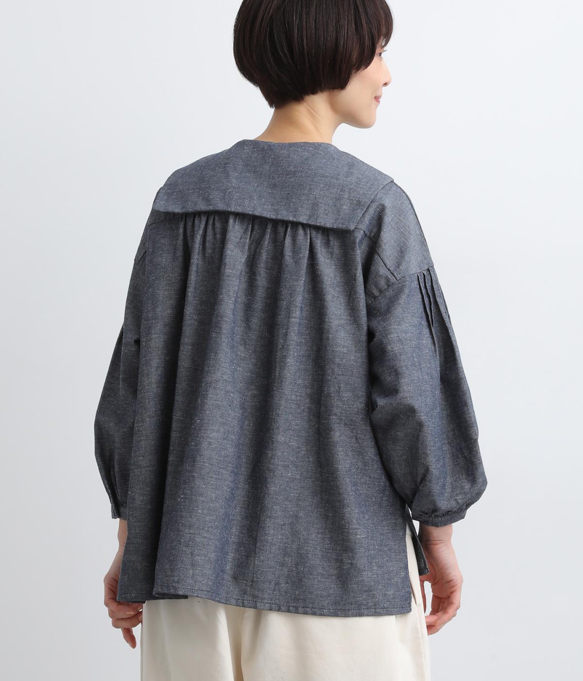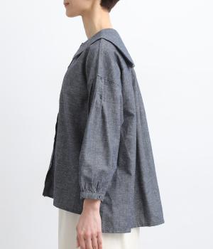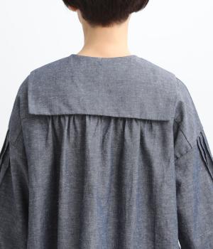 ガーリー要素のあるセーラーカラーを気持ちのいいダンガリー素材で大人アイテムに昇華。身頃はボックス型ですっきりと、袖はタックを入れてふっくらと変化をつけました。前後差のある裾はスリット入りで動きのあるシルエットに。