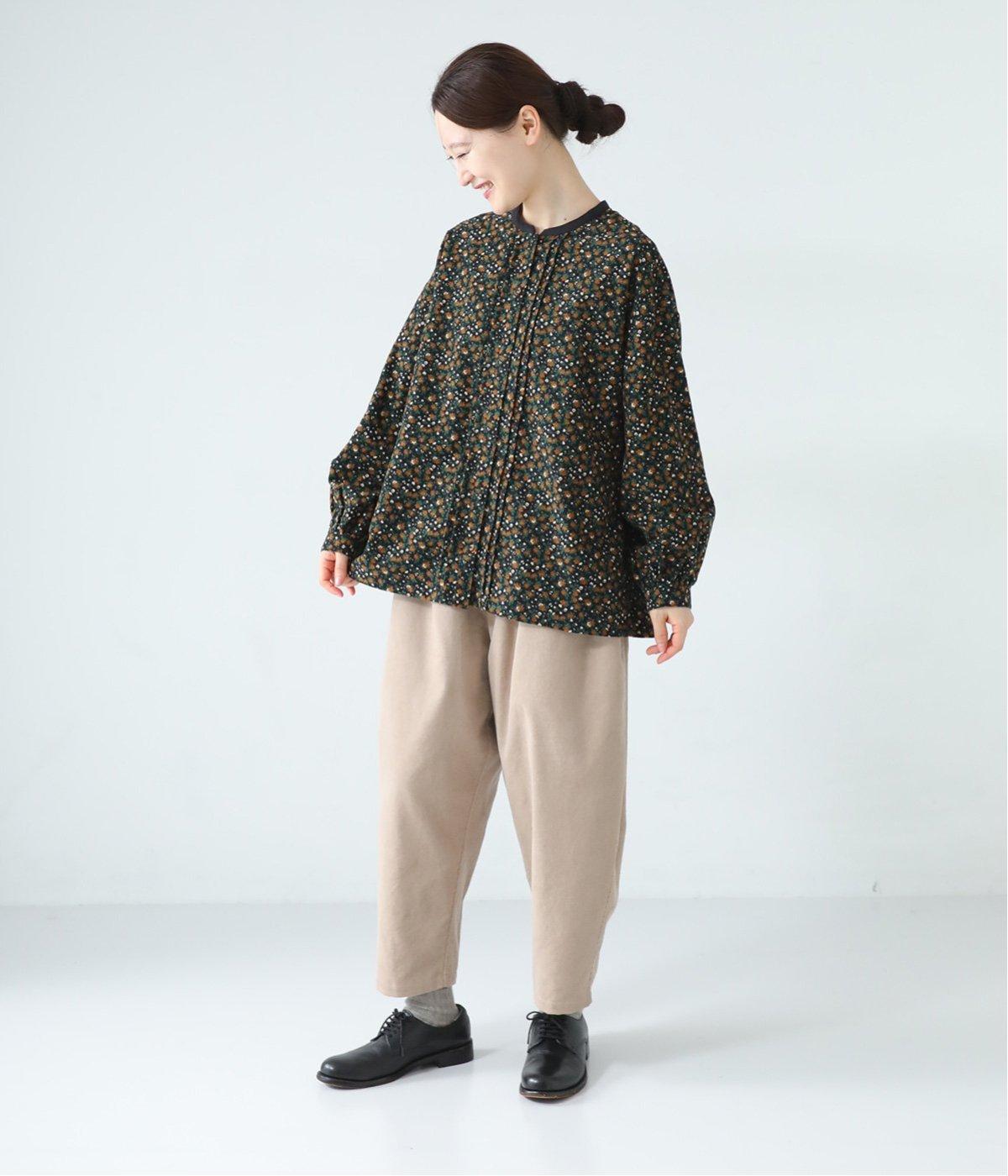 着こなしに季節感と品のよさを与える、起毛感のある生地で仕立てたブラウス。小さく立ち上げた配色の襟と、前身頃のピンタックがポイントです。背面ヨークのギャザーやふんわりとした袖が、フェミニンなムードをプラス。生地感だけでなく細かなディテールにもこだわりの光る、主役級のアイテムです。