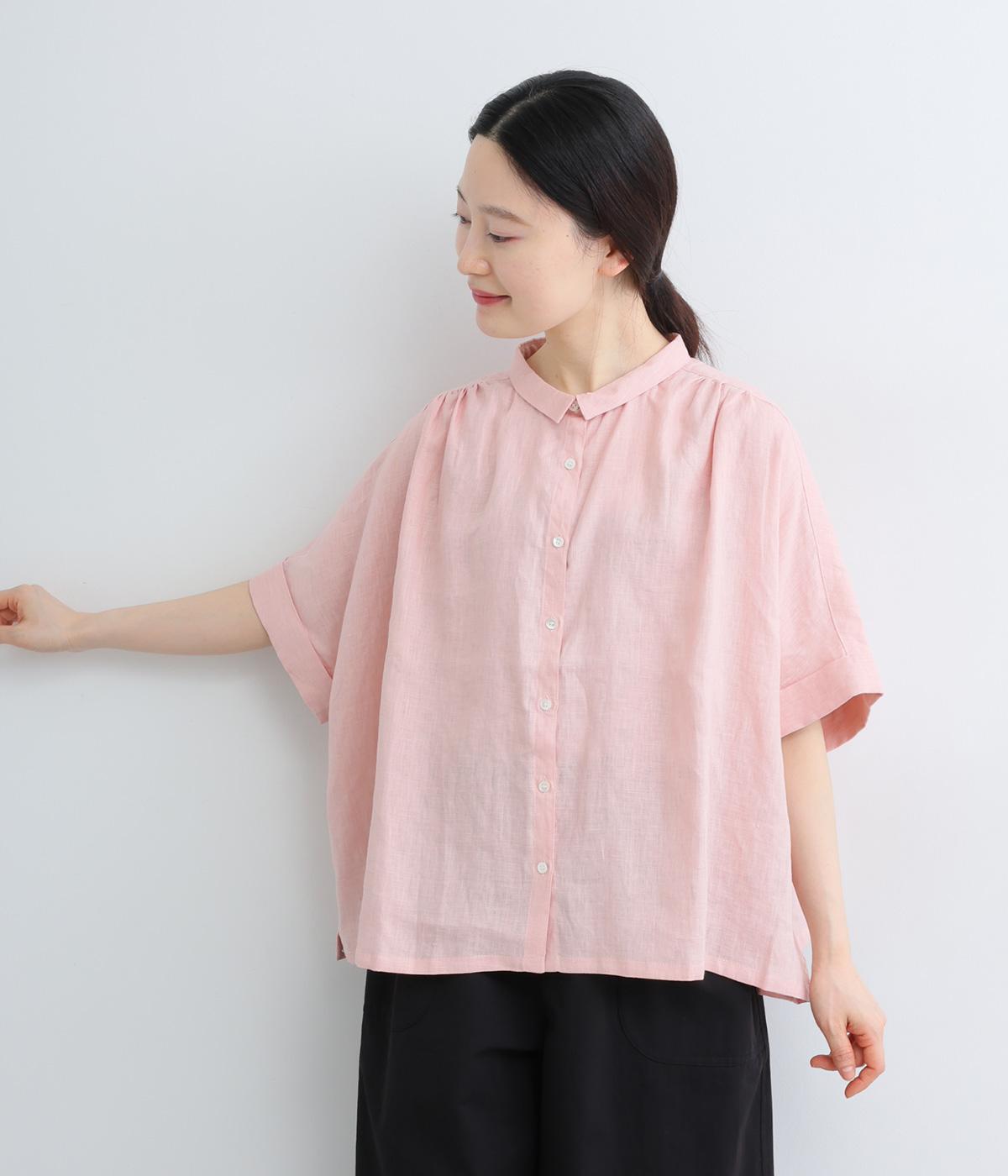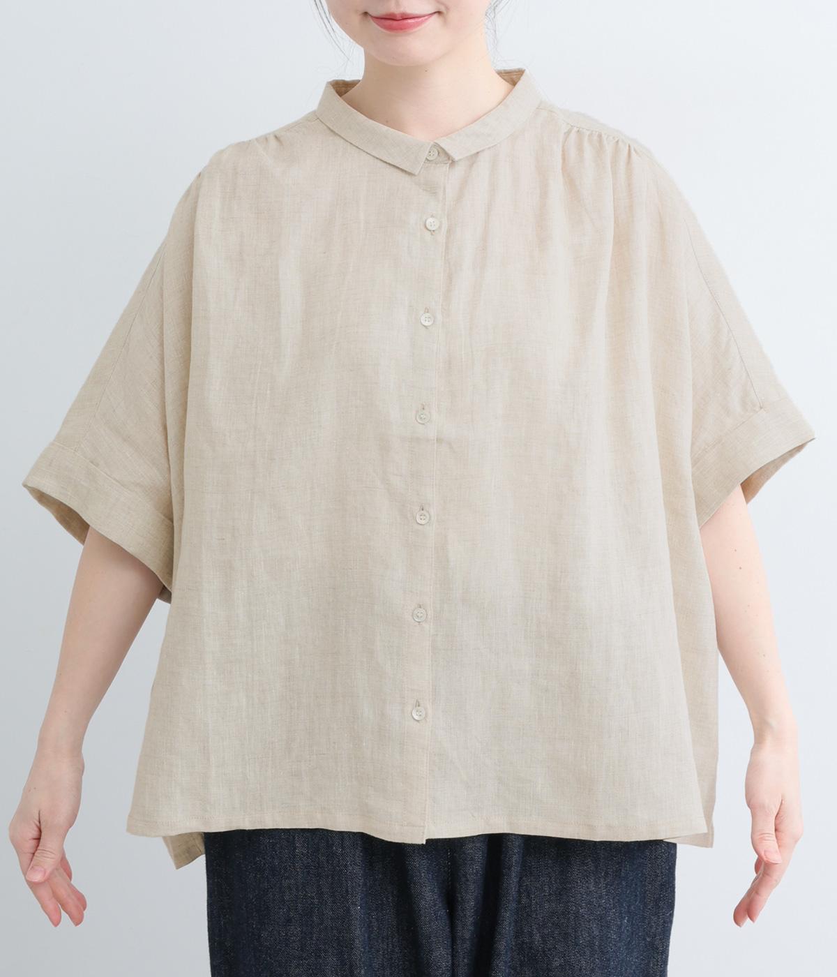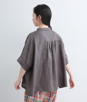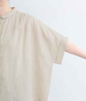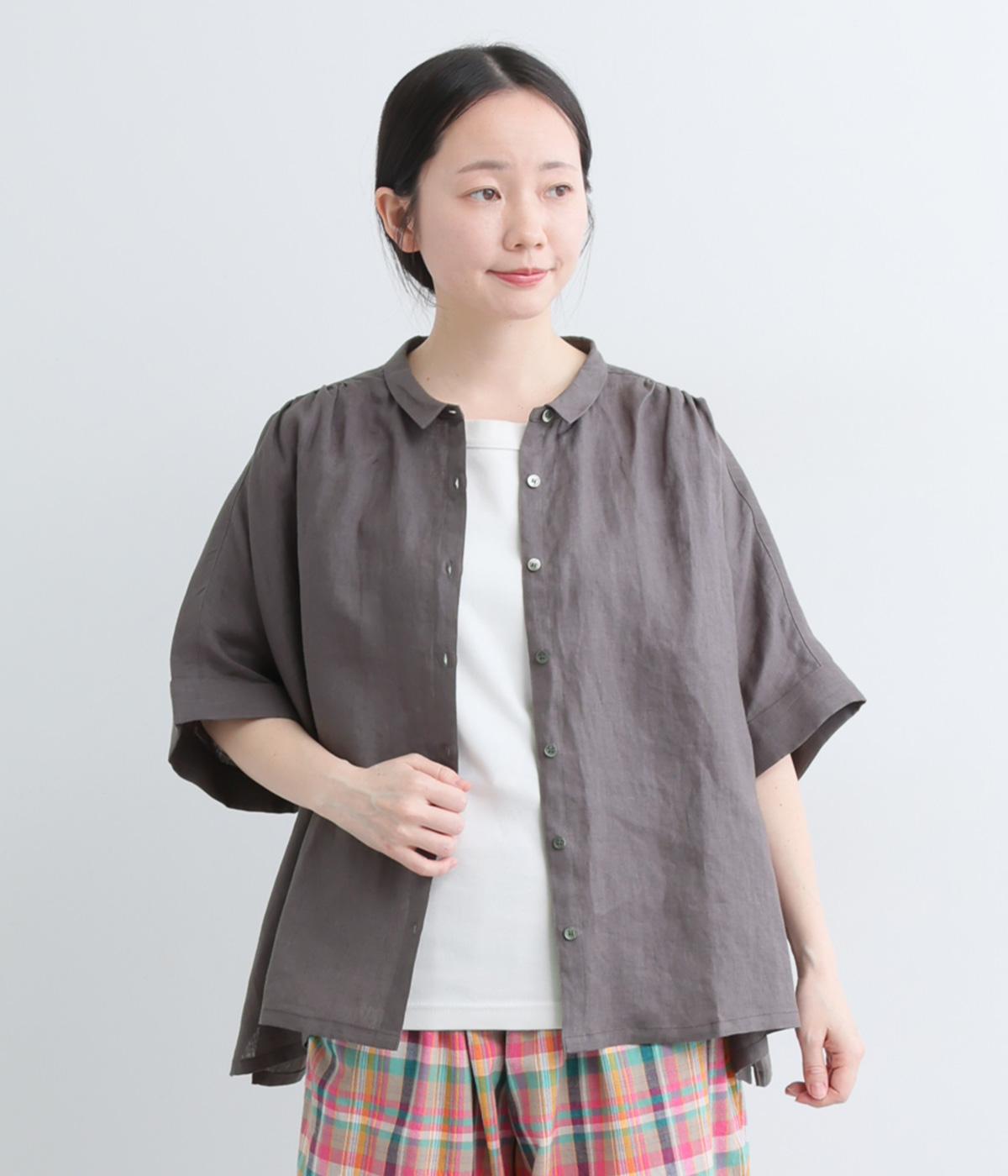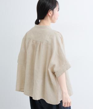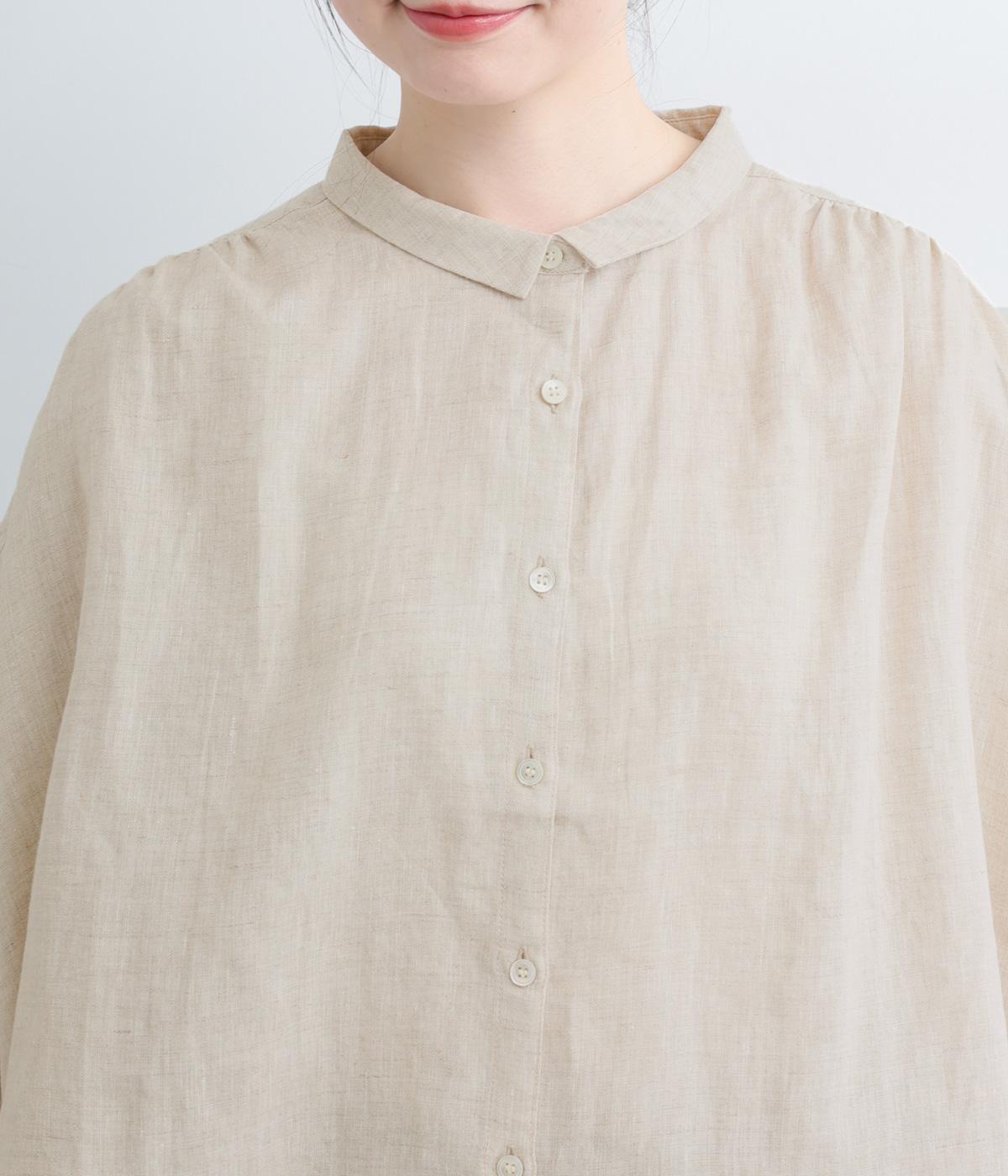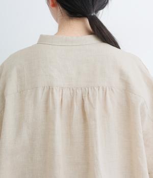 肩や背中に贅沢に寄せたギャザーが装いに華やかさを添え、一枚でサマになるワイドシャツです。ゆったりとした身幅が風をはらみ、ストレスフリーな着心地を叶えます。小ぶりなちび襟が、大人の可愛らしさを引き立てます。