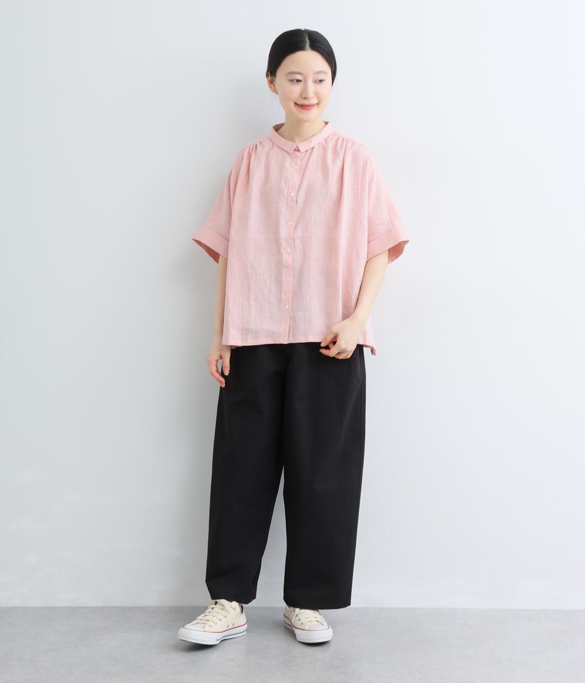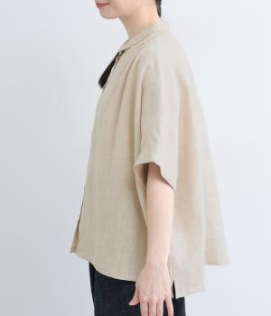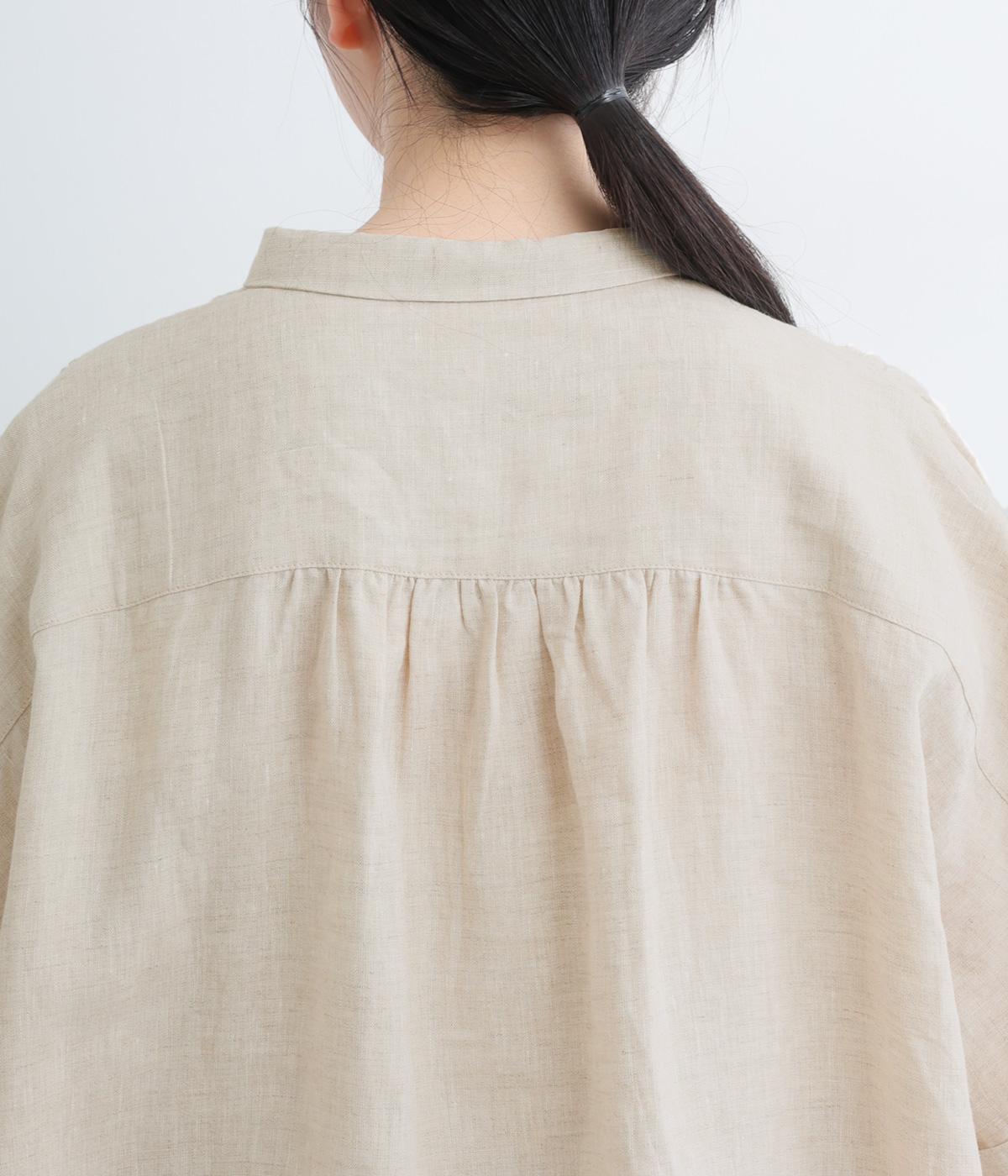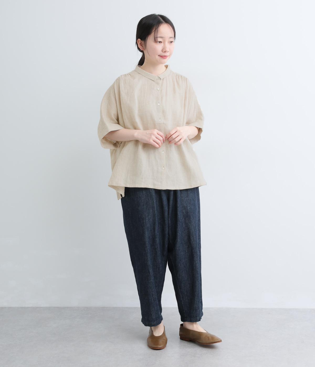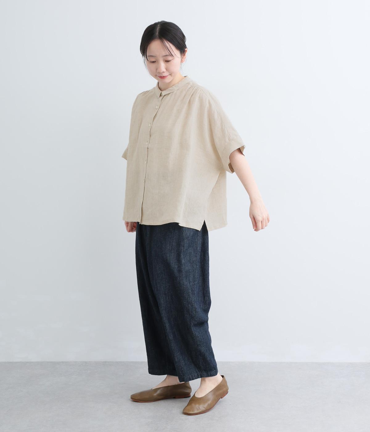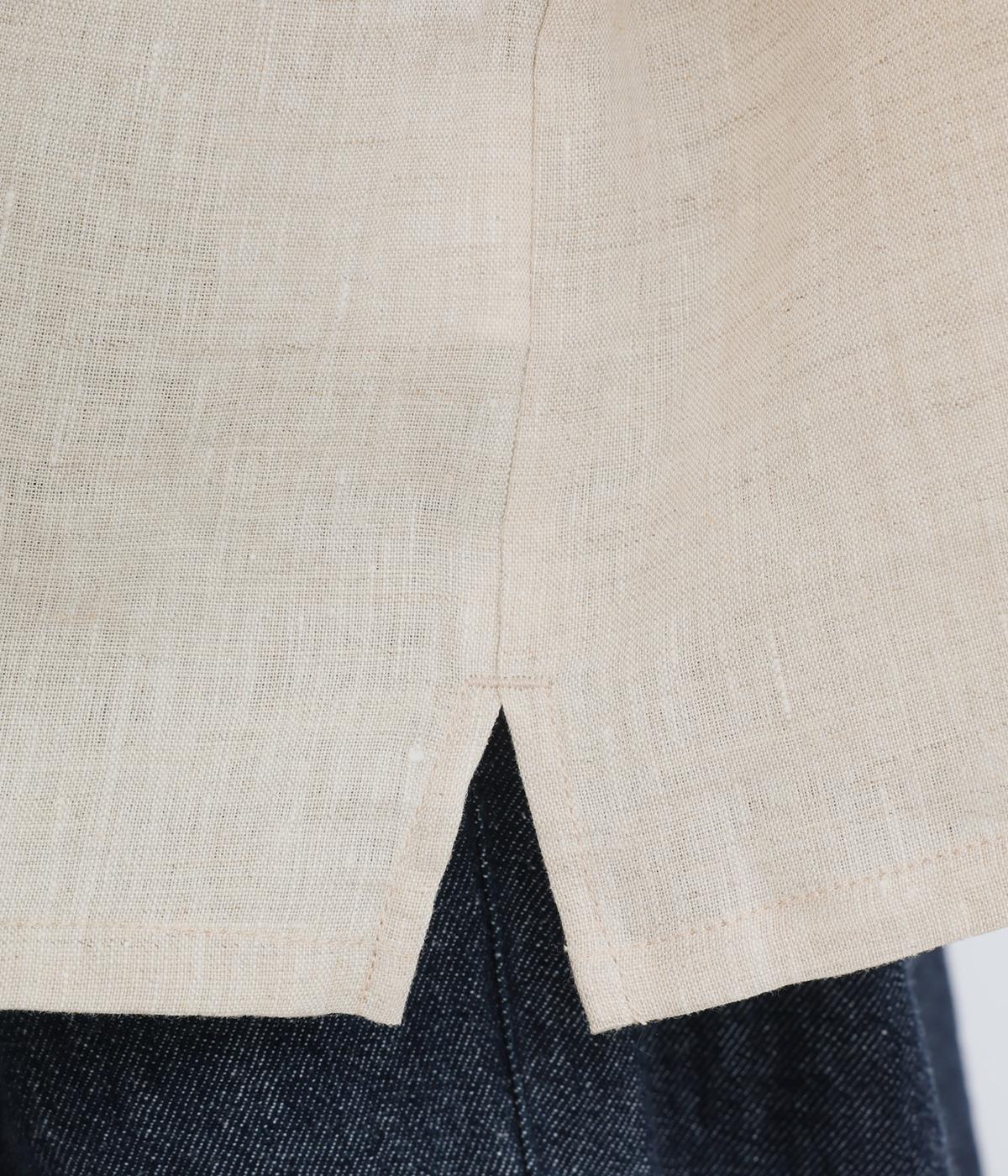 しなやかなハリと適度な厚みを備えたリネン生地を使用しています。通気性がよく、ロングシーズン着用できる素材感です。洗うたびに柔らかく豊かな風合いへと変化するのも魅力です。