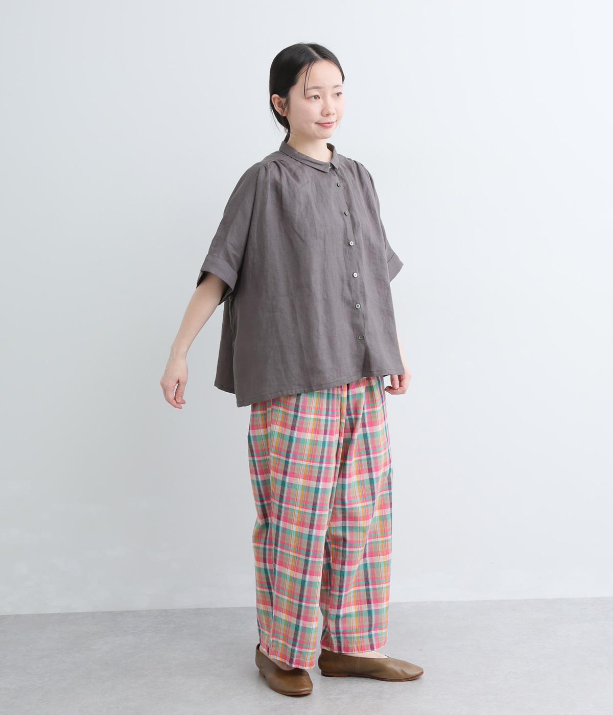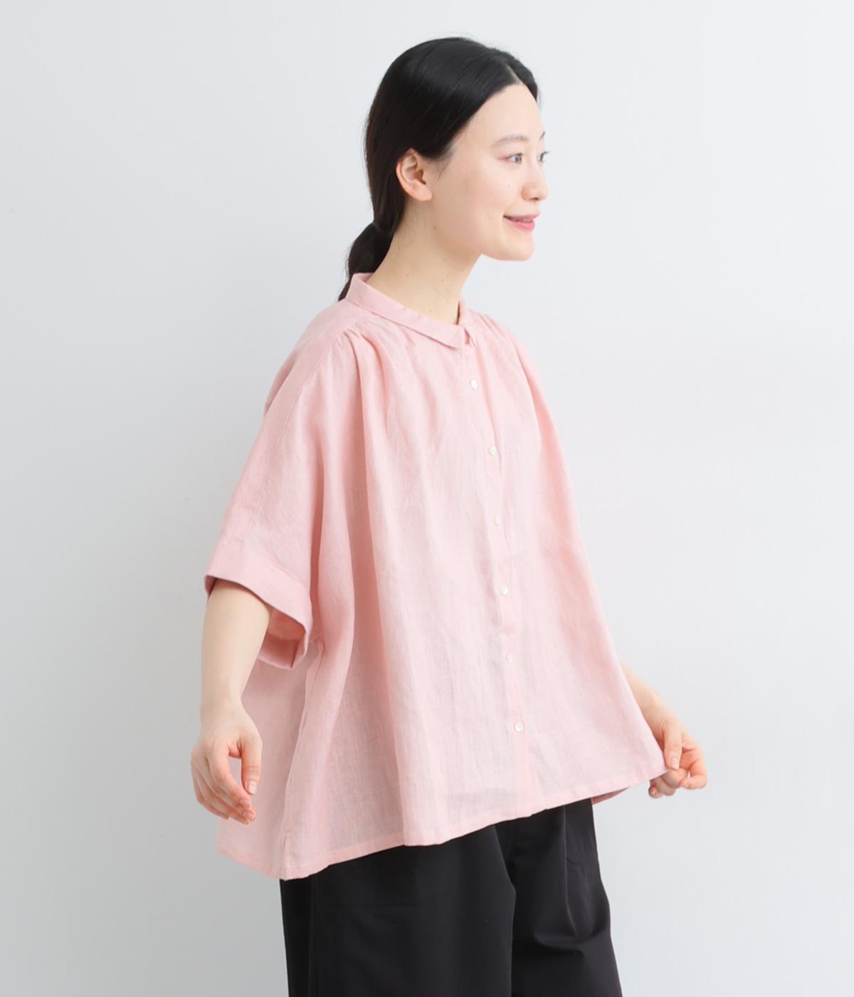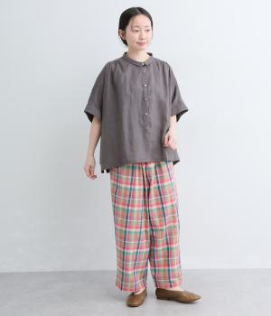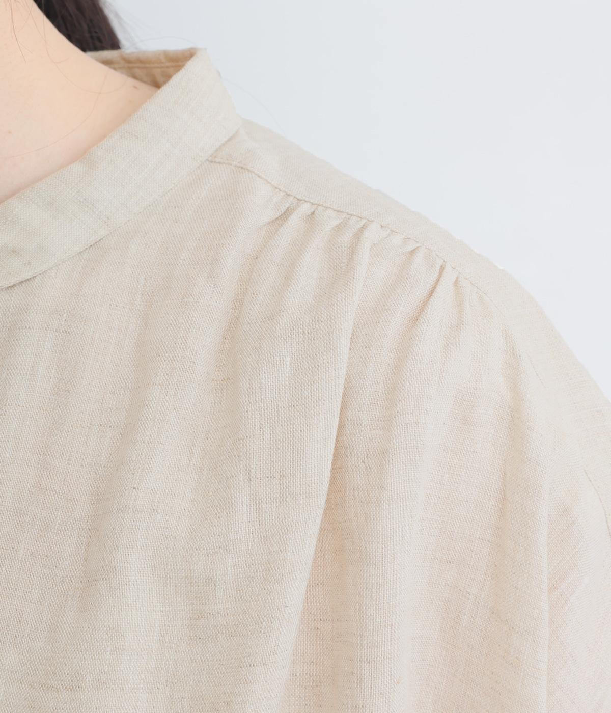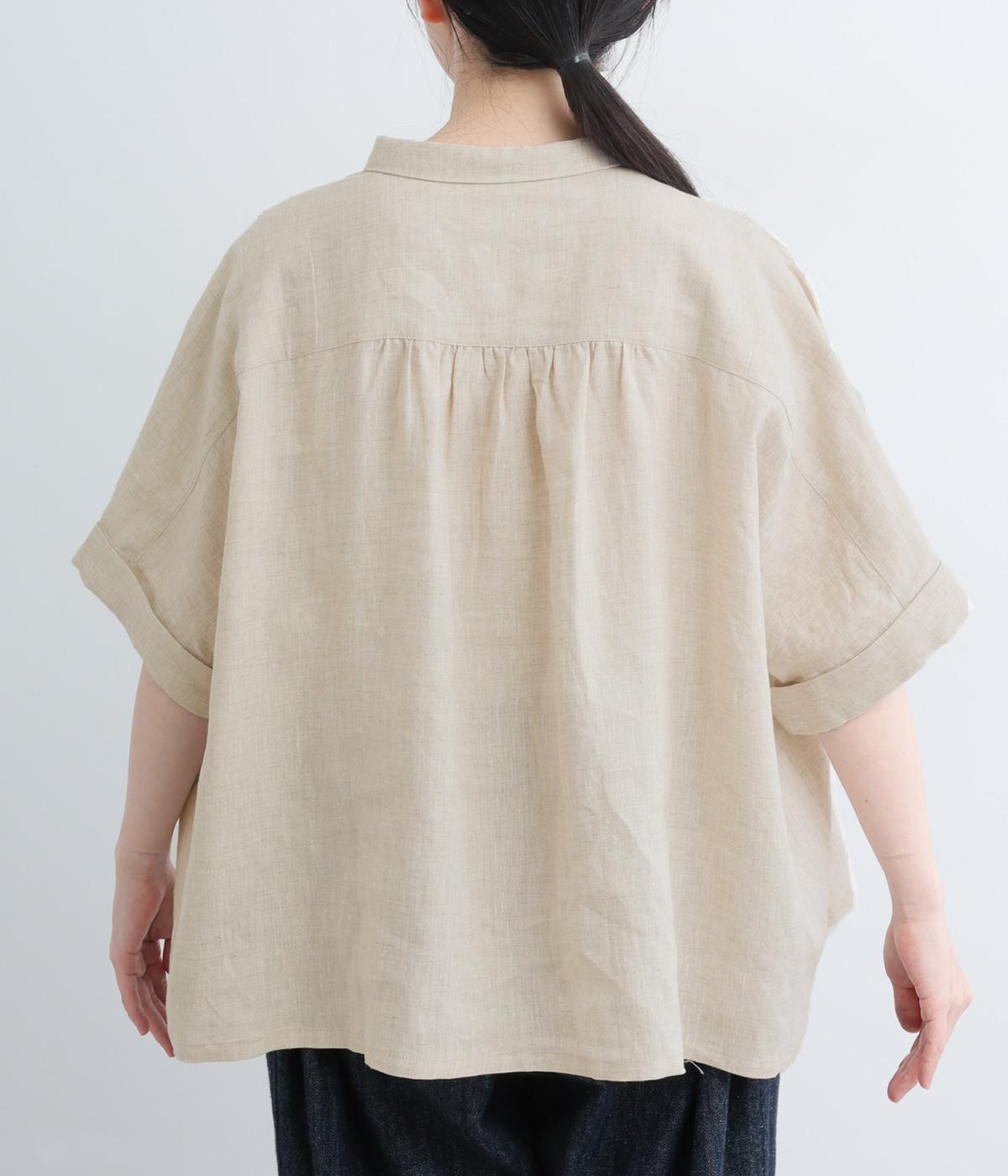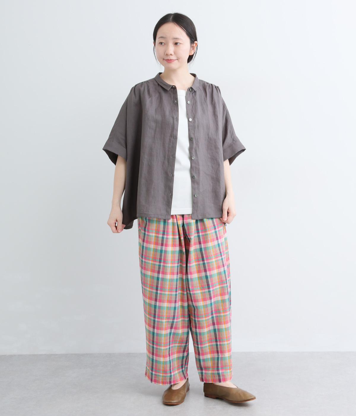 しなやかなハリと適度な厚みを備えたリネン生地を使用しています。通気性がよく、ロングシーズン着用できる素材感です。洗うたびに柔らかく豊かな風合いへと変化するのも魅力です。