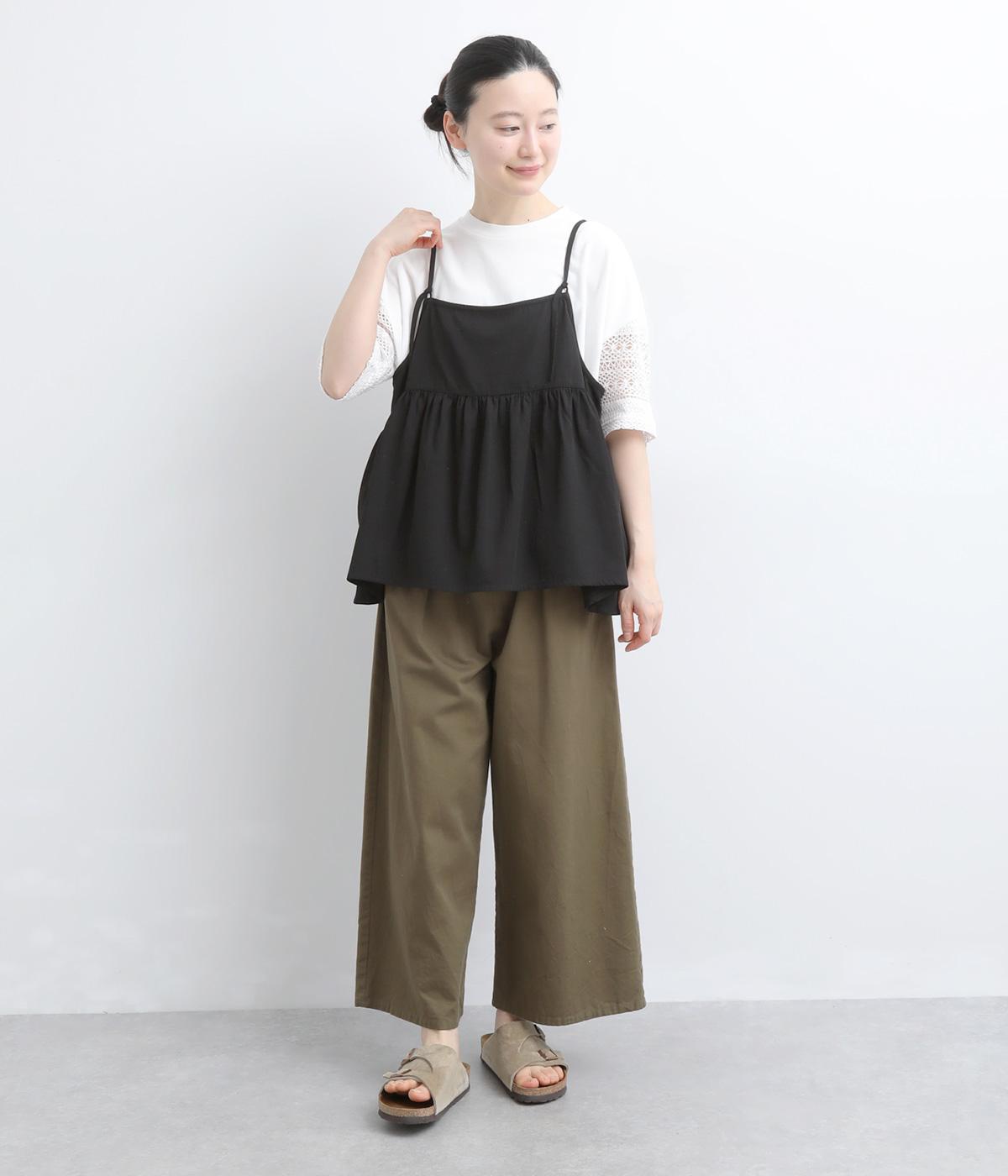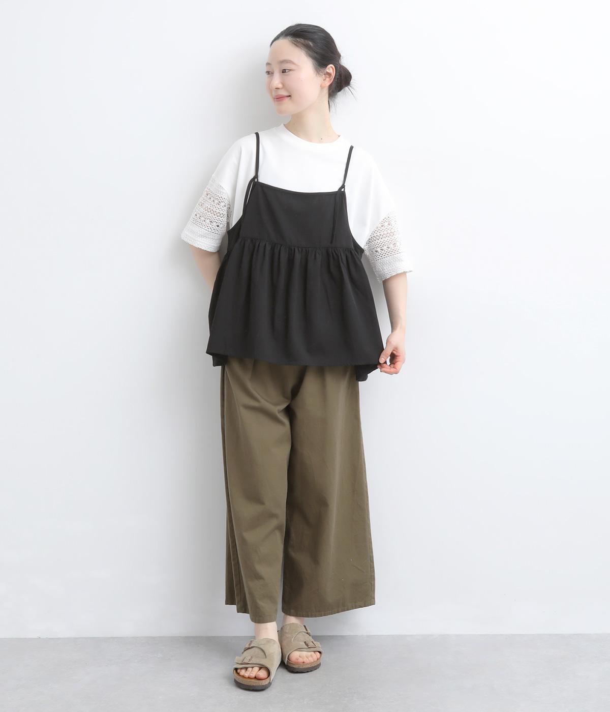 コットン天竺襟レースギャザータンクトップ