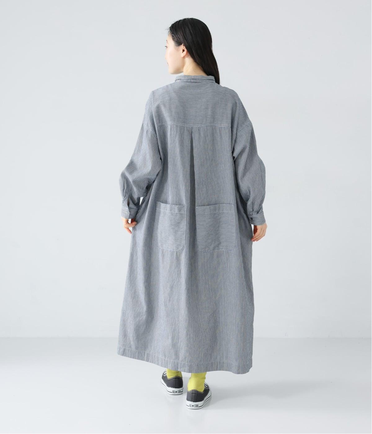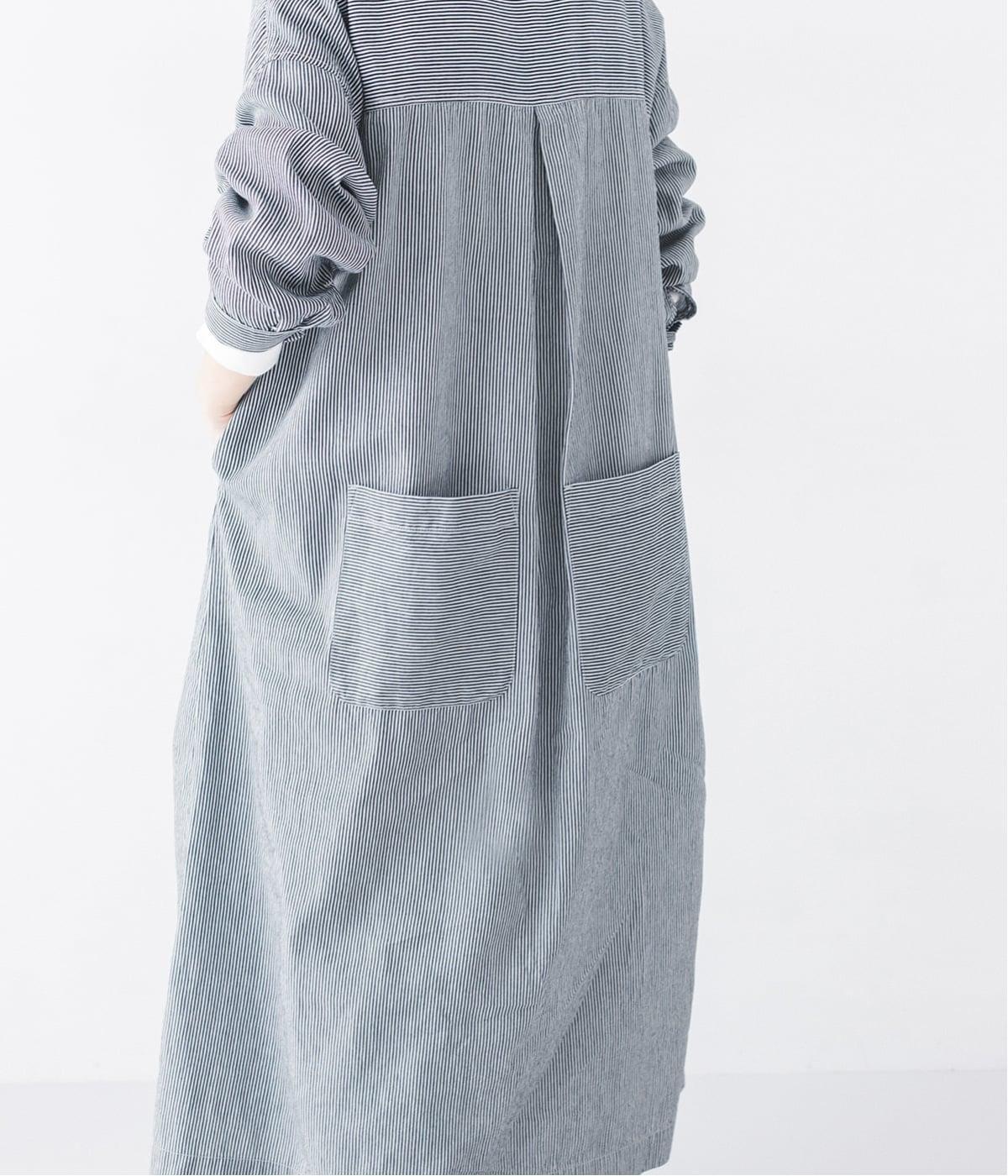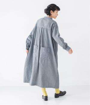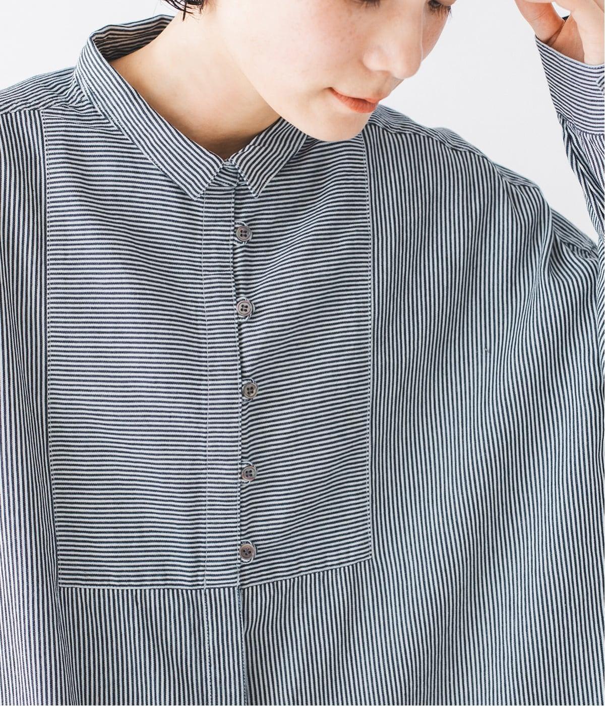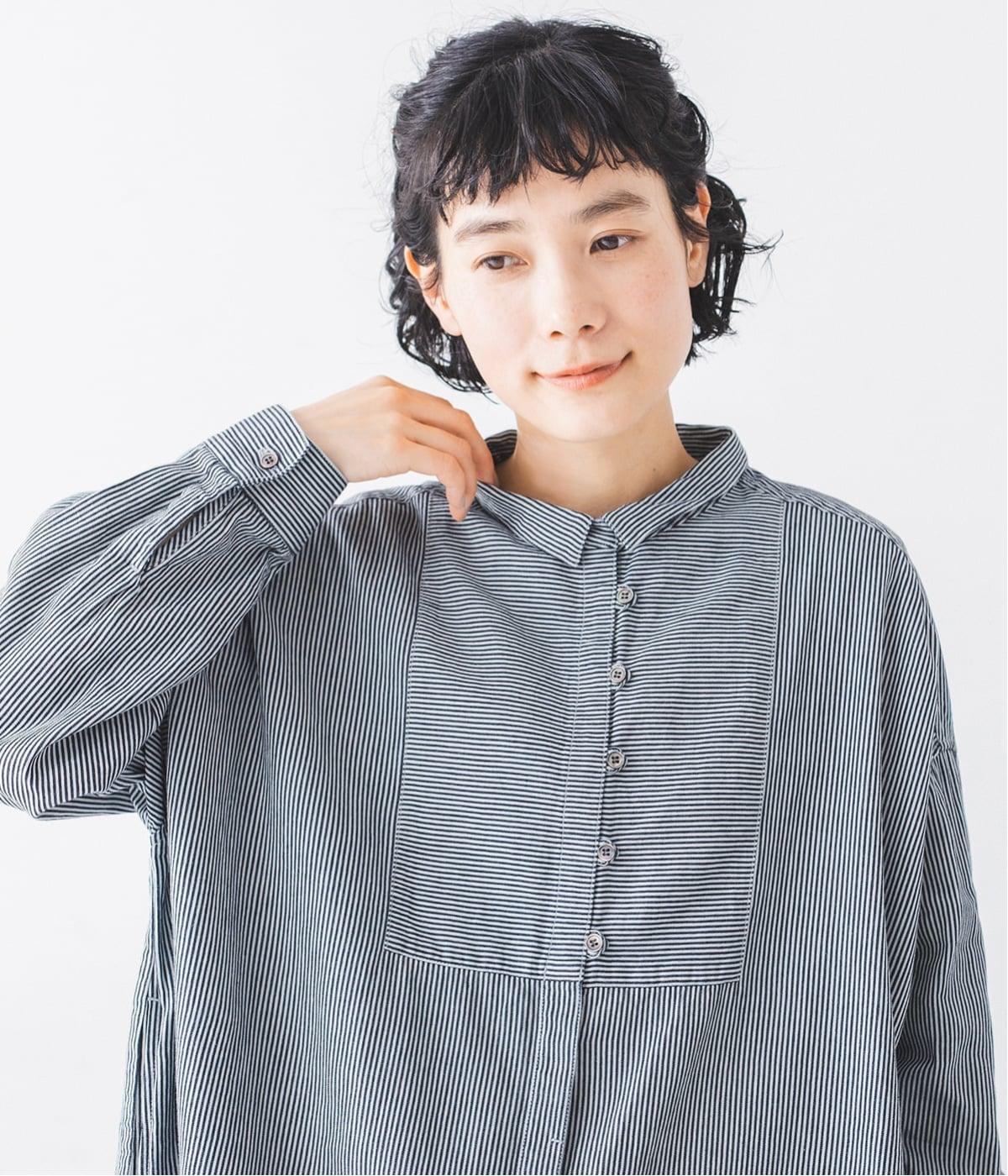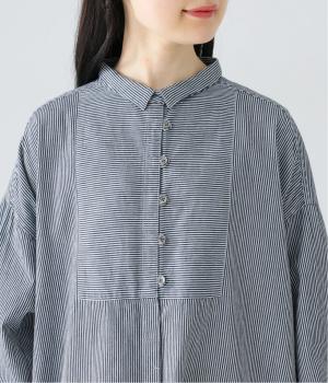 ヒッコリーとは、紺地に白のストライプ柄が入ったデニム生地のこと。今回はコットン100%のライトオンスデニムを使用しています。見た目に反してごわつきが少なく軽やかで、快適な着心地の一枚です。