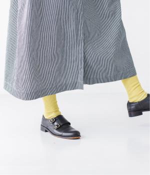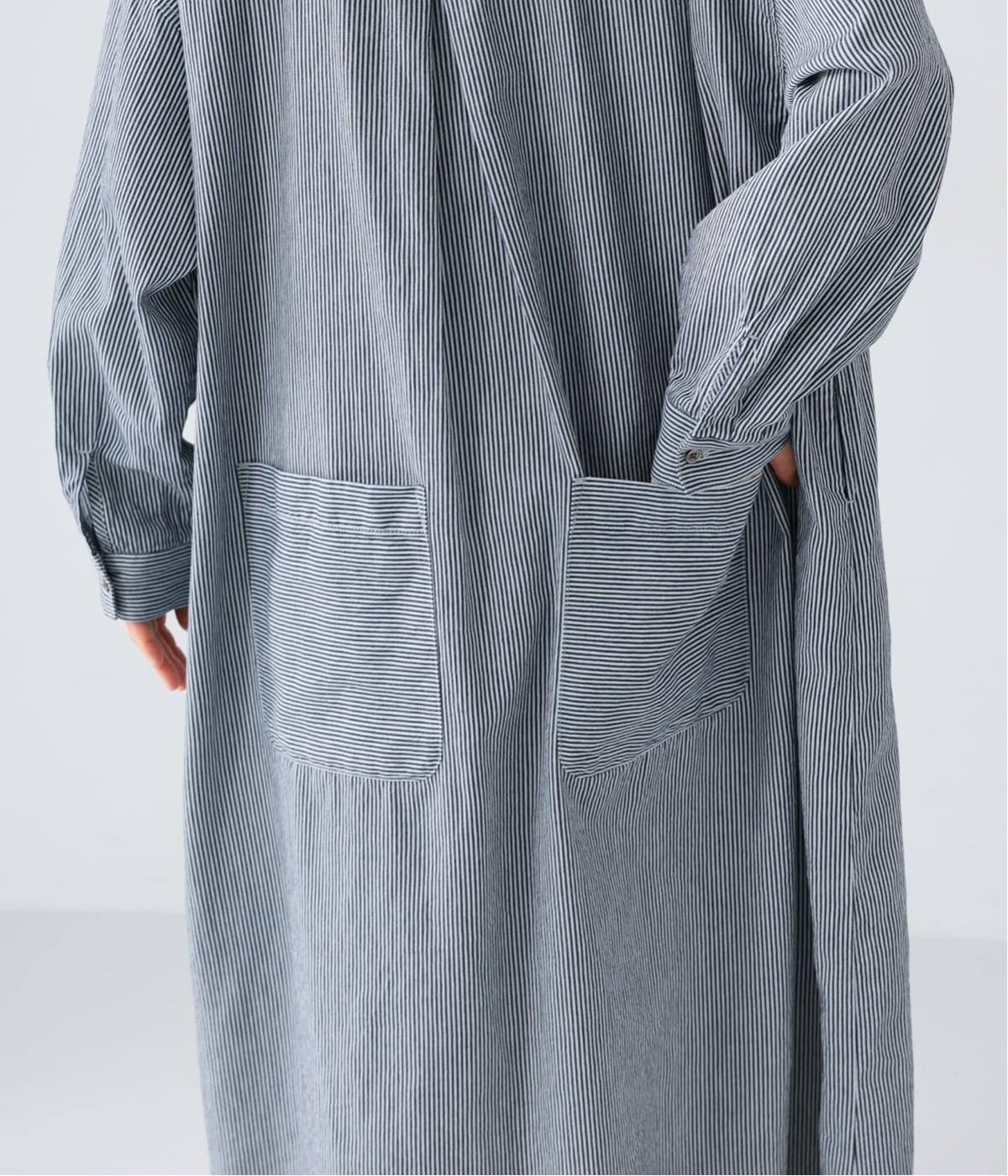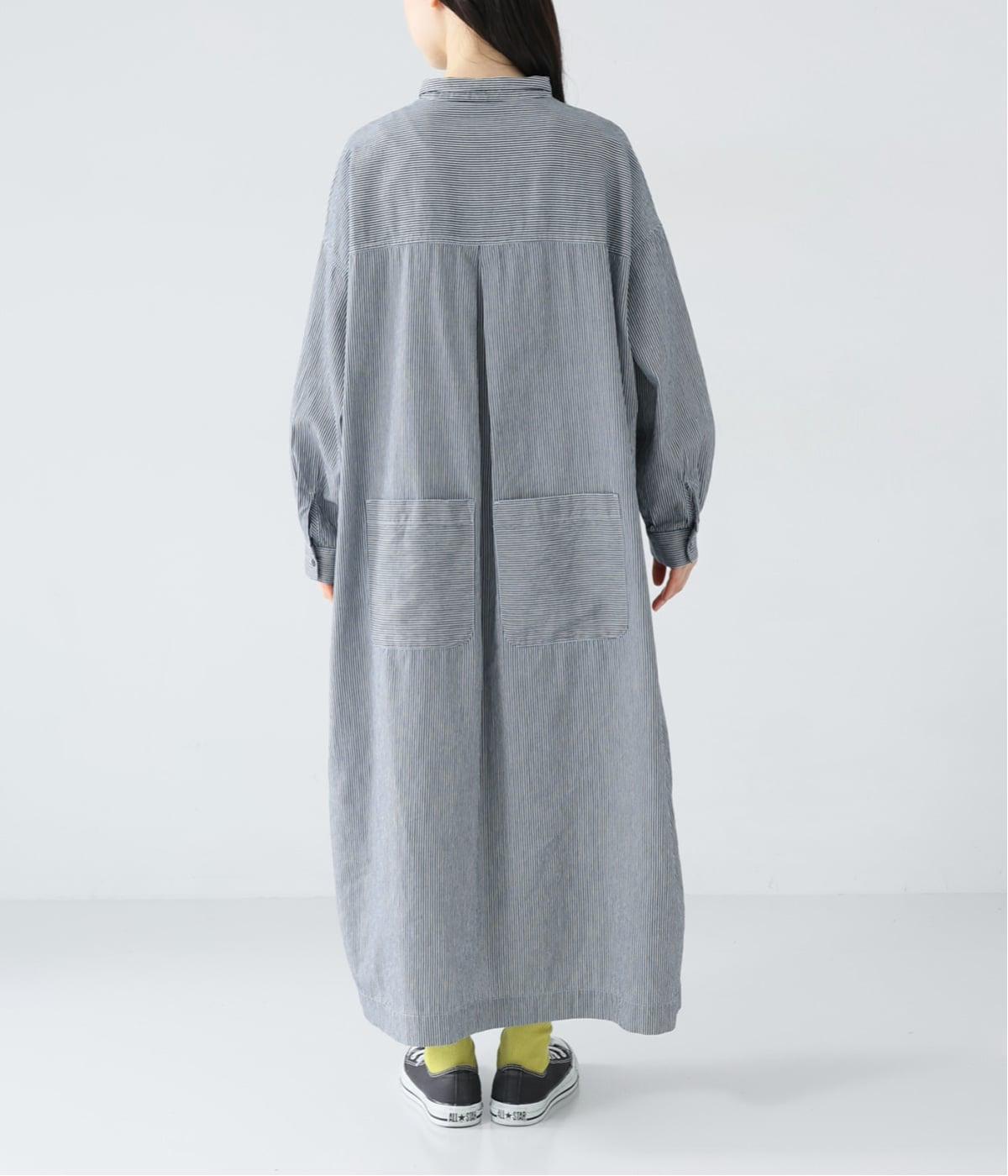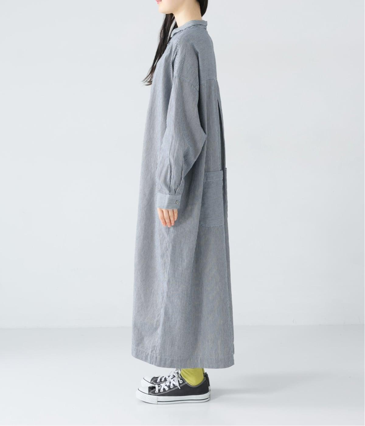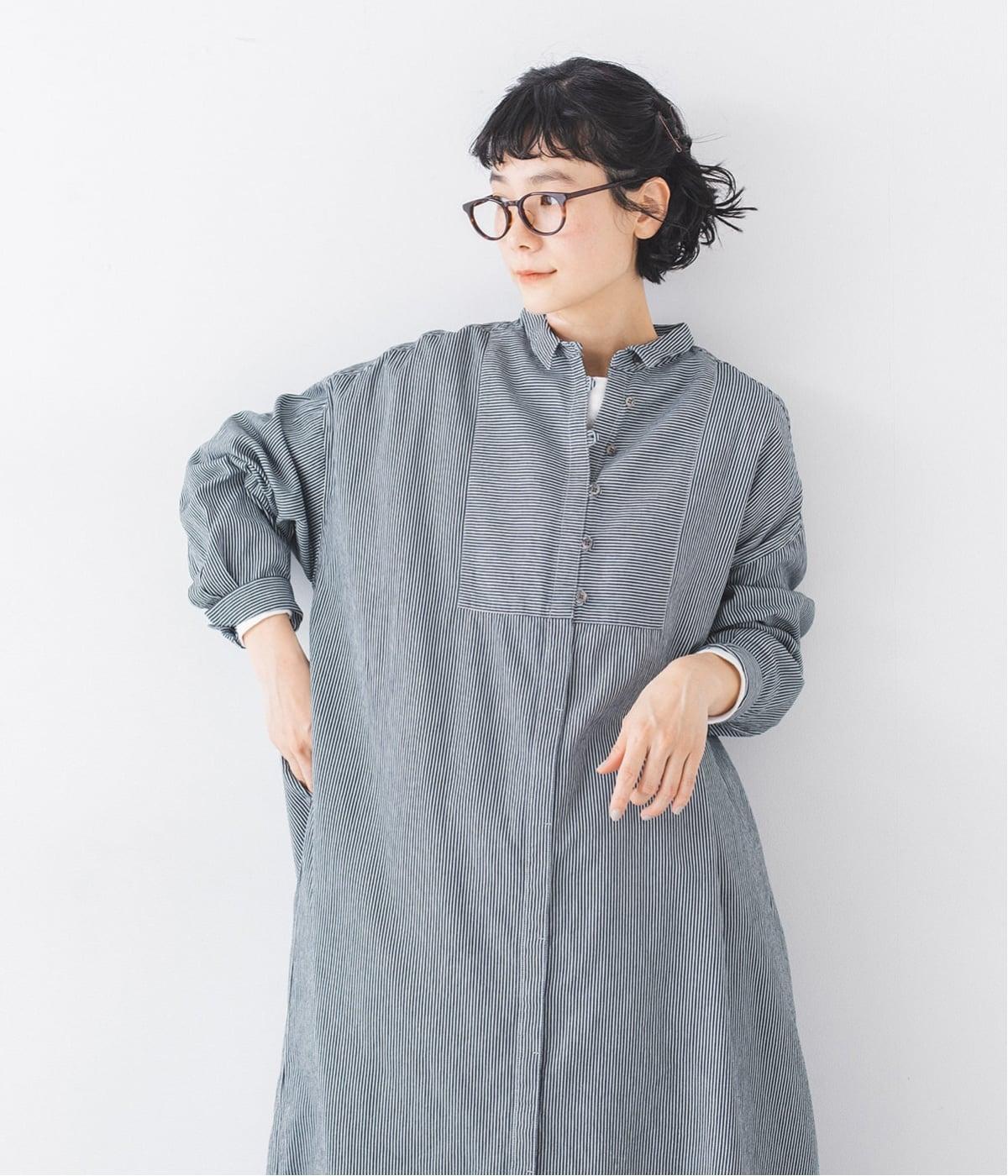 ヒッコリーとは、紺地に白のストライプ柄が入ったデニム生地のこと。今回はコットン100%のライトオンスデニムを使用しています。見た目に反してごわつきが少なく軽やかで、快適な着心地の一枚です。