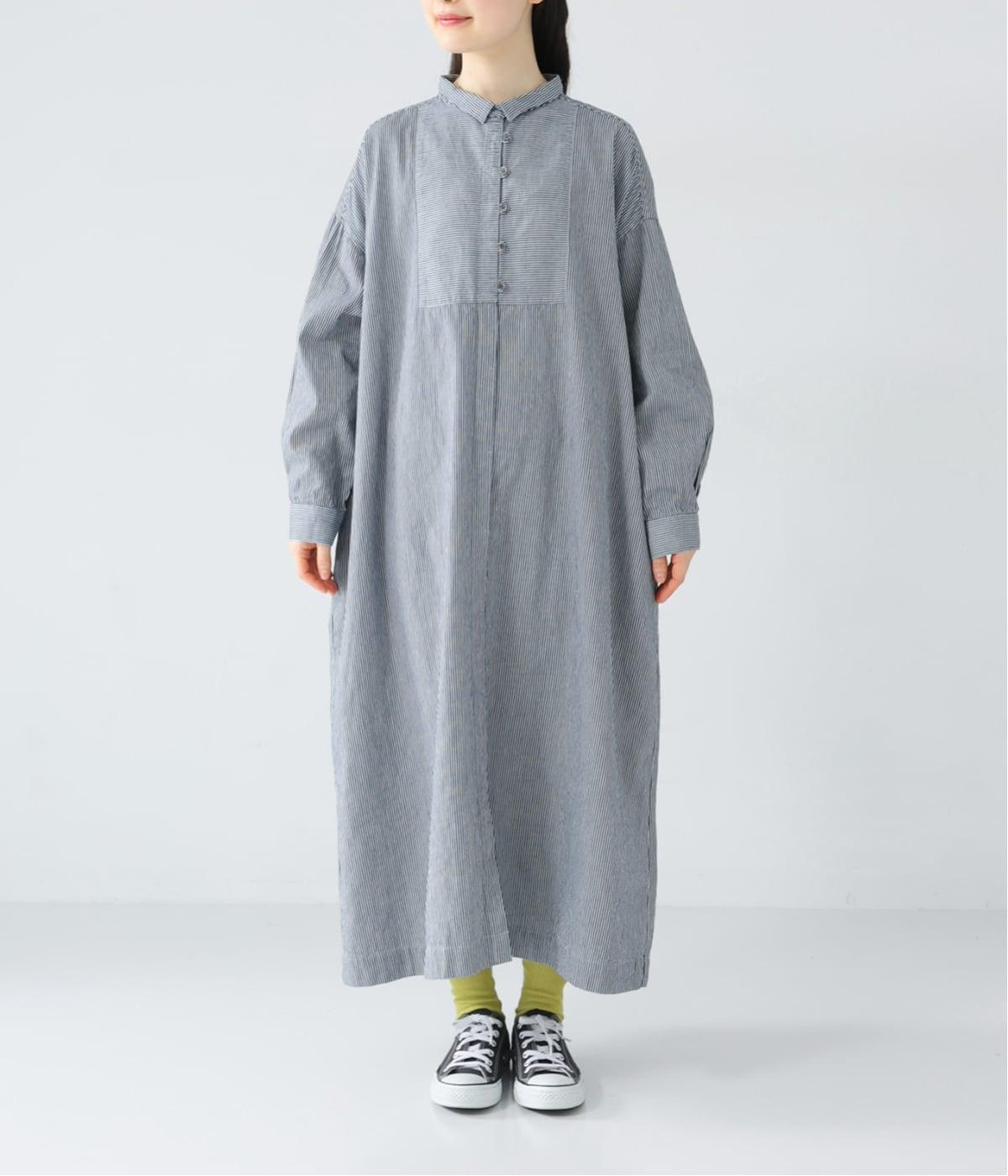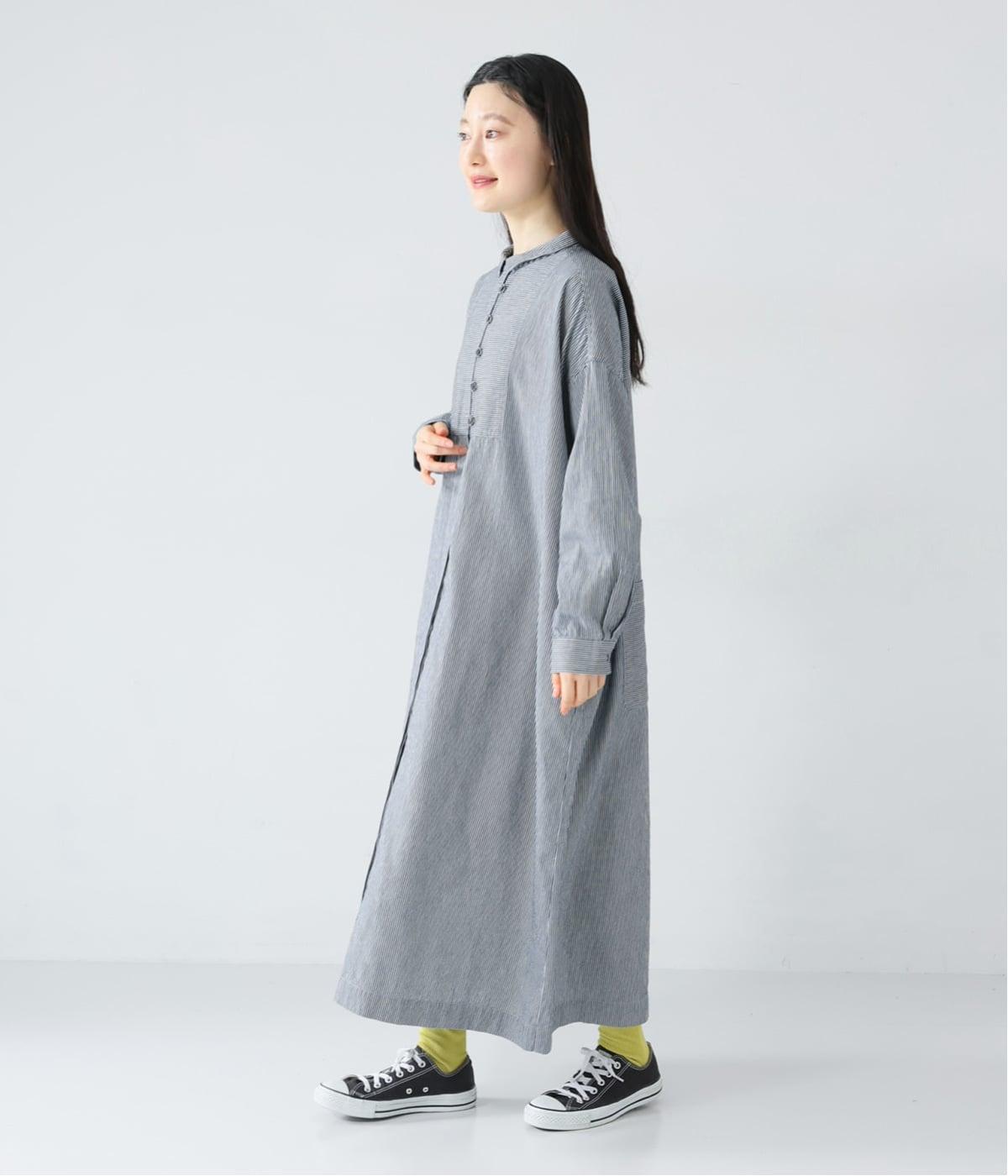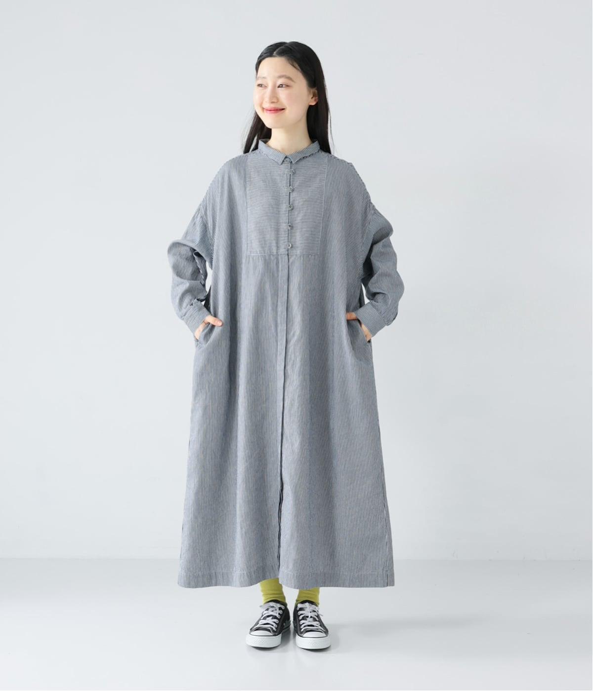 さらっと着るだけでサマになる主役級ワンピース。ストライプ柄が縦のラインを引き立て、自然とすっきりとした印象に導きます。