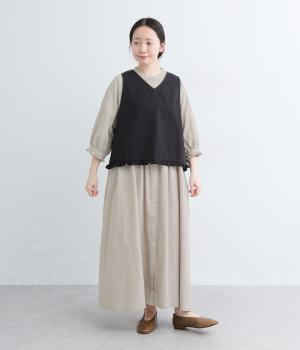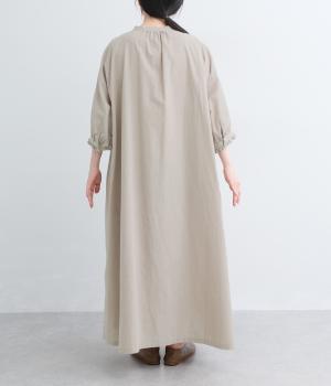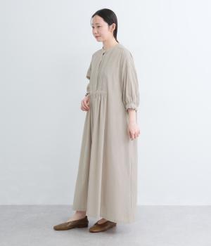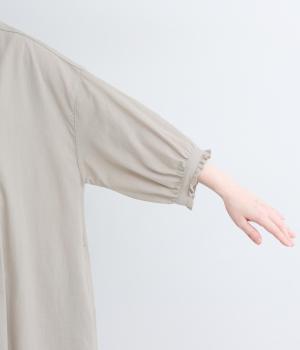 サンドウォッシュ加工による独特な風合いのコットン生地。麻のようなシャリ感とネップが特徴です。しなやかでいて、さらりと涼やかな肌ざわりが日常に心地よさを運びます。