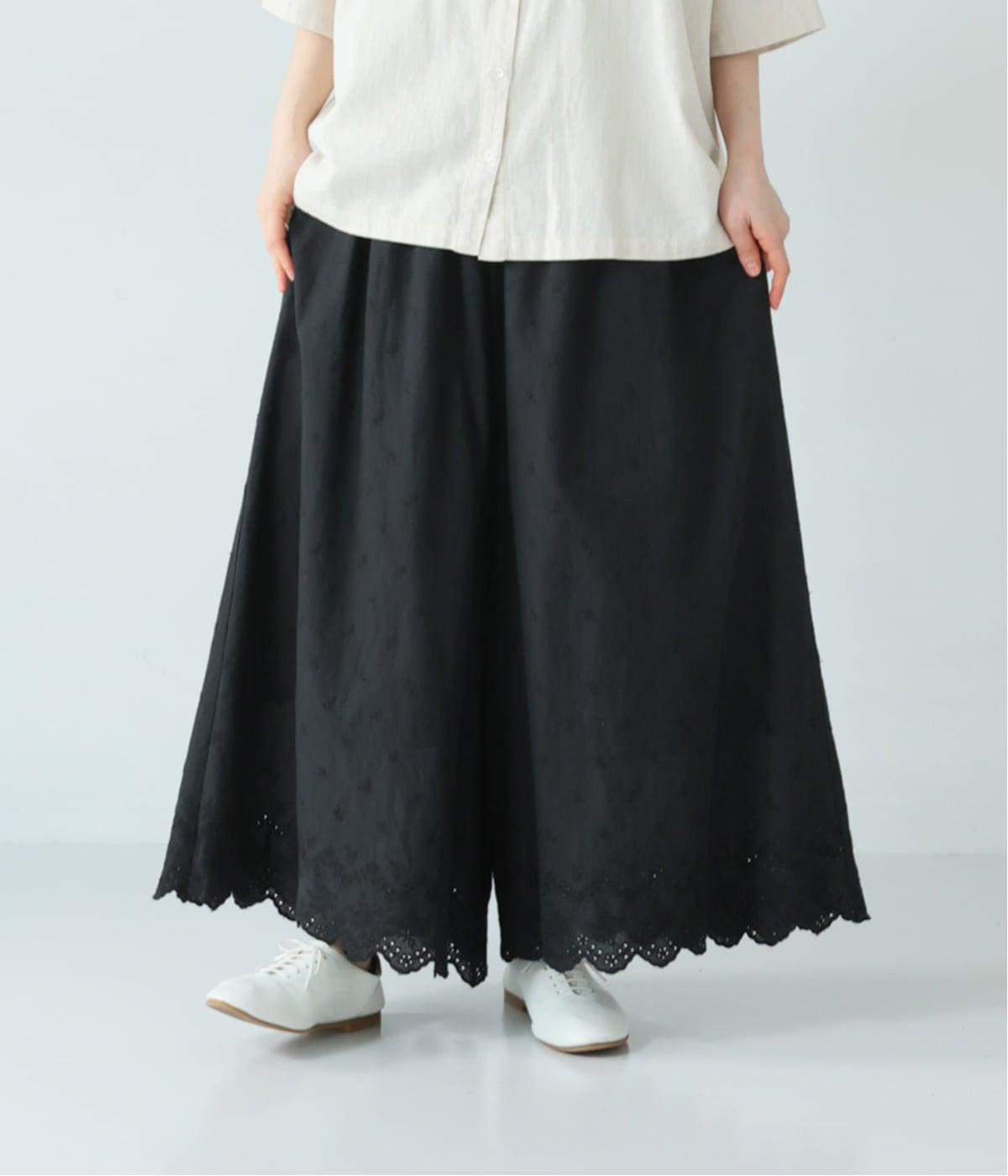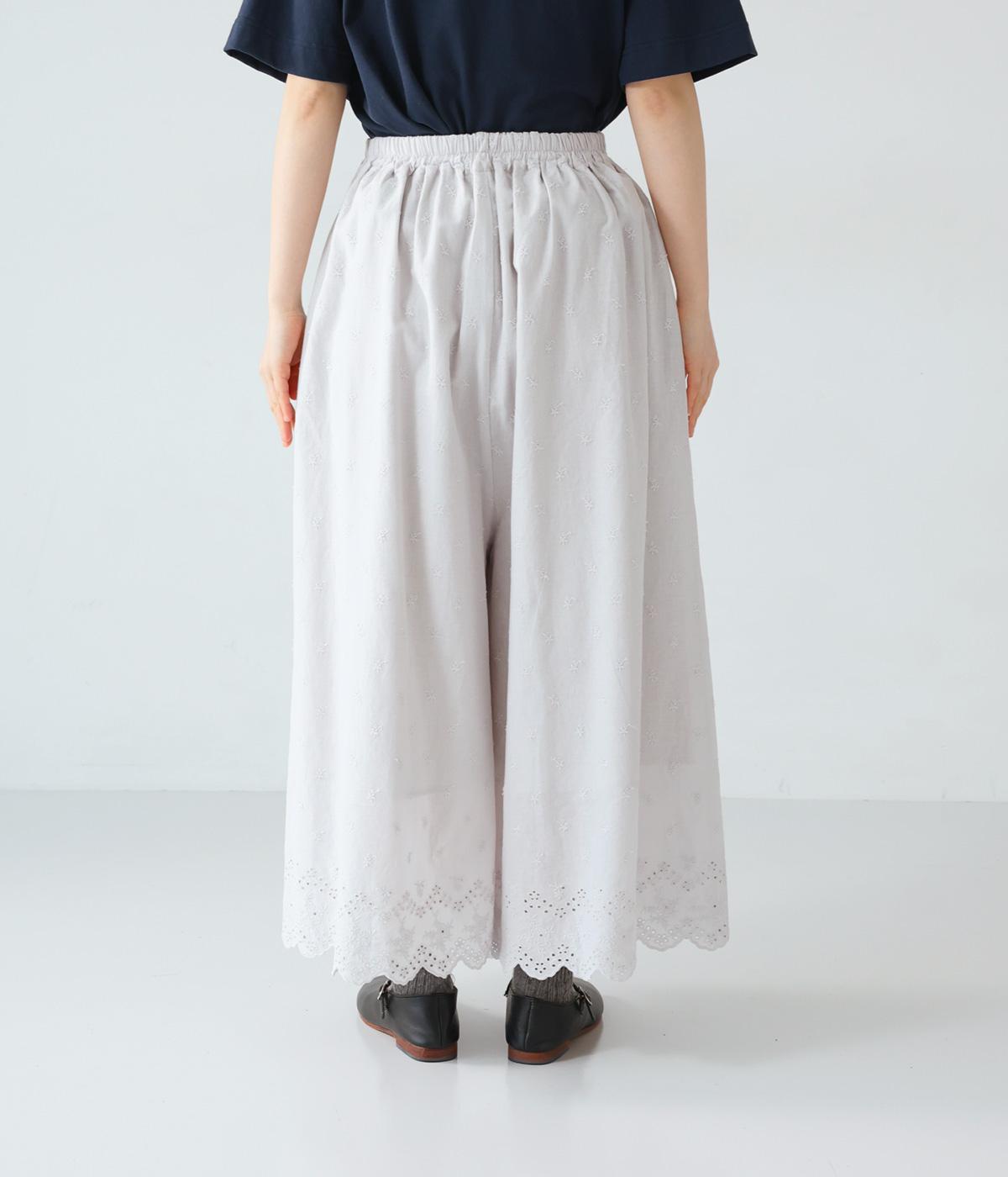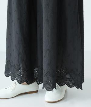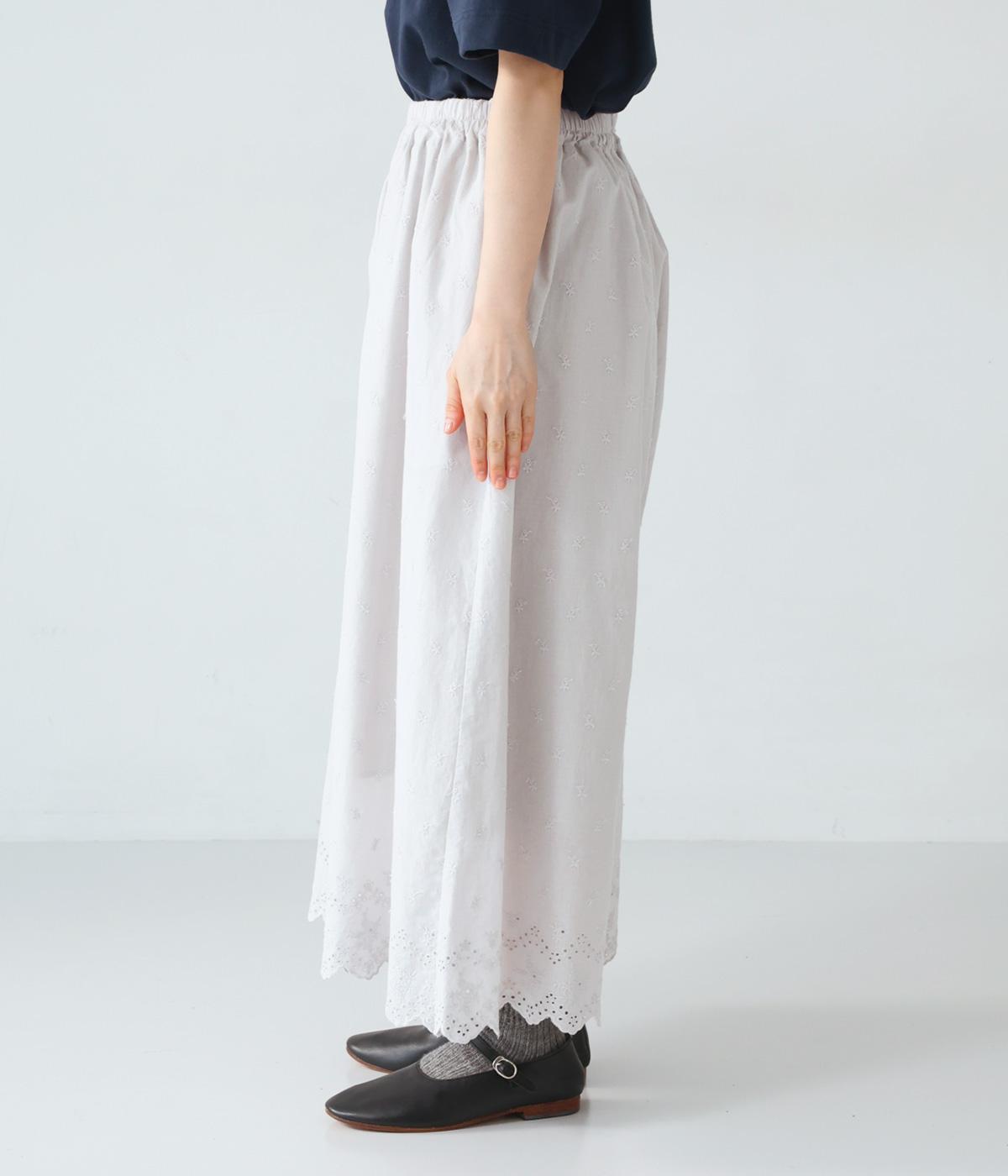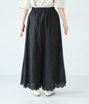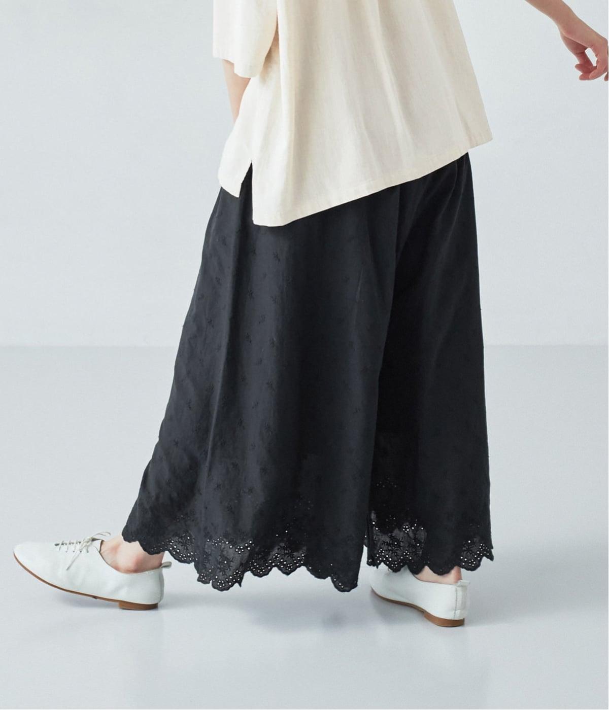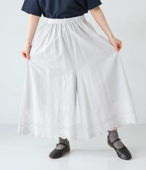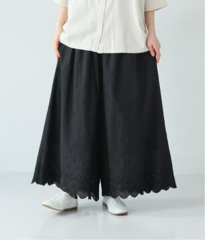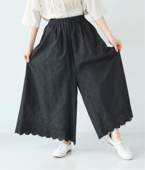 コットンリネンスカラップ刺繍9分丈ワイドパンツ