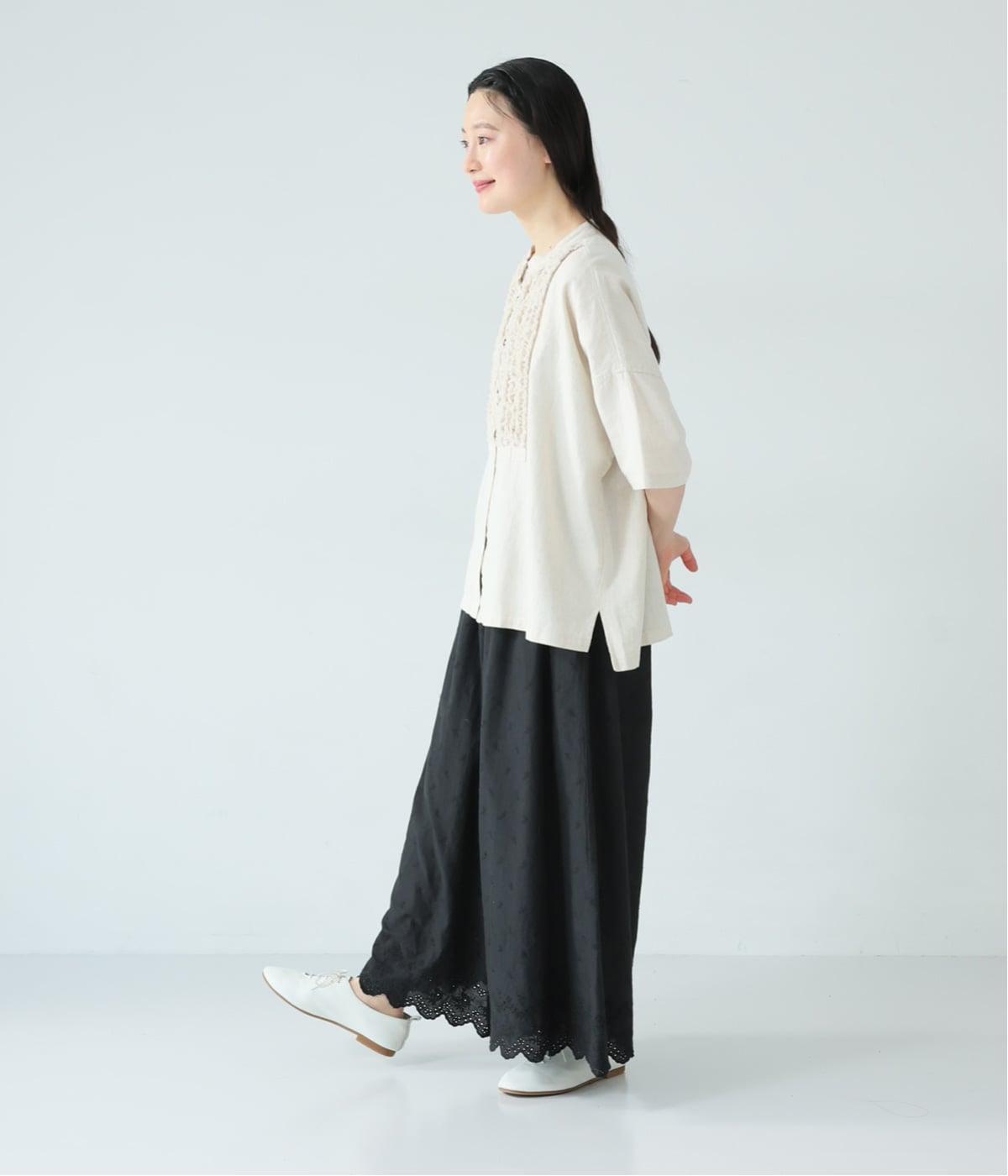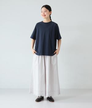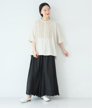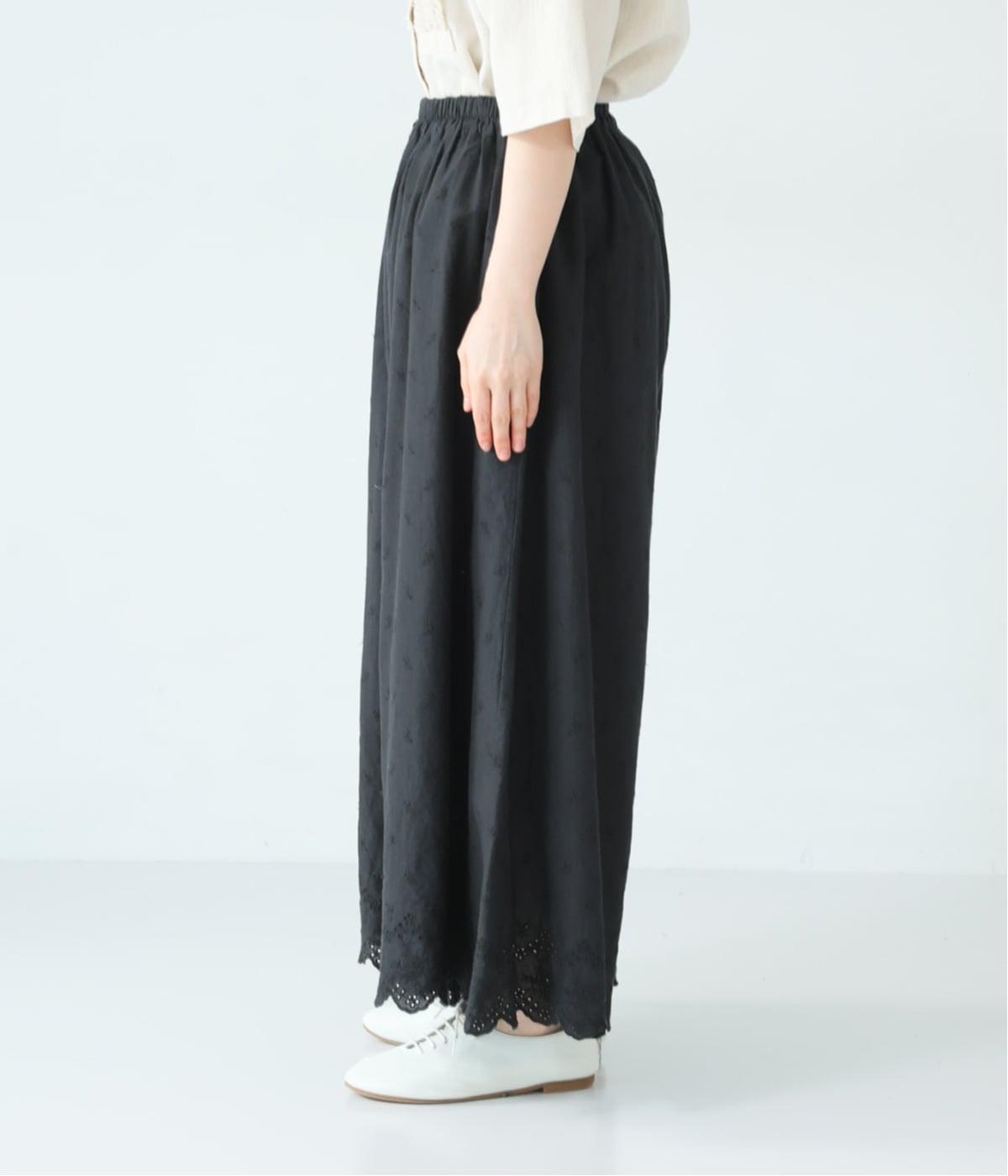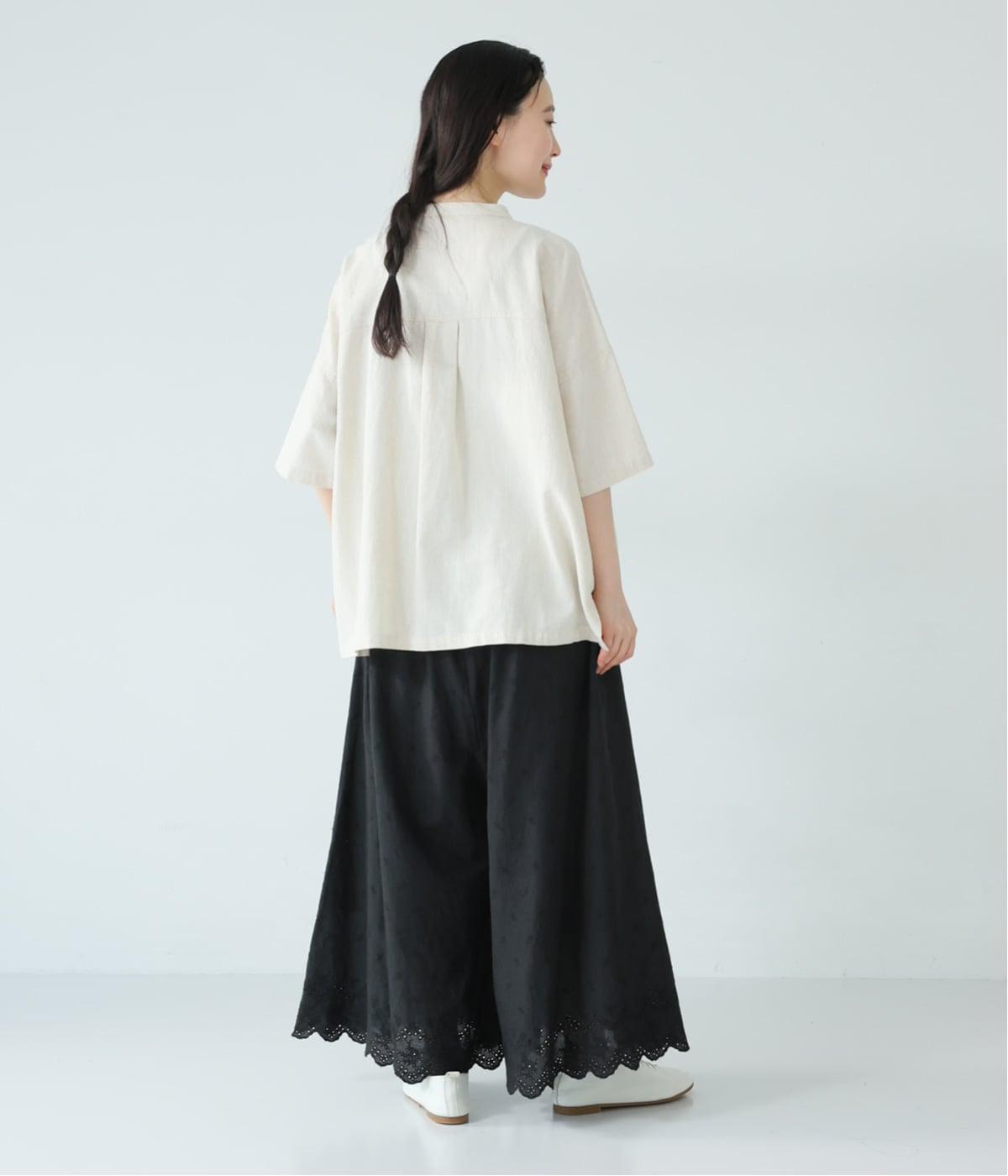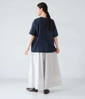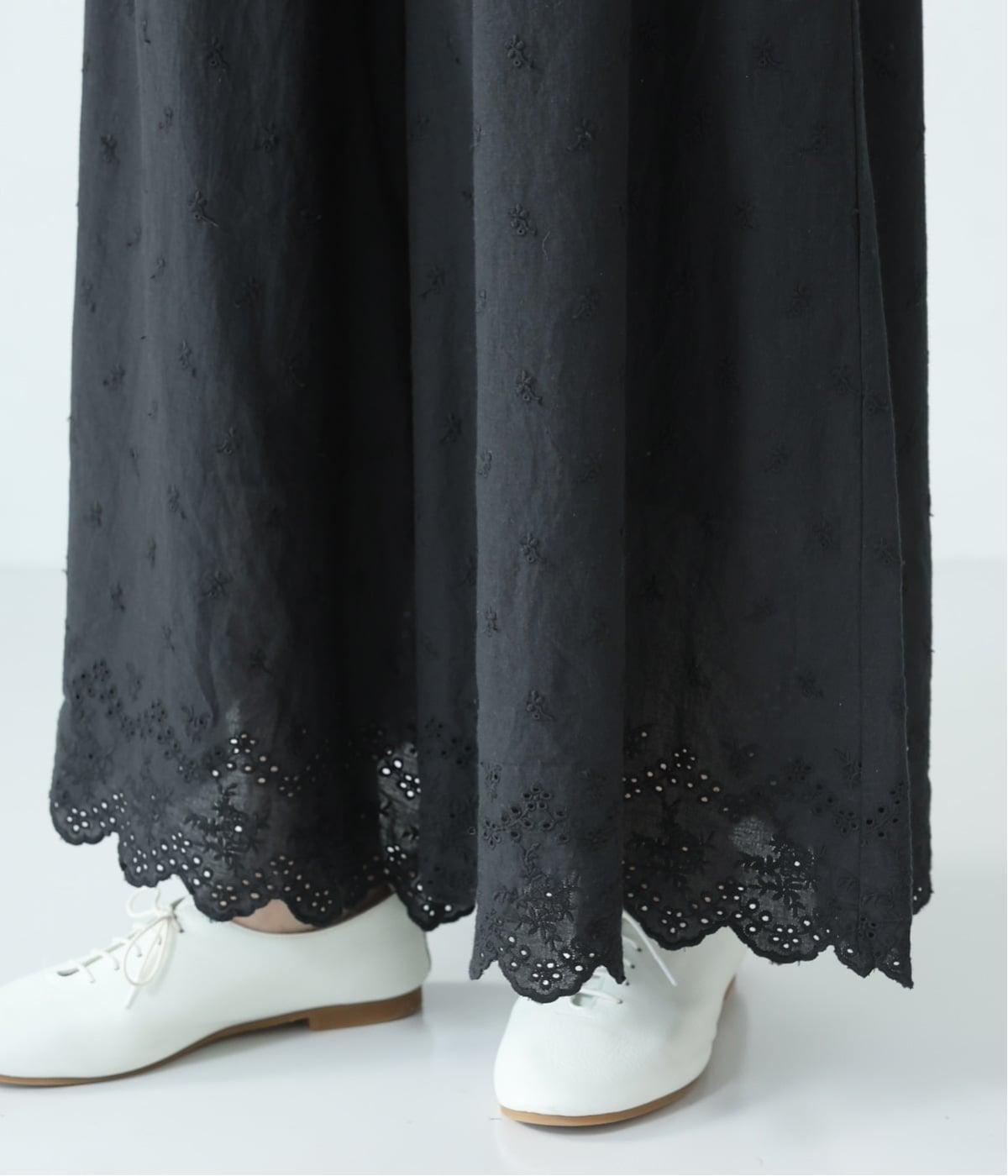 コットンリネンスカラップ刺繍9分丈ワイドパンツ