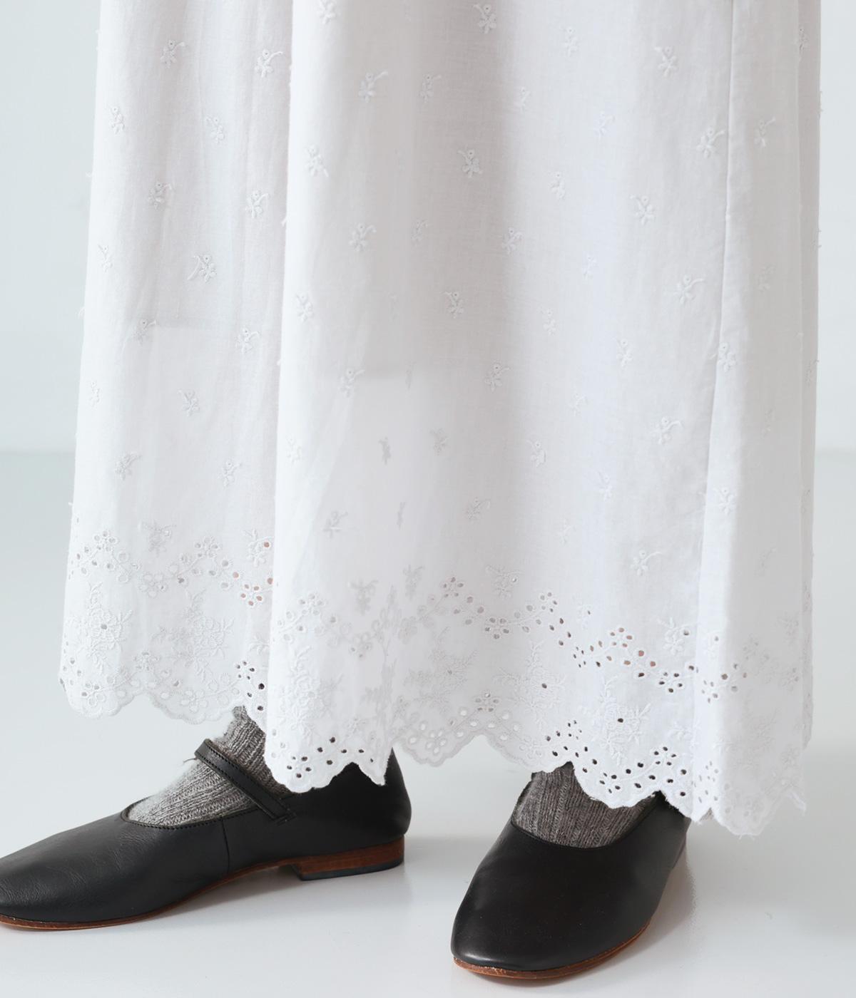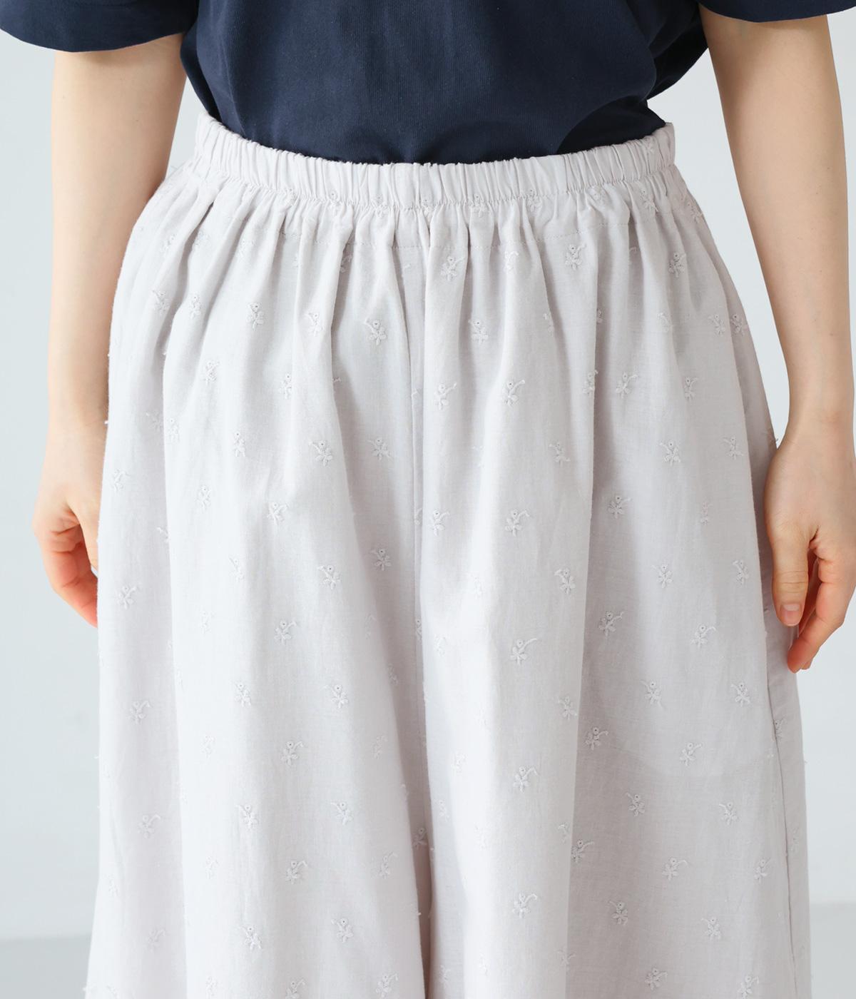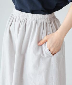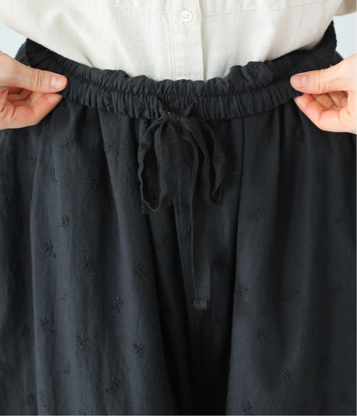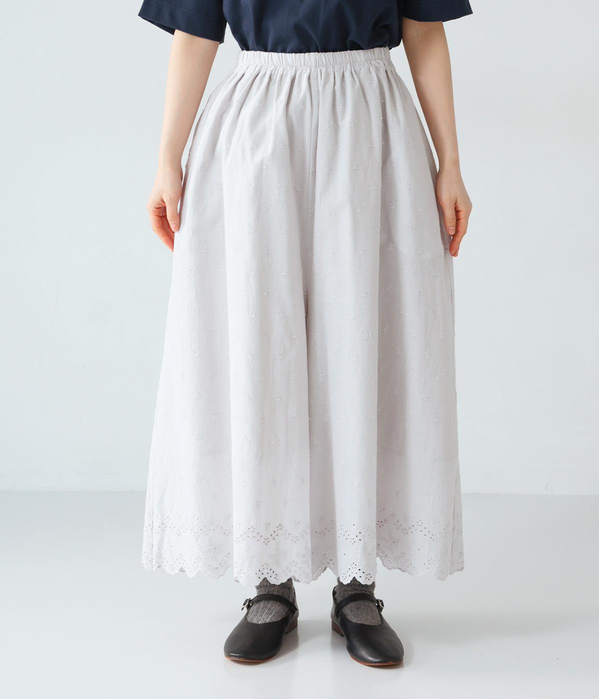 コットンリネンスカラップ刺繍9分丈ワイドパンツ