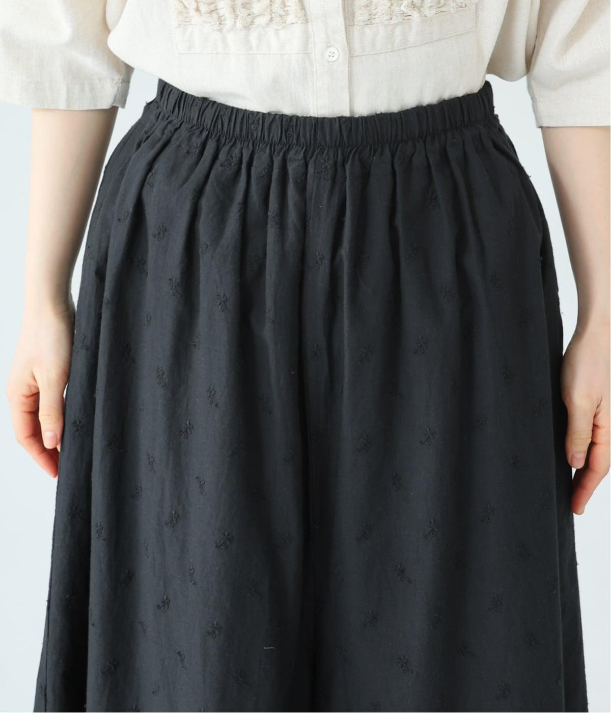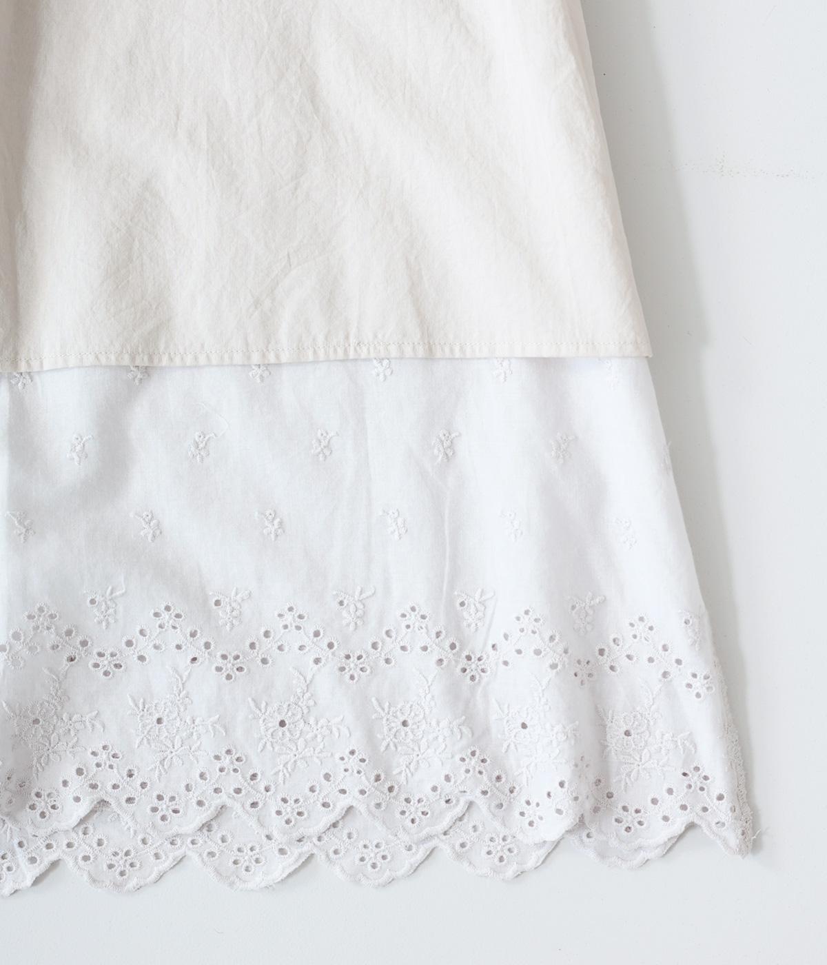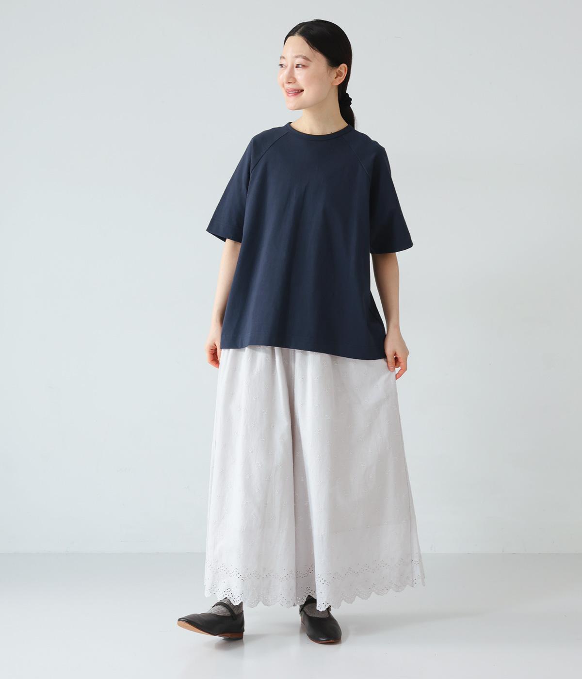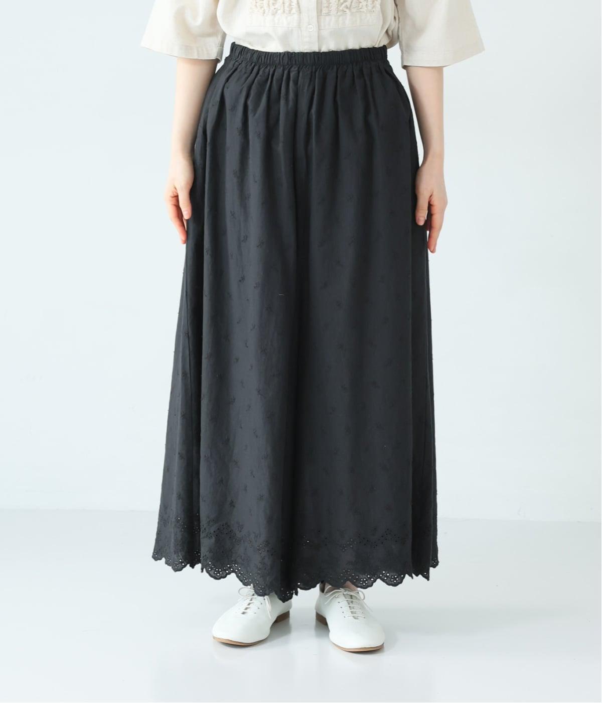 コットンリネンスカラップ刺繍9分丈ワイドパンツ