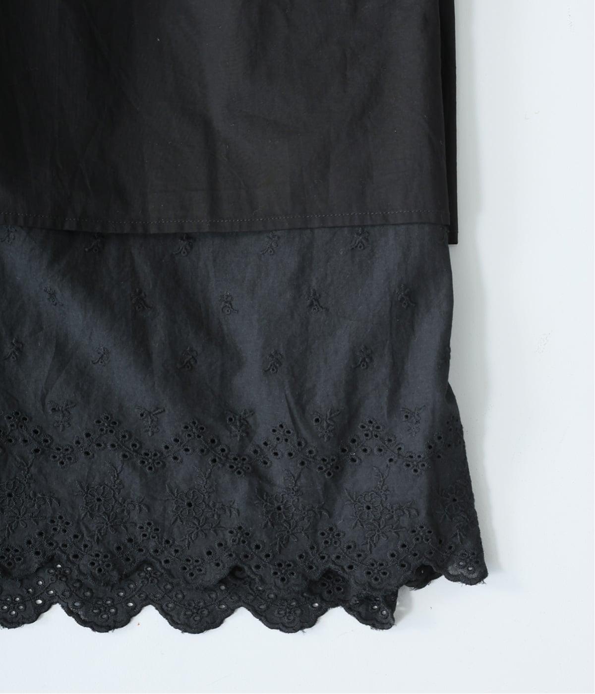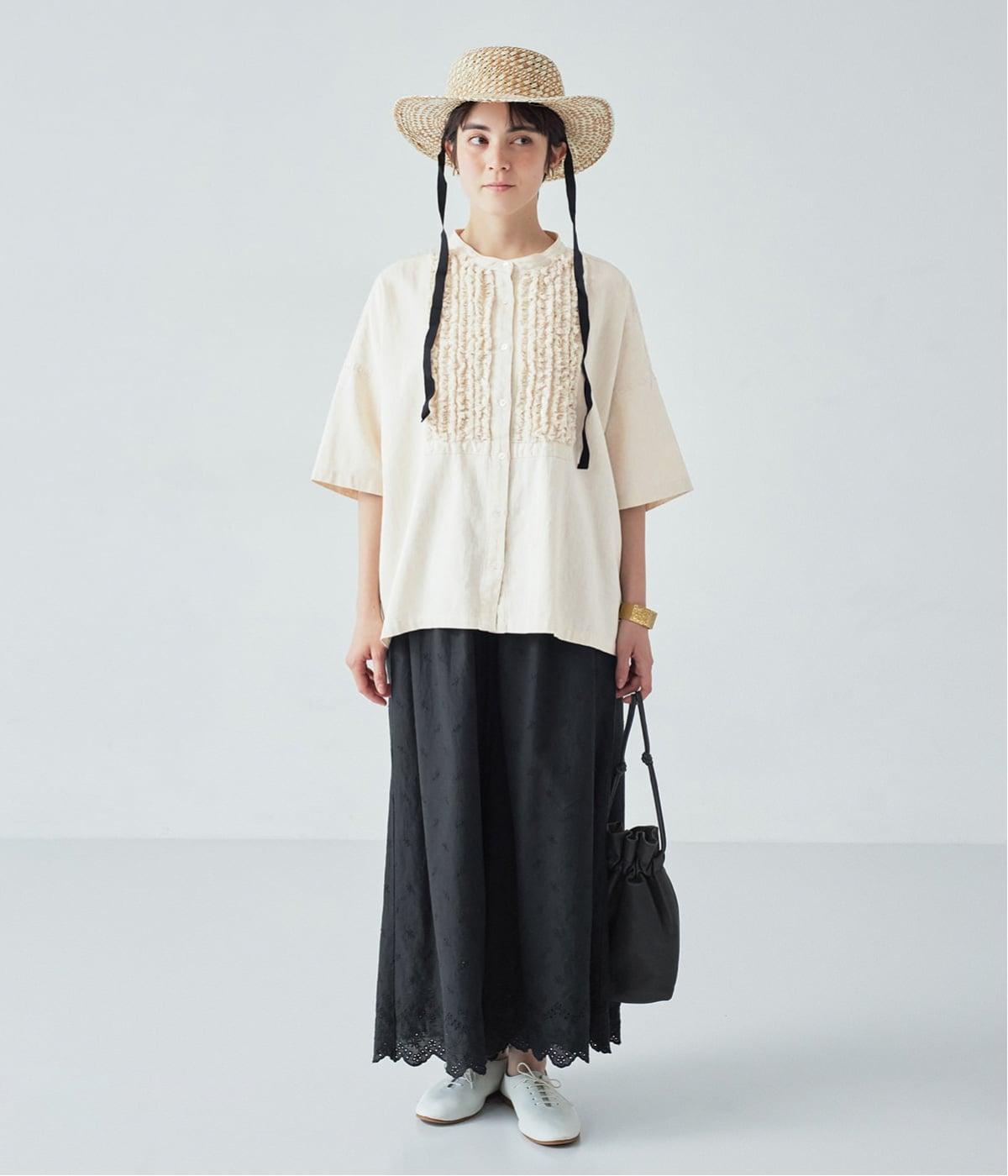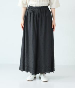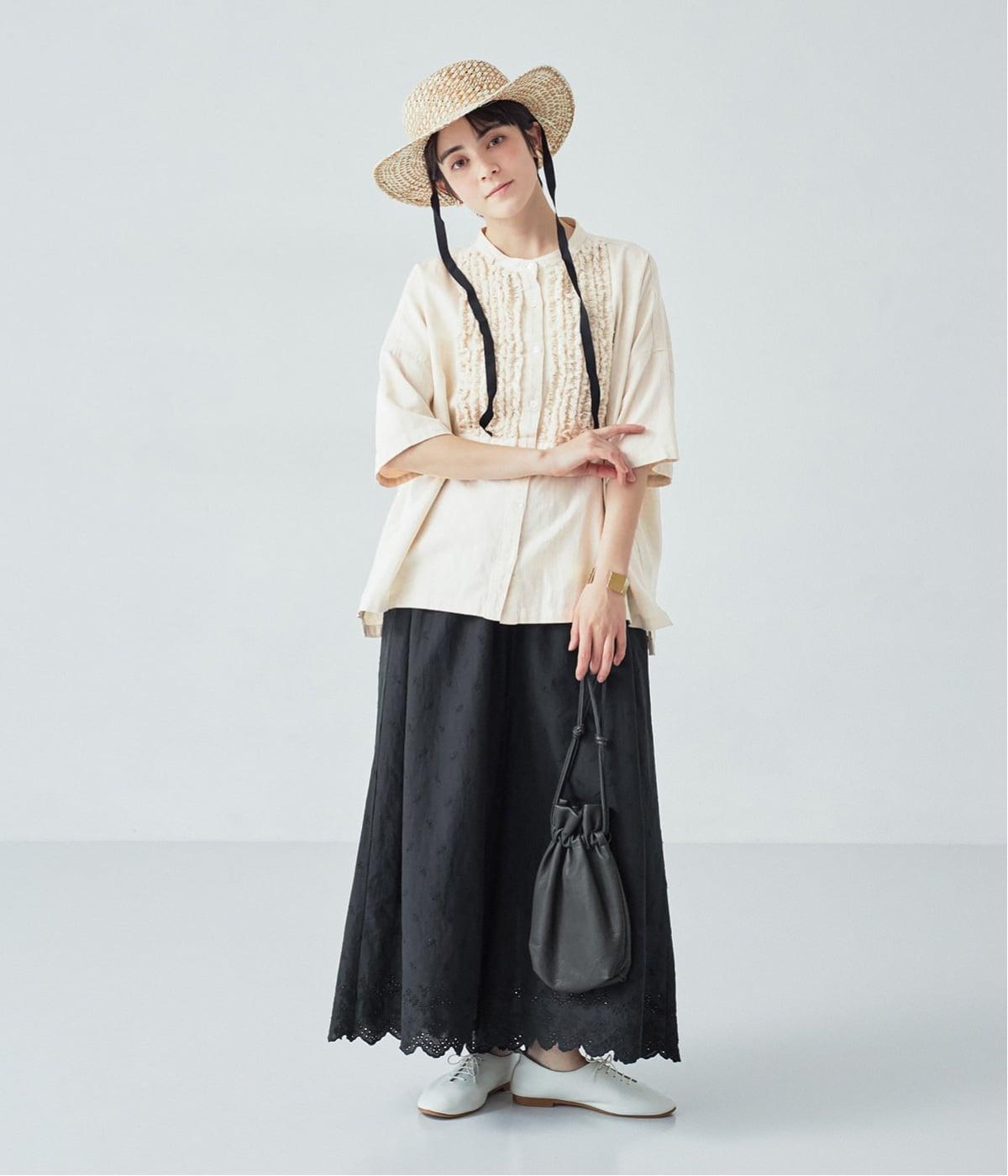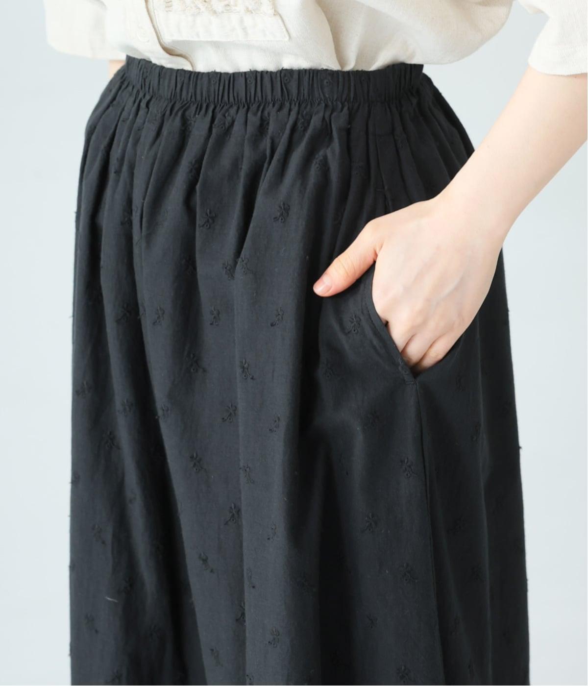 コットンリネンスカラップ刺繍9分丈ワイドパンツ