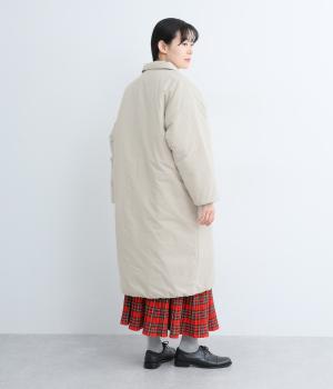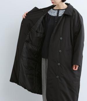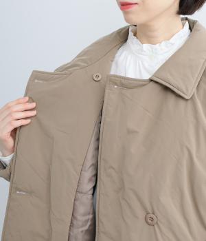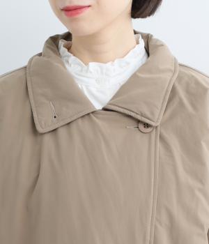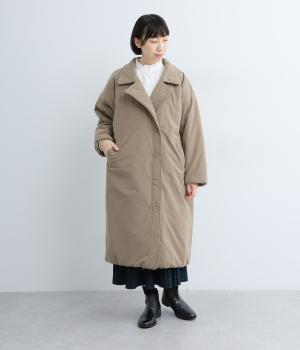 ふっくらとハリのあるピーチ起毛素材を使用。上品な光沢とあたたかさを備えた、季節感ある生地です。中綿入りでしっかりあたたかいのに軽い着心地なのもうれしい。