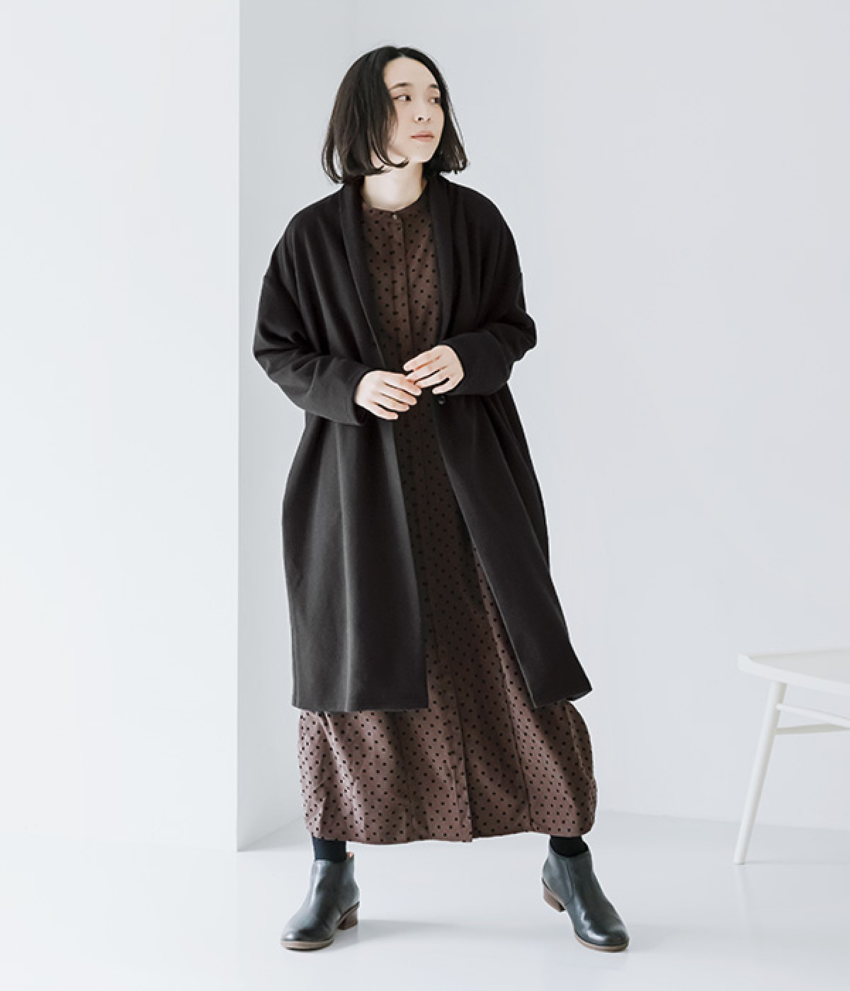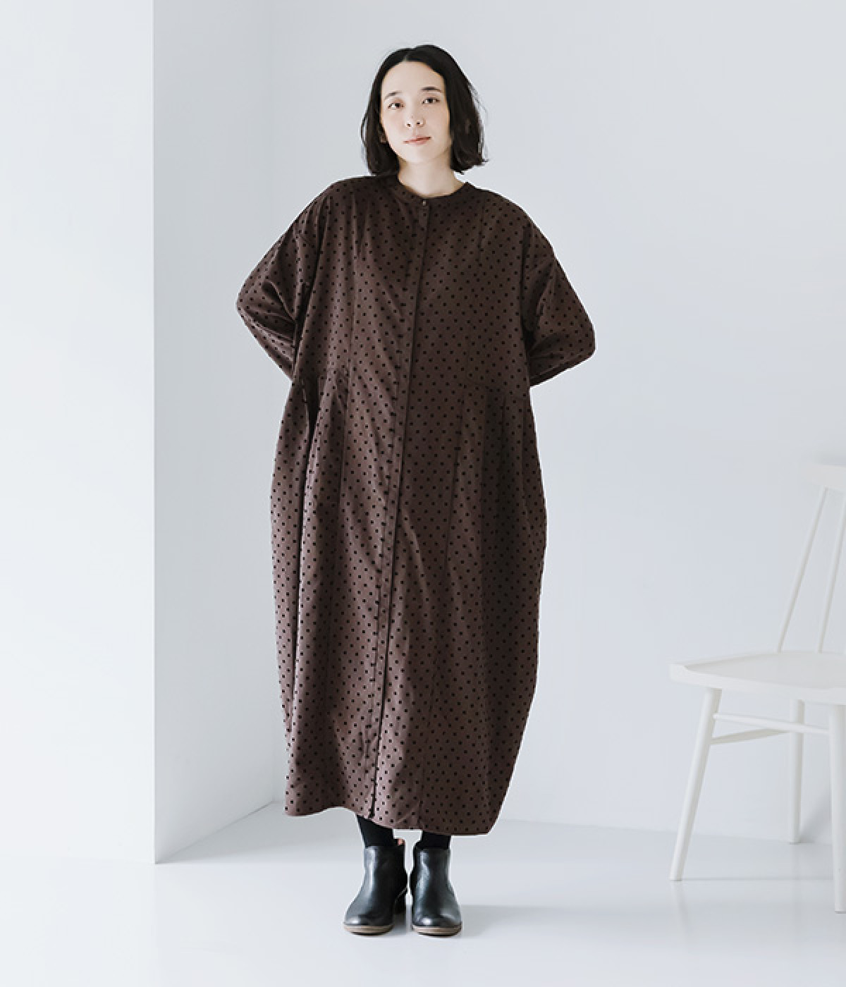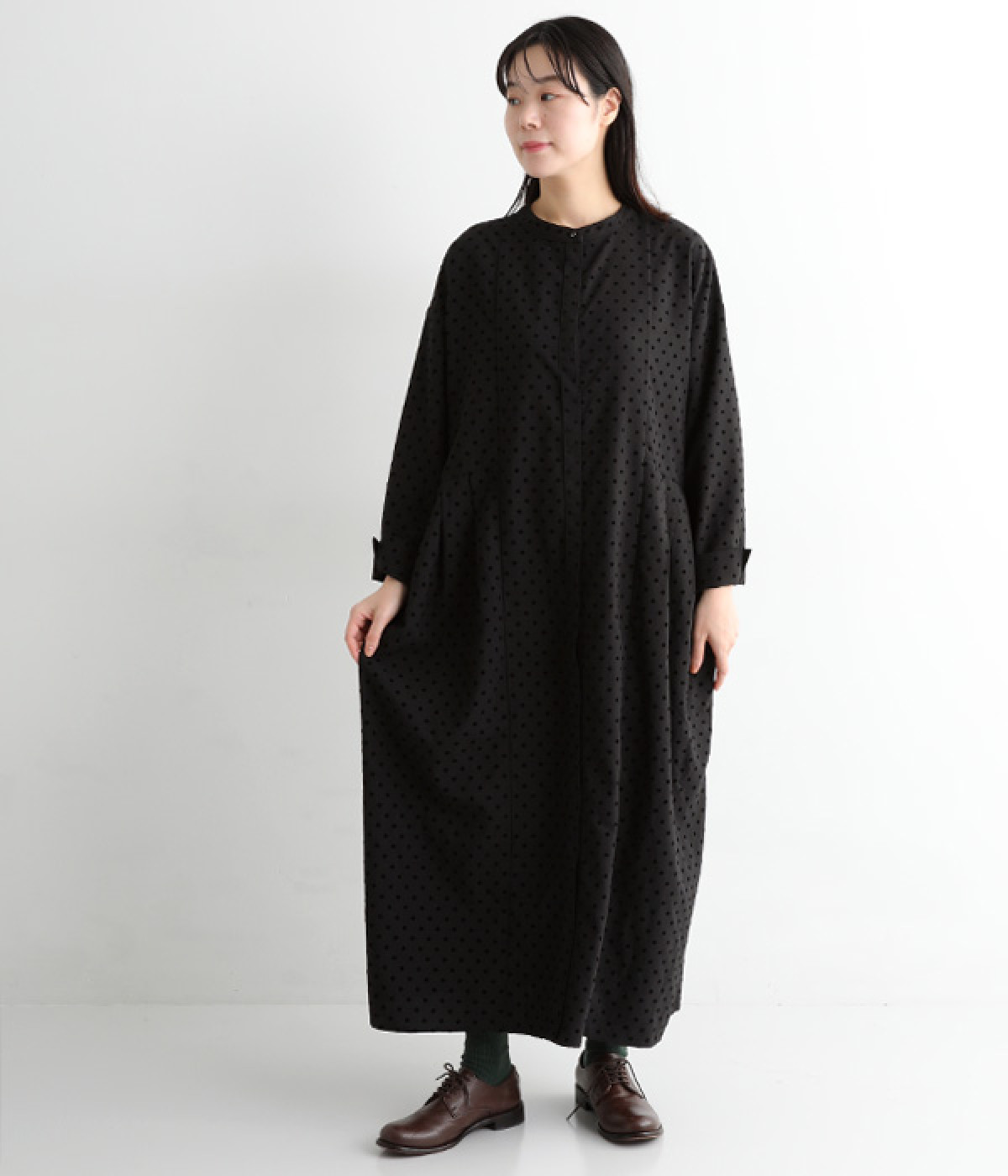 ドットのフロッキープリントはぽつぽつと小粒にして上品に