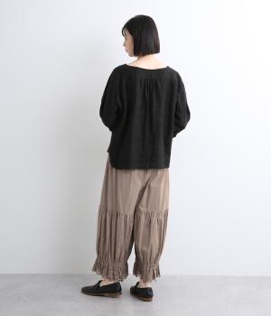 さらっとした軽やかな肌触りと通気性の良さが特徴的なコットンローンで仕立てました。ほどよくふくらみがあり、肌にもまとわりつきにくく快適なはき心地もグッド。薄手でインナー使いに最適な生地感です。