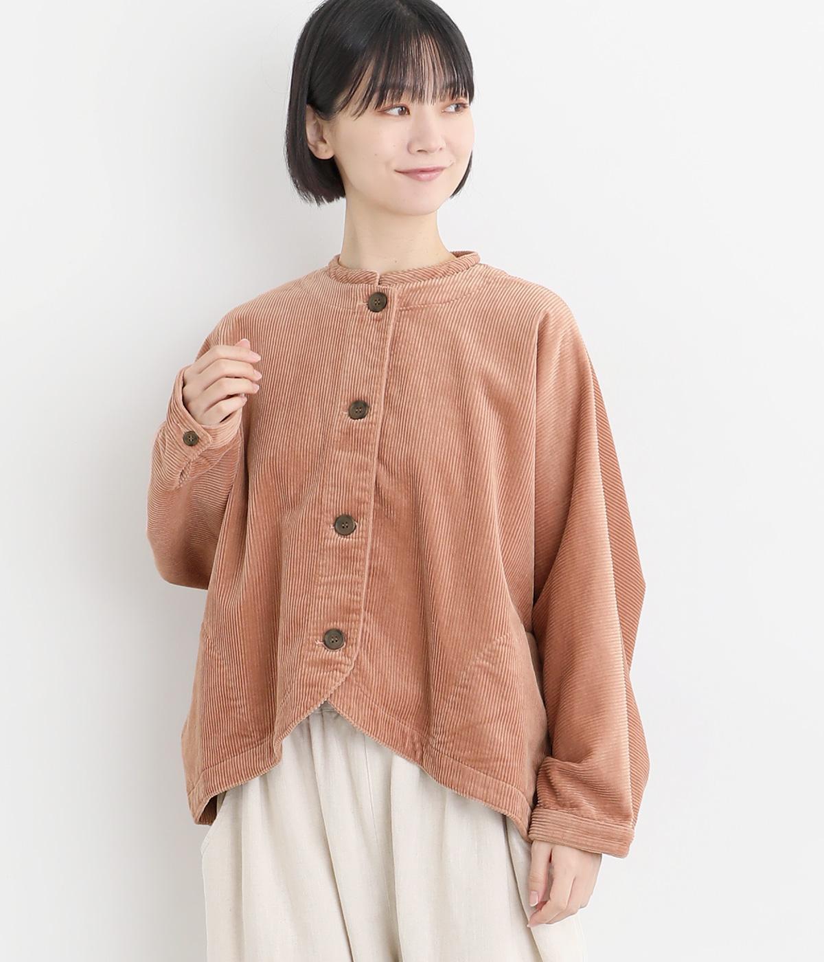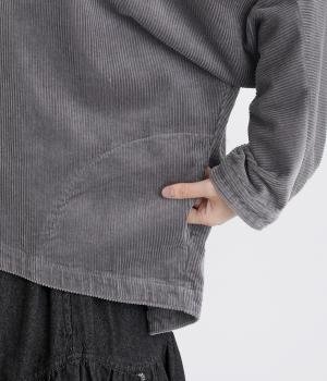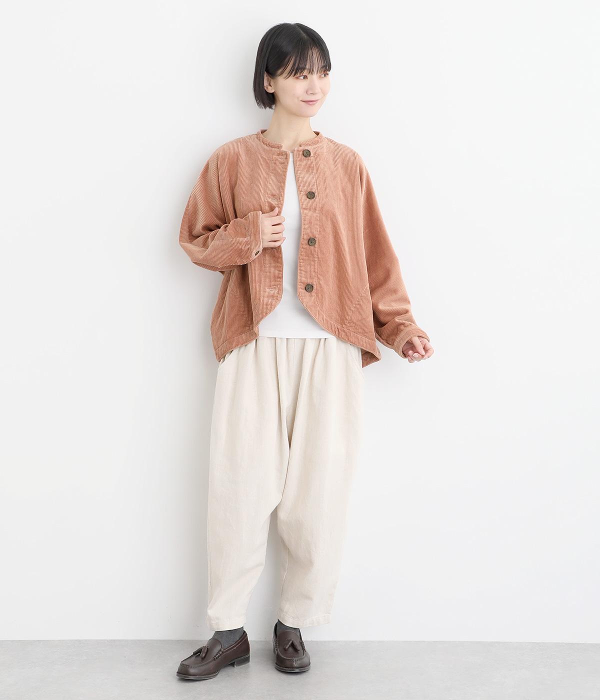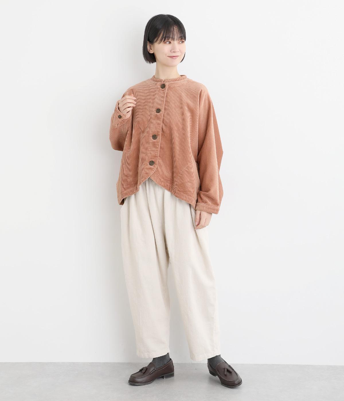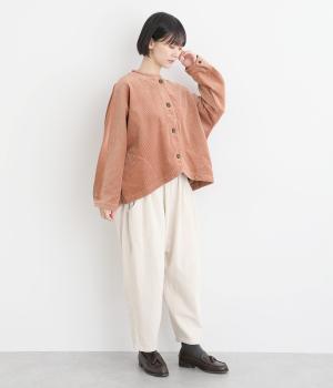 太畝が特徴的でカジュアルテイストなコットンのコーデュロイ生地をセレクトしました。しっかりとした中厚手生地でシルエットをきれいに描きます。ほのかな光沢とあたたかみのある表情で季節感のある素材です。