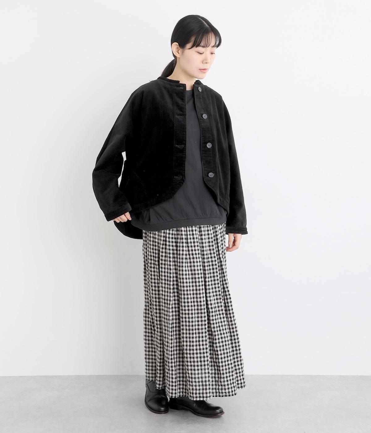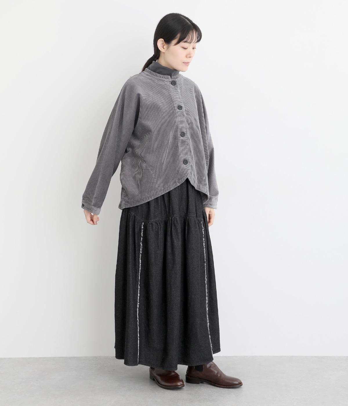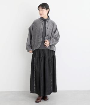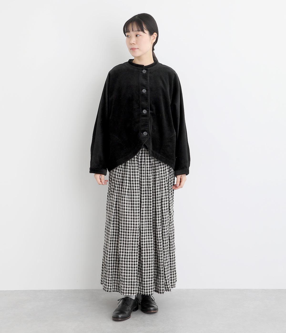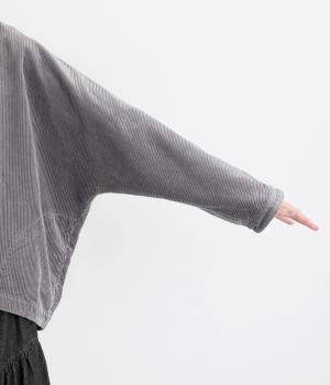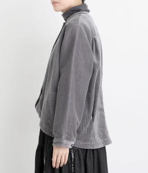 太畝が特徴的でカジュアルテイストなコットンのコーデュロイ生地をセレクトしました。しっかりとした中厚手生地でシルエットをきれいに描きます。ほのかな光沢とあたたかみのある表情で季節感のある素材です。