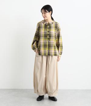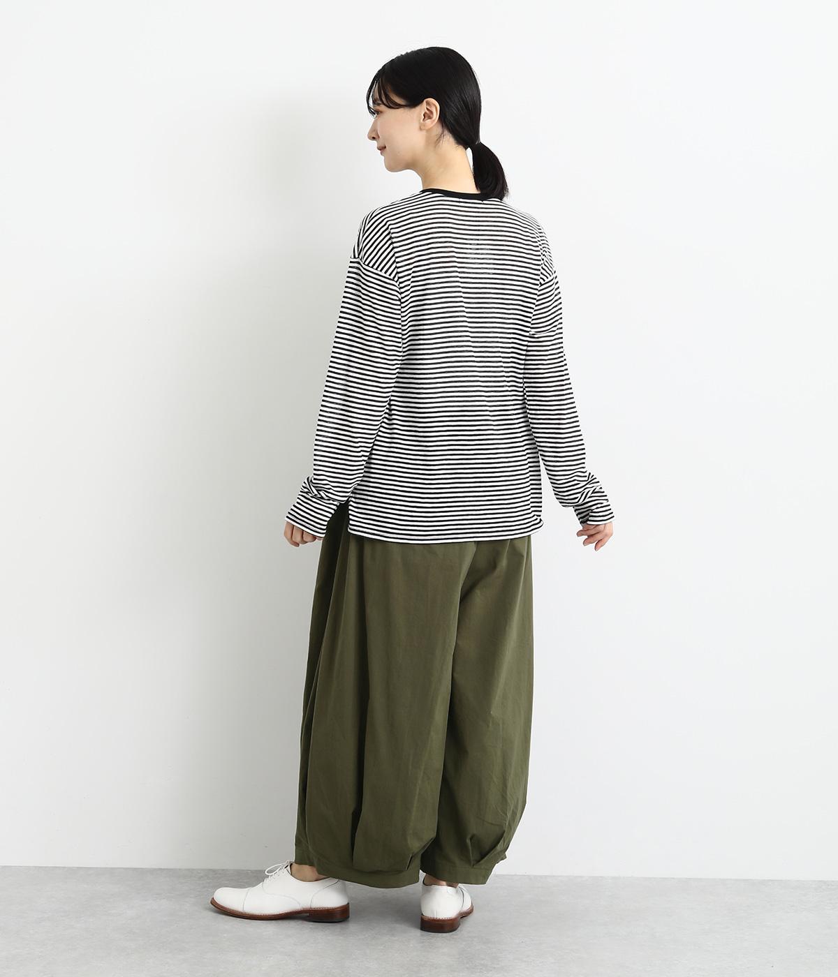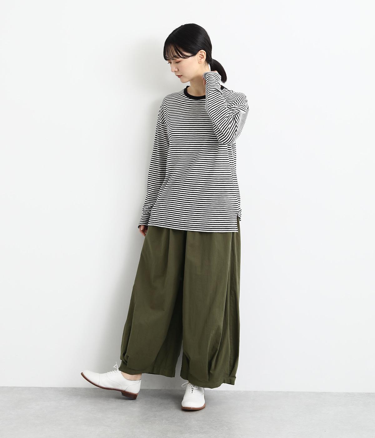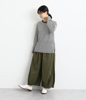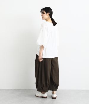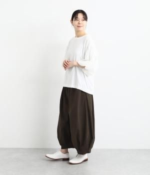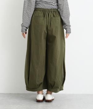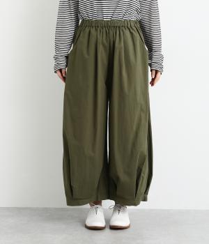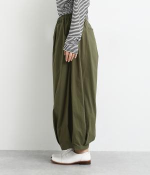 裾にタックを施した、ボリュームのあるバルーンシルエットのパンツです。生地をたっぷりと使い、リラックスしたはき心地に仕上げています。シンプルなトップスに合わせるだけで、動きのある大人のカジュアルスタイルが完成。