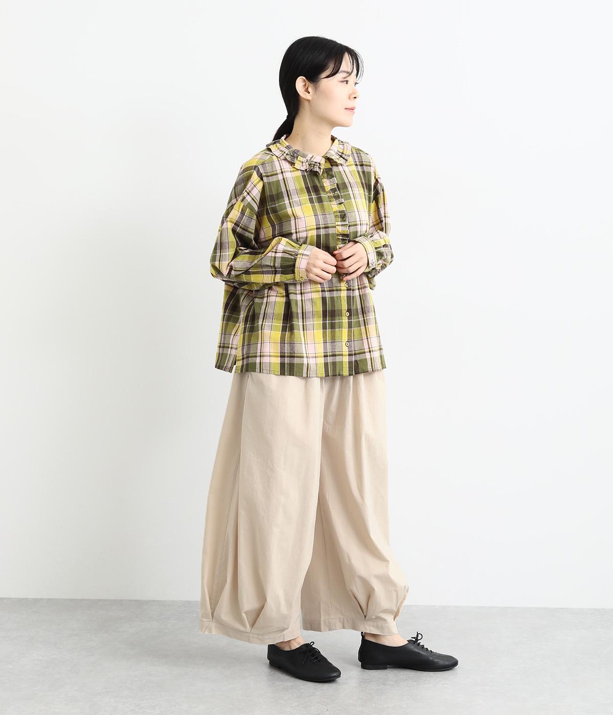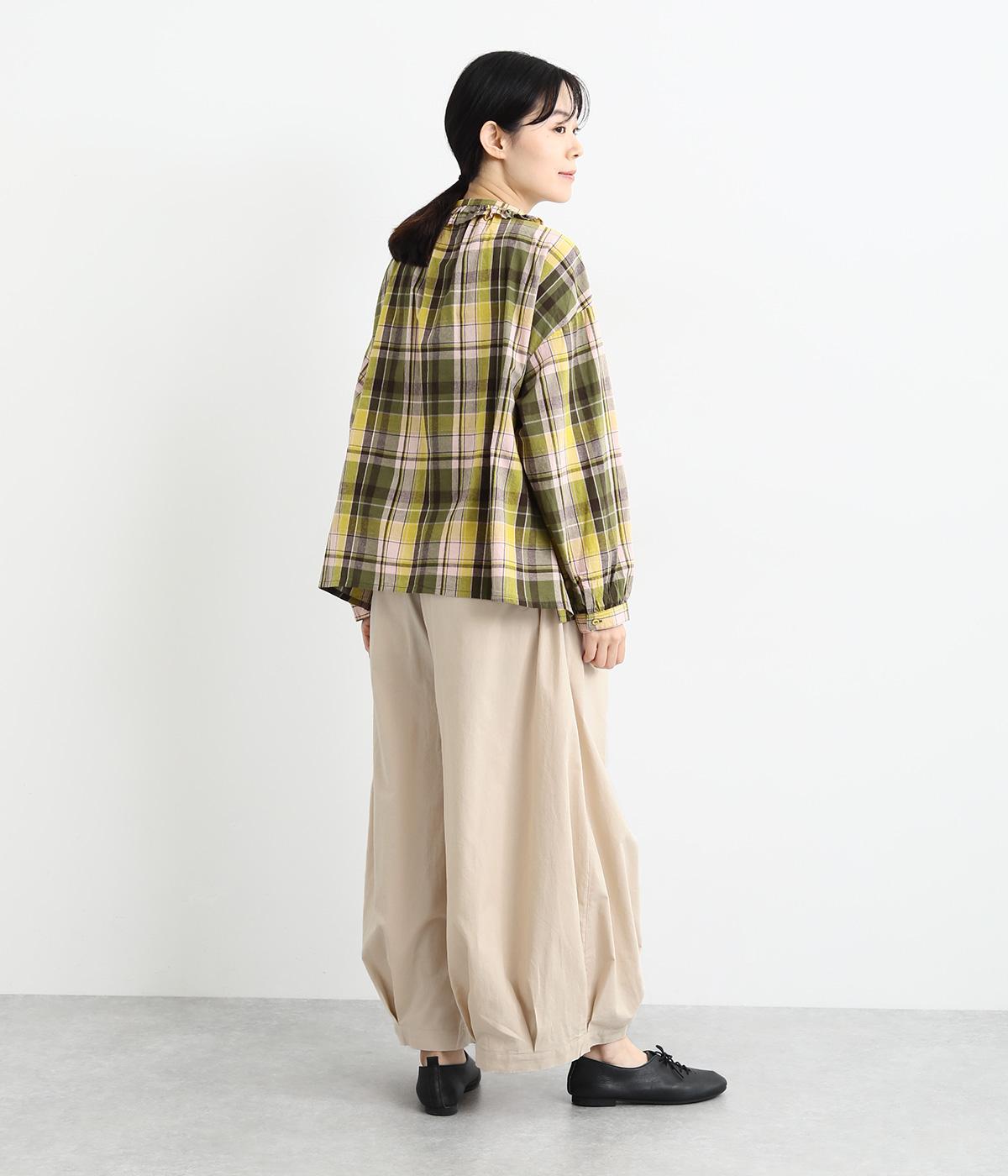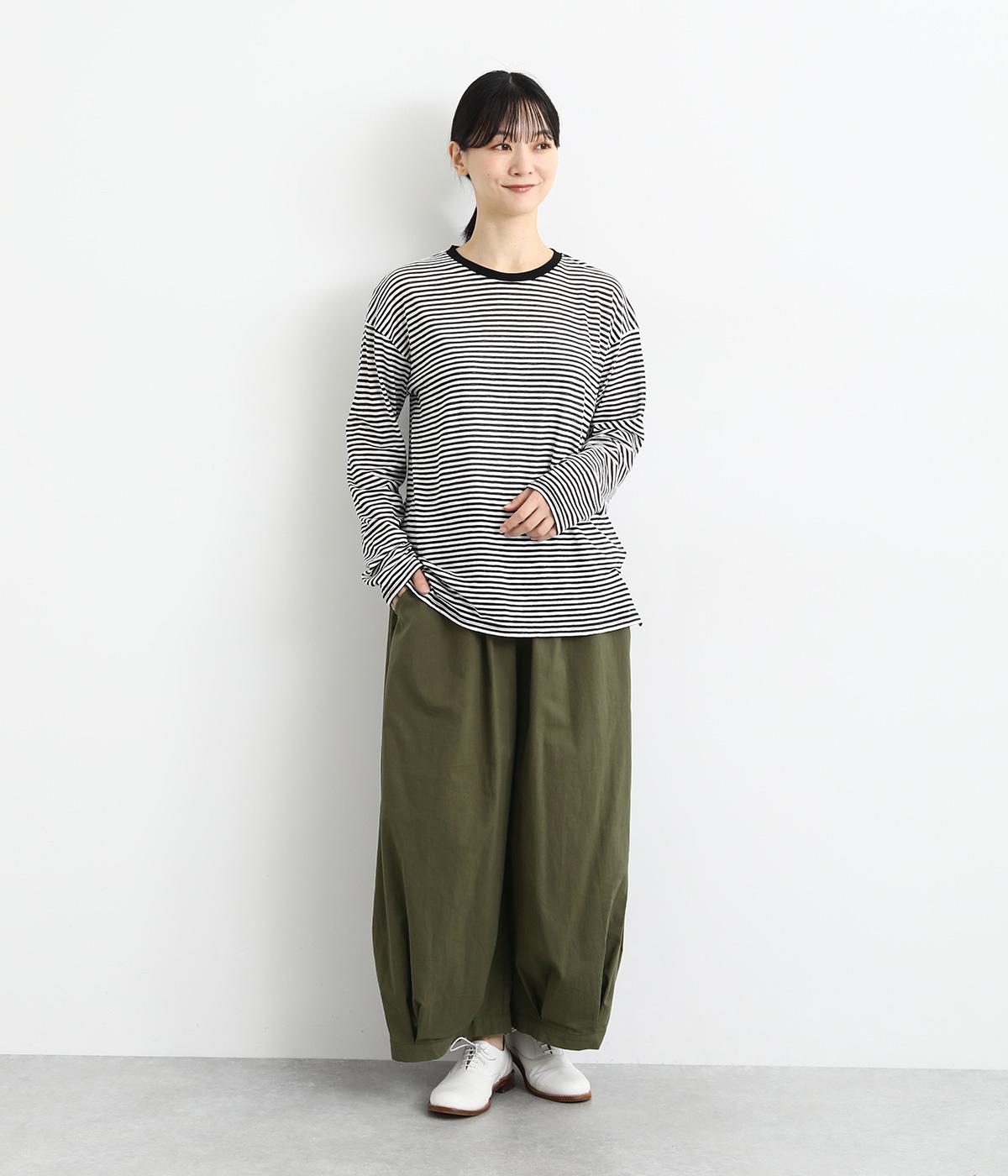 裾にタックを施した、ボリュームのあるバルーンシルエットのパンツです。生地をたっぷりと使い、リラックスしたはき心地に仕上げています。シンプルなトップスに合わせるだけで、動きのある大人のカジュアルスタイルが完成。