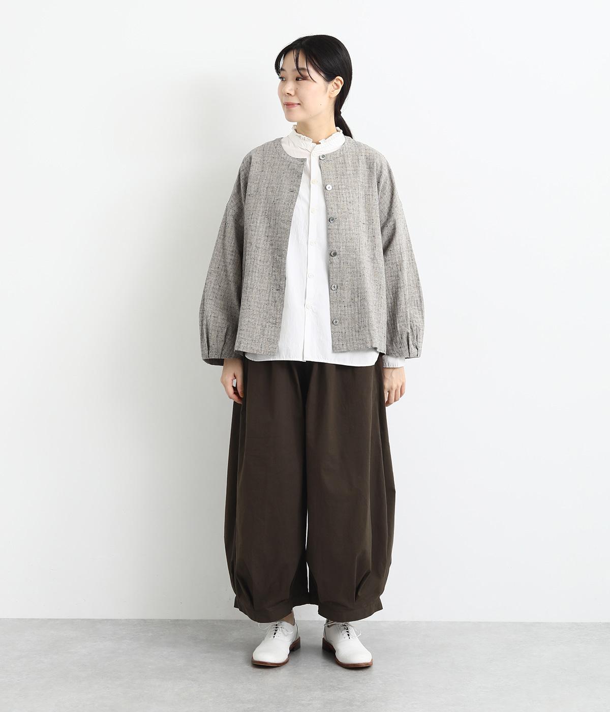 麻のような風合いに織り上げたコットン素材。ところどころに現れるネップ感と、ほどよいハリのある表情が魅力です。さらりとした心地いい肌触りもうれしいポイント。