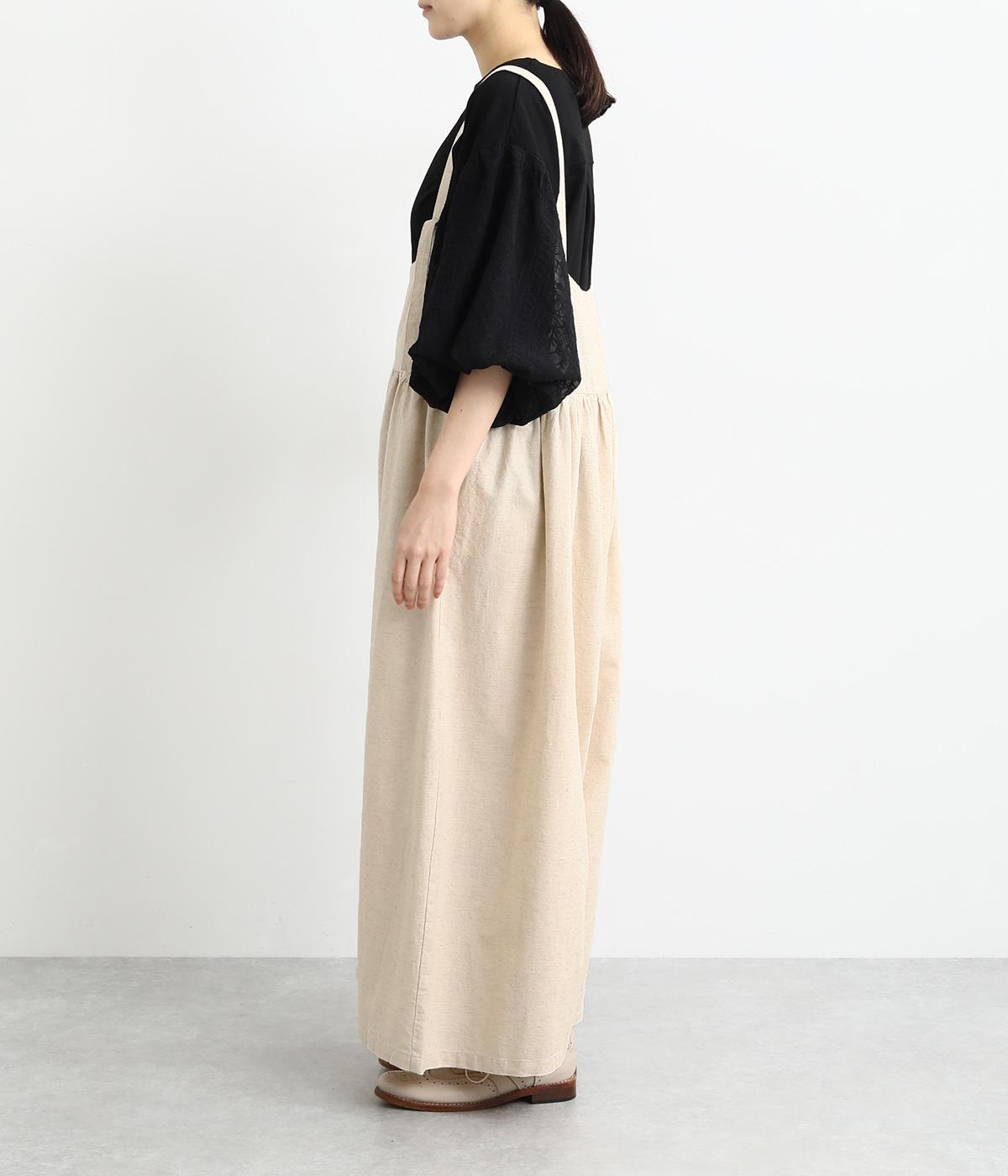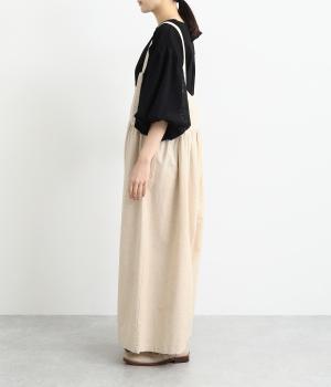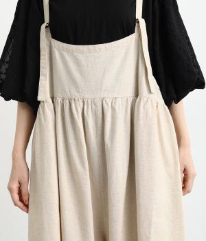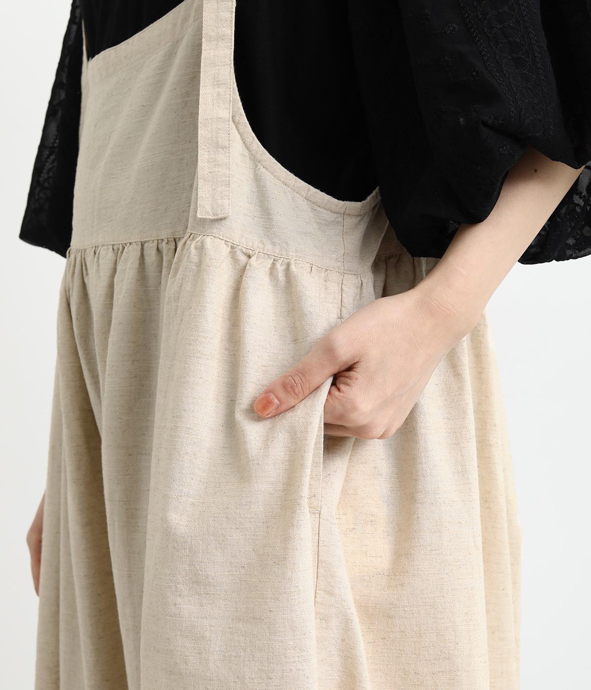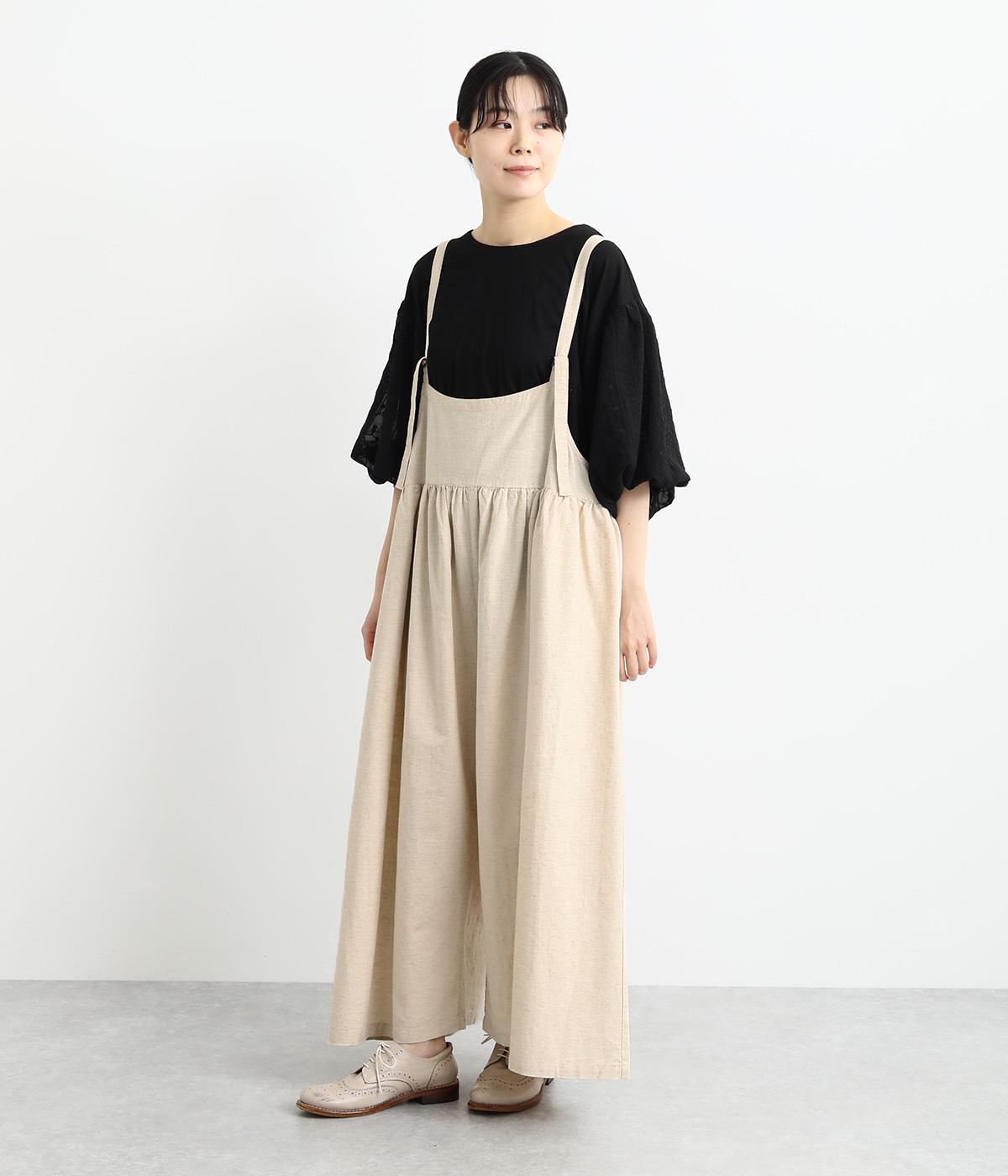 ウエスト切り替えにたっぷりとギャザーを施した、落ち感のあるシルエットのサロペットパンツ。肩部分はアジャスター付きで、身長に合わせて長さの調整が可能です。柄トップスとのコーディネートもおすすめ。